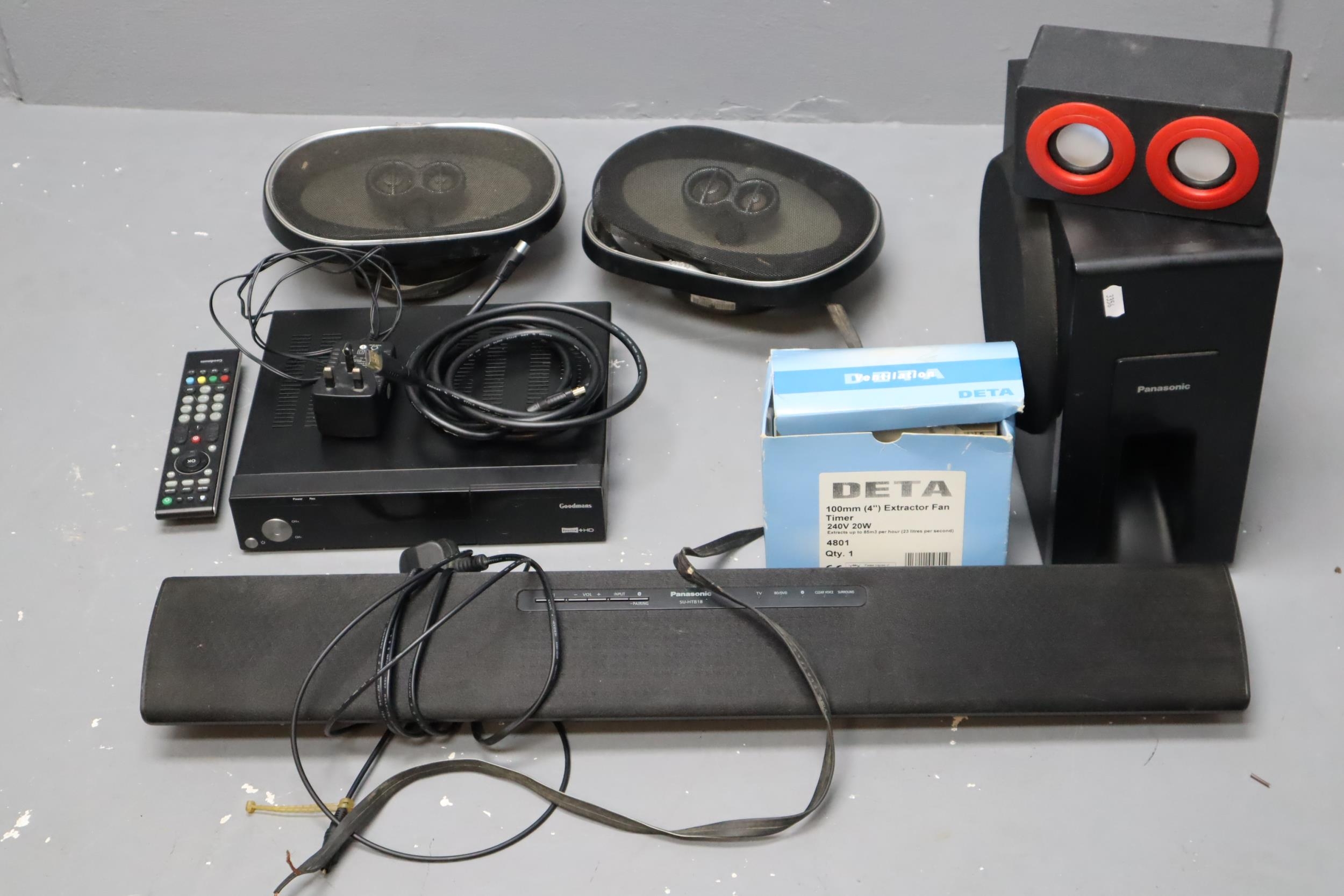 Large Selection of Electricals to include Panasonic Soundbar and Woofer, Infinity Car Speakers, Goodmans Freeview Player and more (untested)