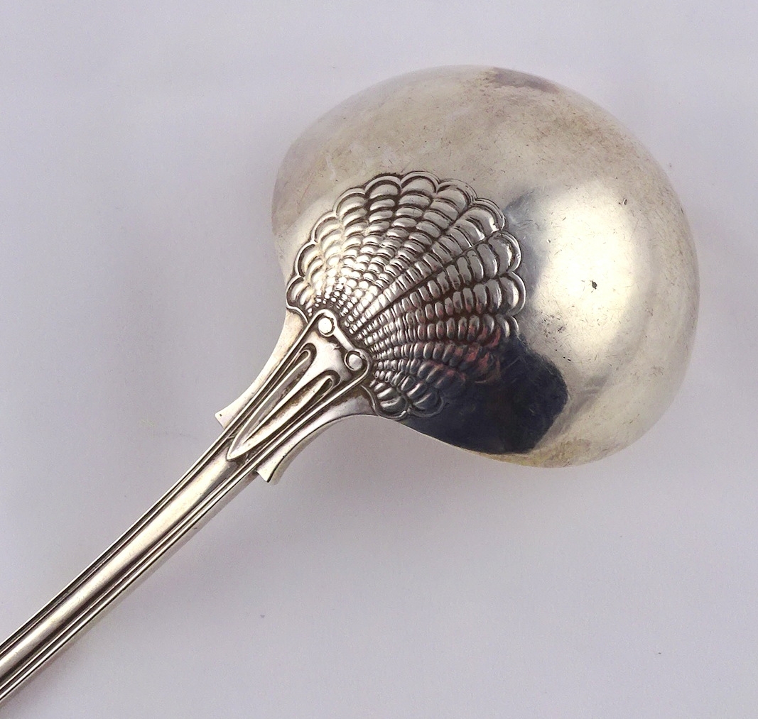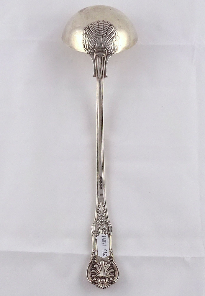 A Victorian silver kings pattern shell back punch ladle, London 1840. 320gr / 345mm long (by instruction of the family of Dame Fanny Waterman)