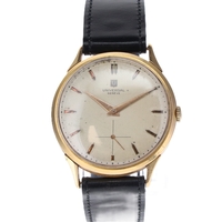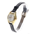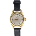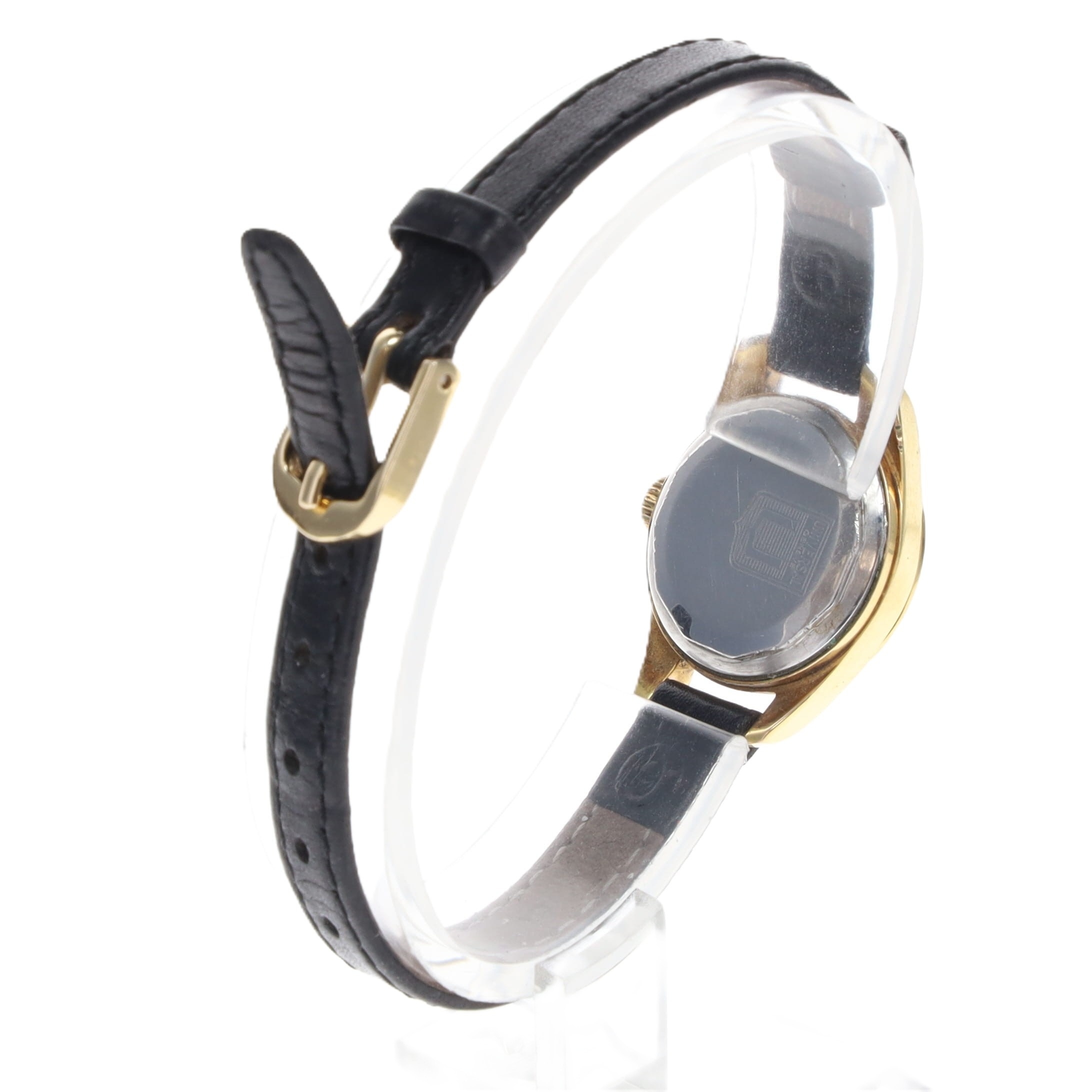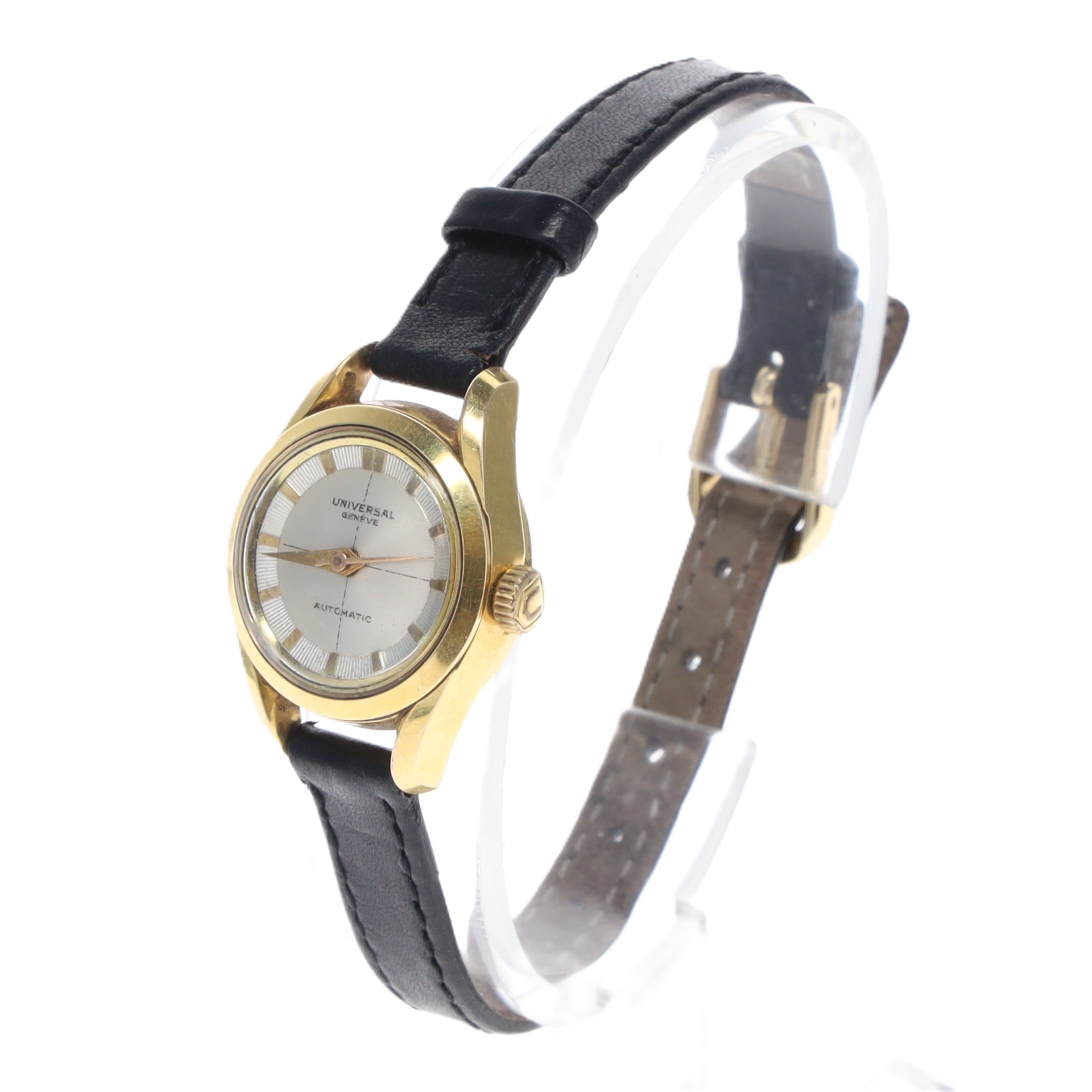 Universal Geneve - Gold Tone Ladies Watch. Universal Geneve Cal. 76 25 Jewels Automatic movement. Gold tone metal case and aftermarket leather strap. Acrylic crystal has some scratches present. Intended for spares, repairs and restoration, seconds hand running, minutes and hours not working. Offered without original box or papers.