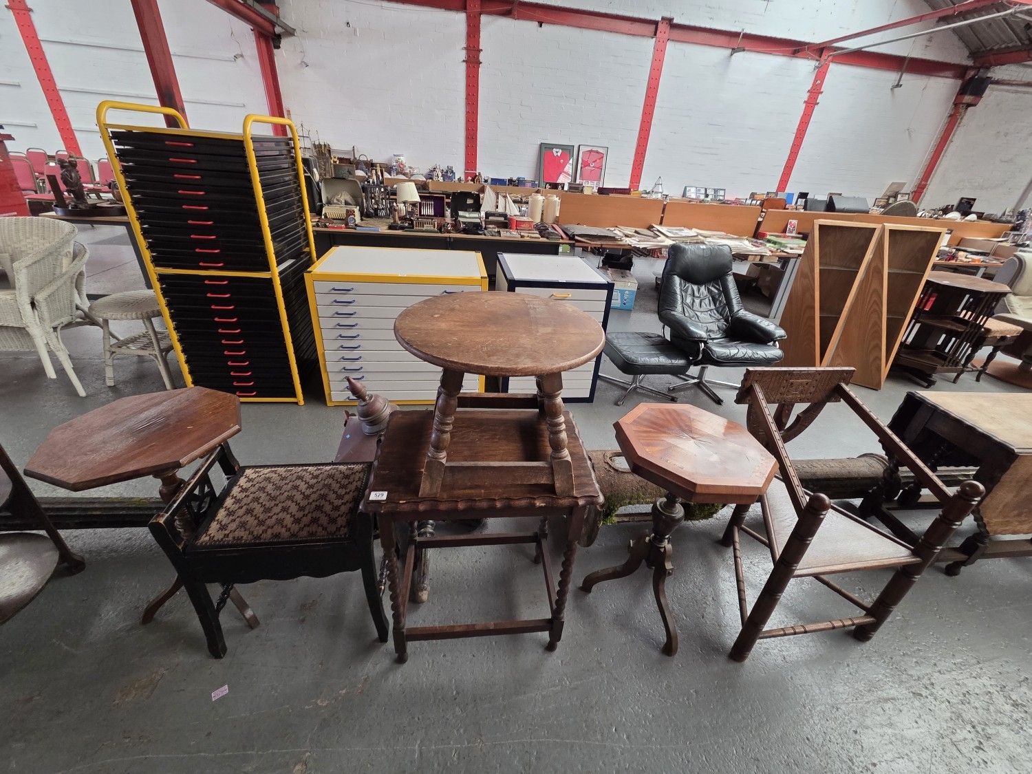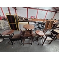 Two wine tables, occasional table, coffee table and a monk's chair