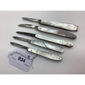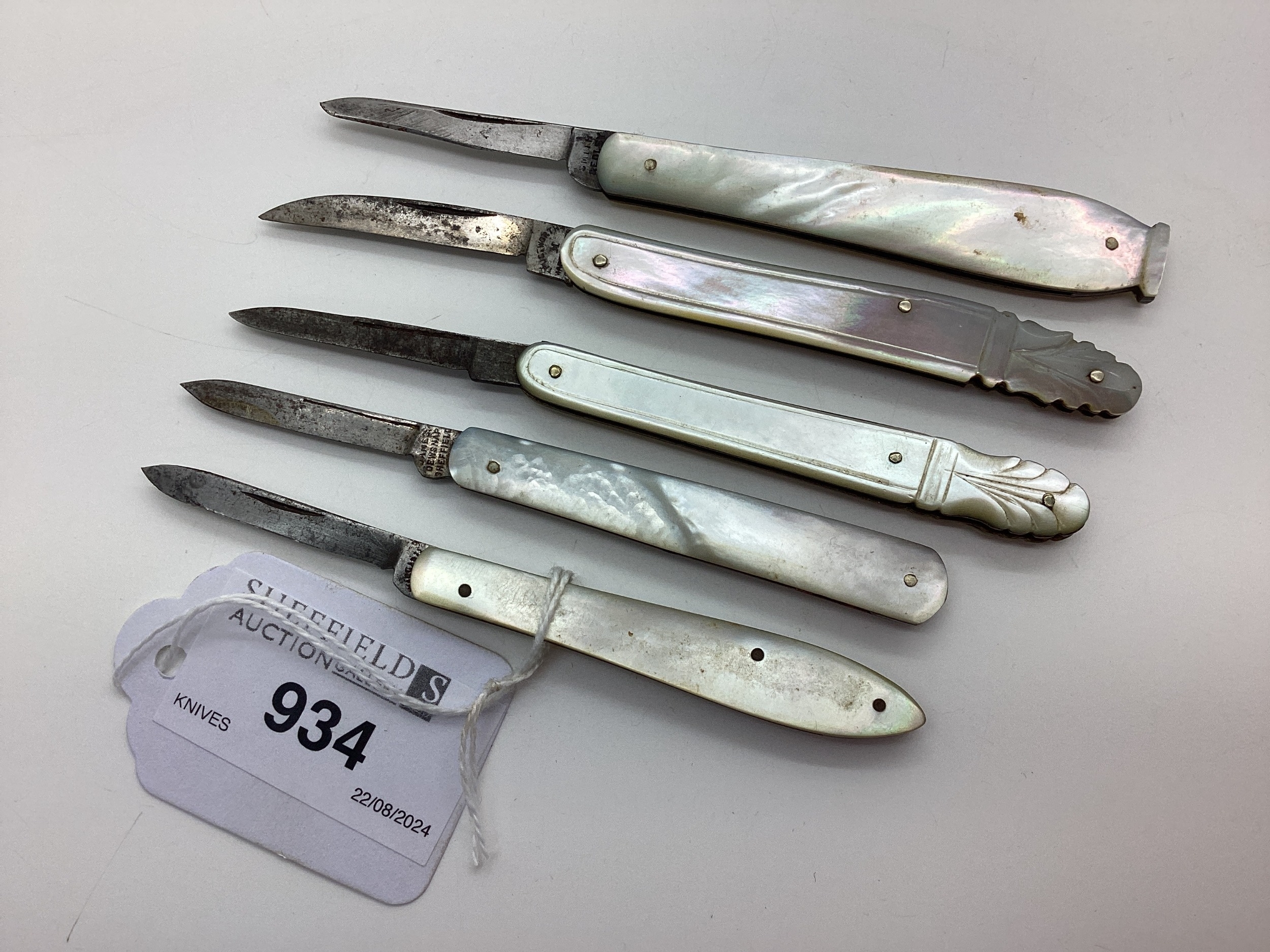 Folding Pocket Quill Knives, mother of pearl scales, including James Dewsnap Sheffield, Smith & Edley etc. (5)