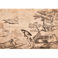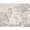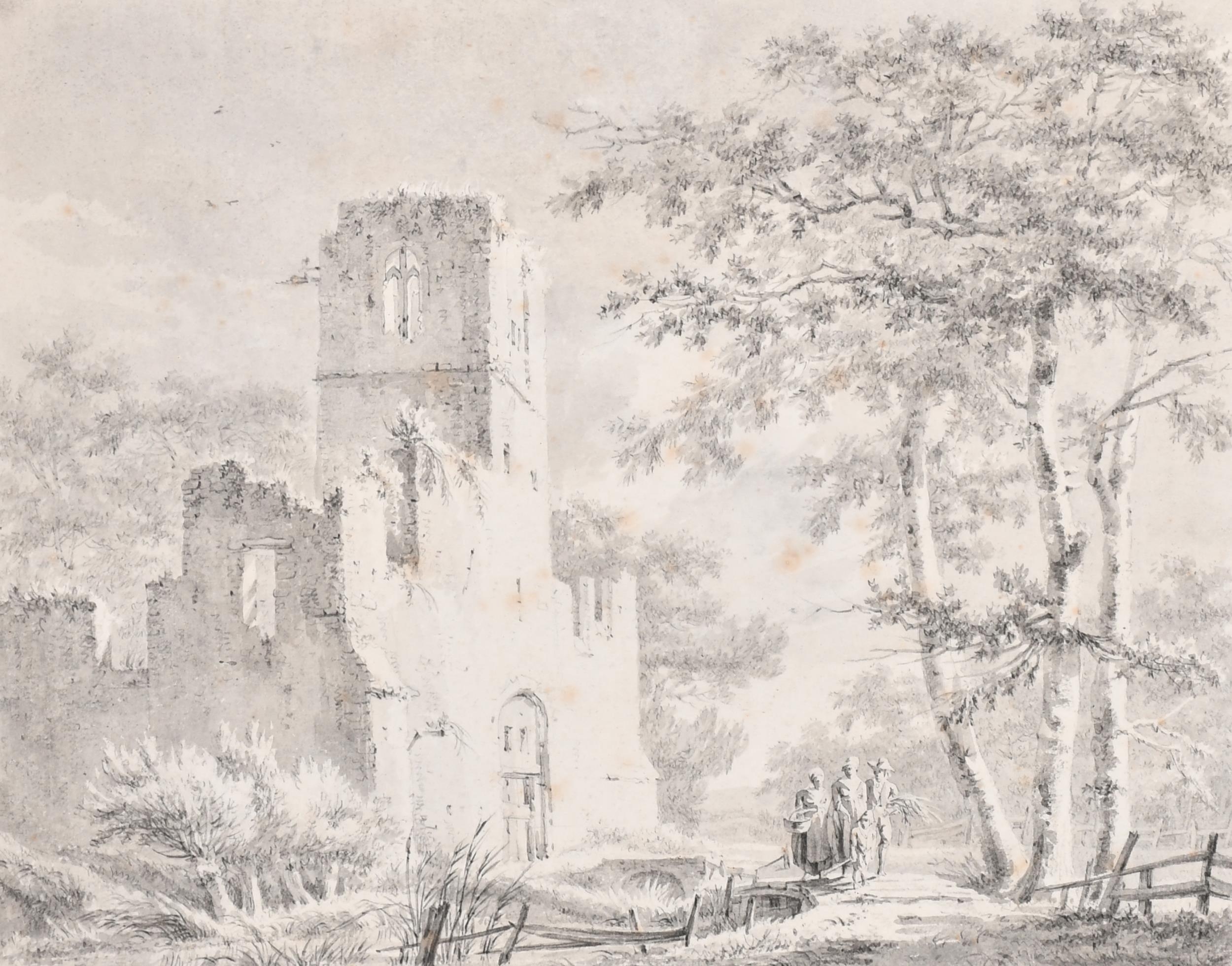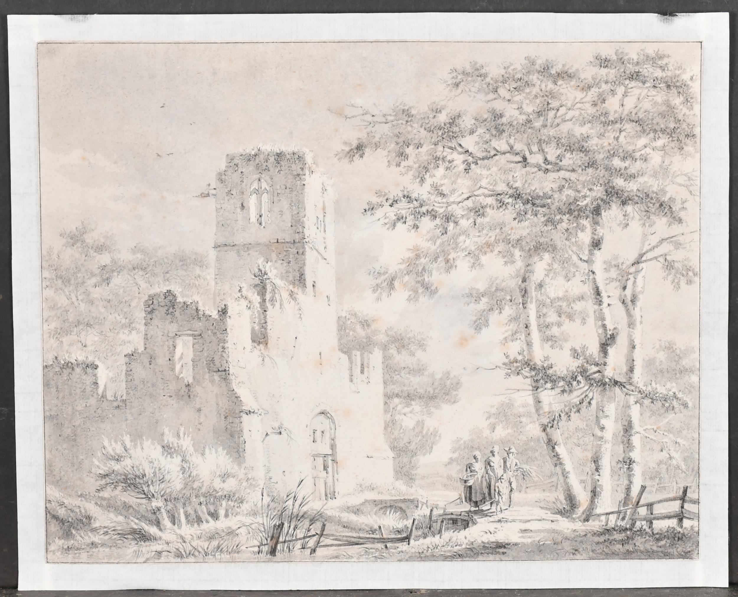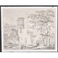 Paulus van Liender (1731-1797) Dutch. Church Ruins, Pencil and wash, unframed 10.25" x 12.75" (31.1 x 33.4cm)