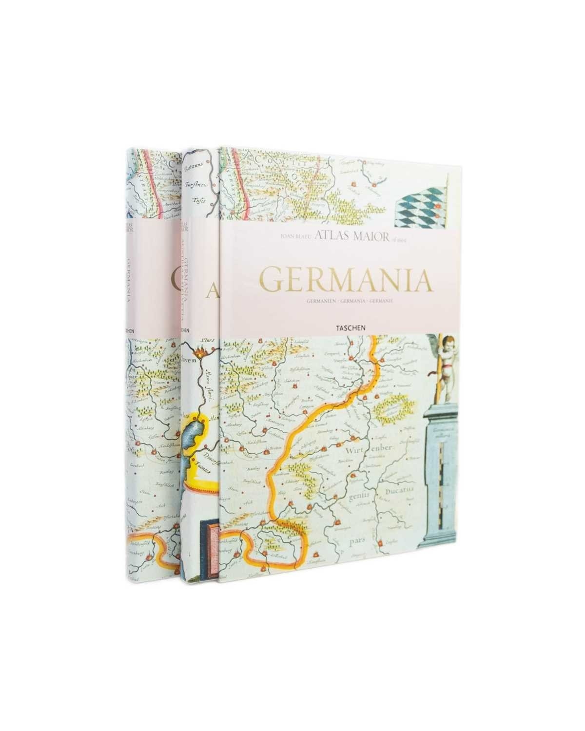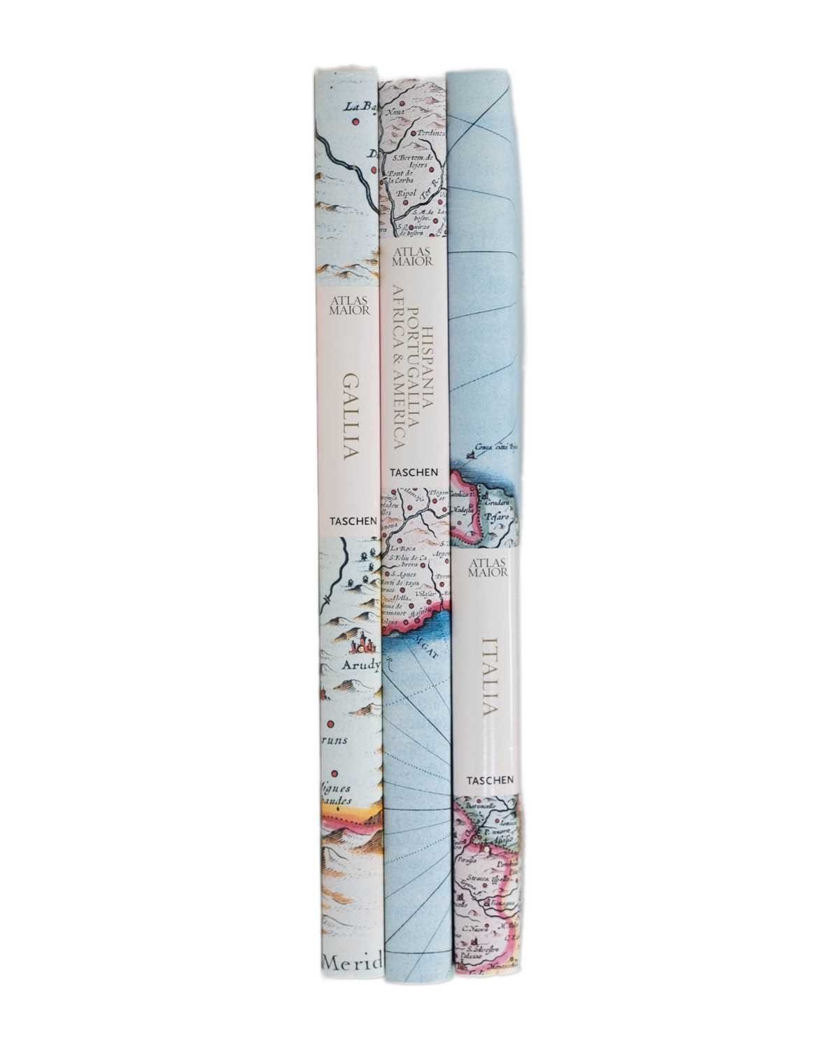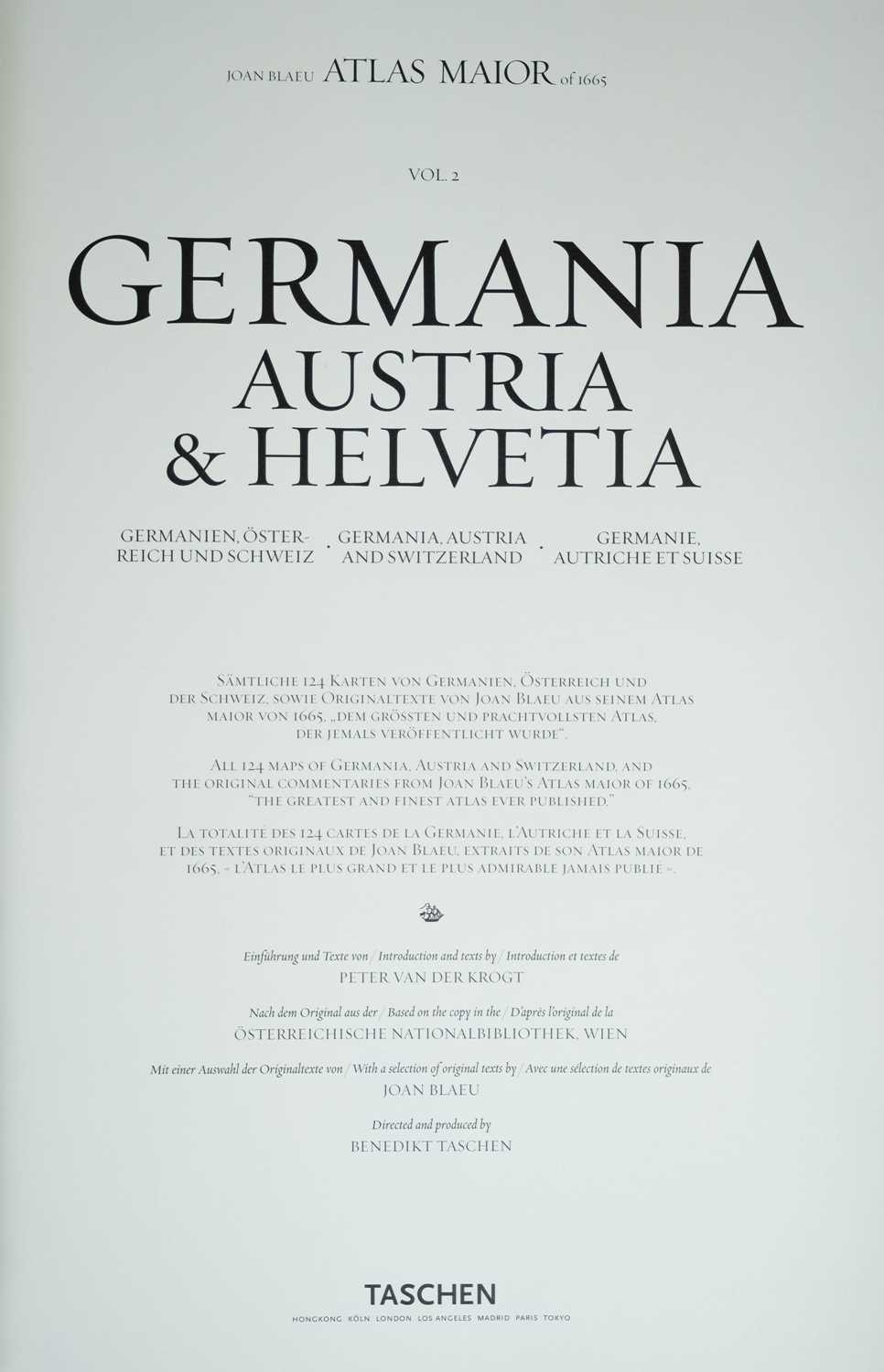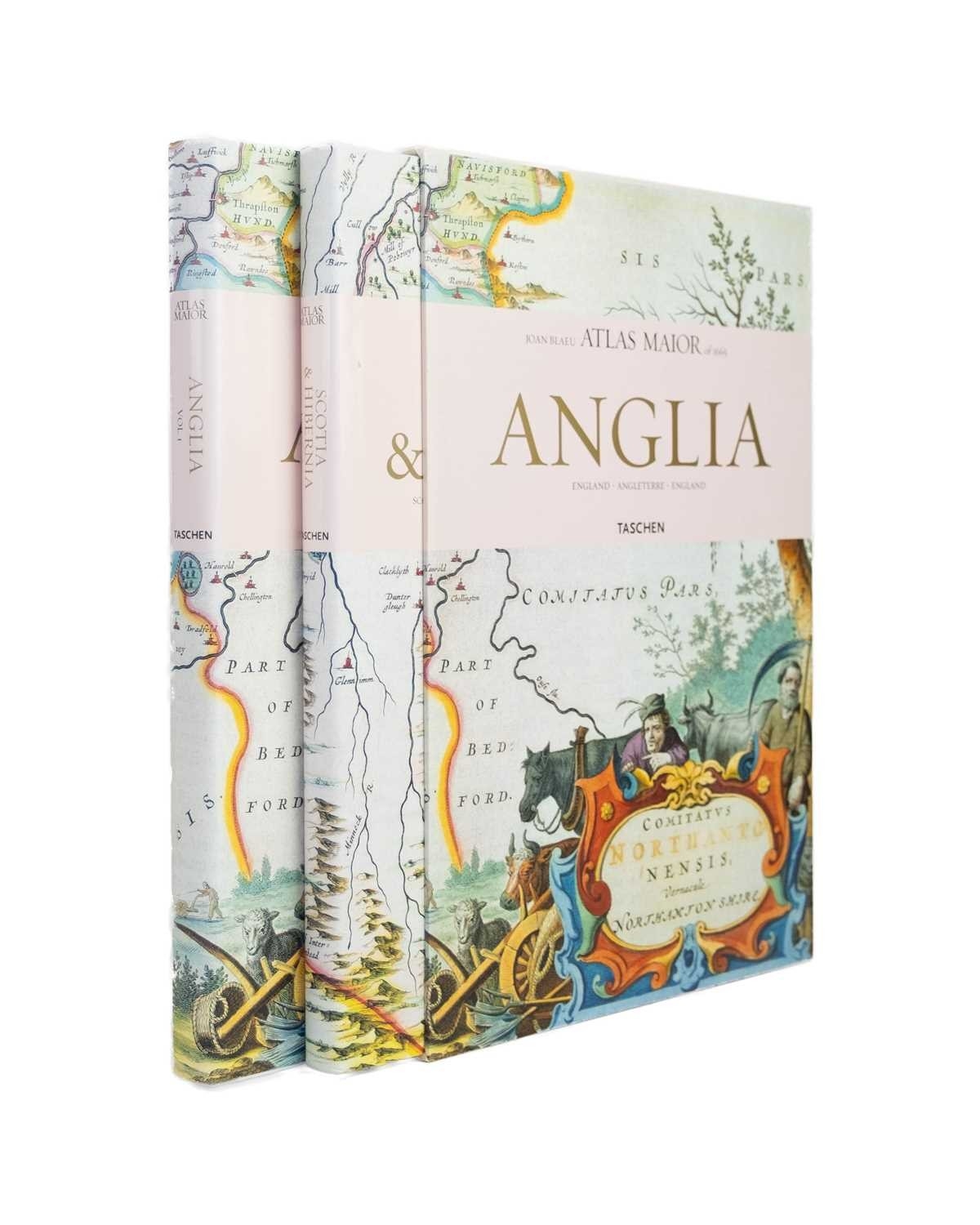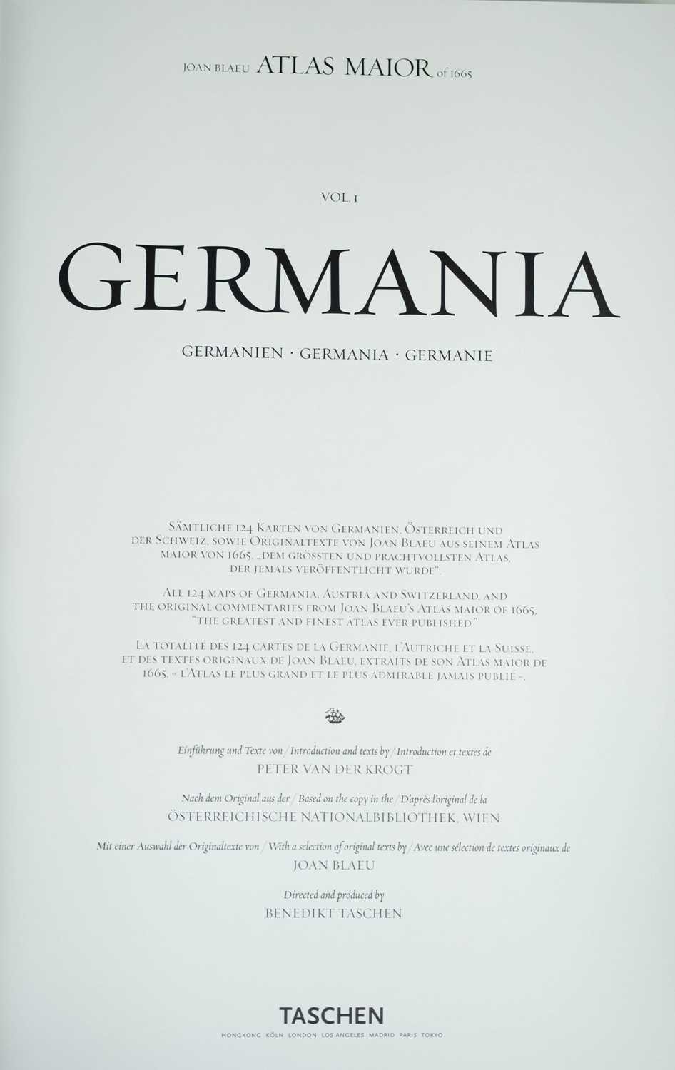 (Atlas) Joan Blaeu Atlas Maior of 1665 Seven volumes comprising 'Italia', 'Hispania Portugallia, Africa & America', 'Gallia', 'Scotia & Hibernia', ' Anglia', 'Germania, Austria & Helvetia' and 'Germania', with unclipped djs, original boards and thoroughly illustrated, Taschen, Germany 2006, with French, English and German translations, all vg. (7)