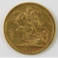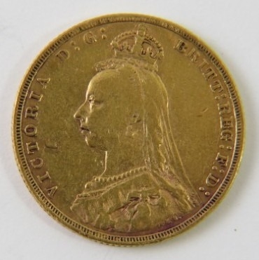 An1889 Queen Victoria gold sovereign coin, jubilee head, approx 8.0 grams.