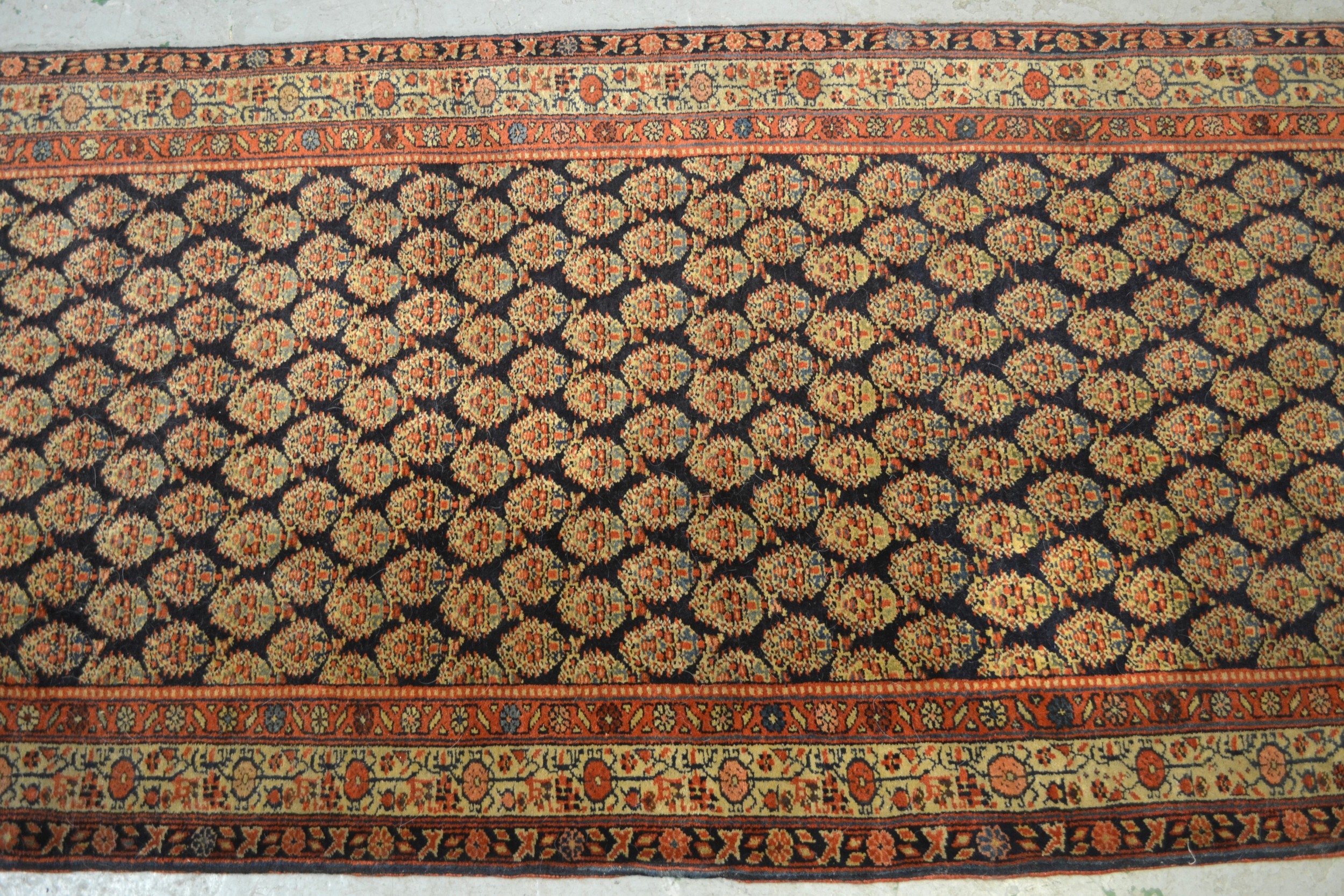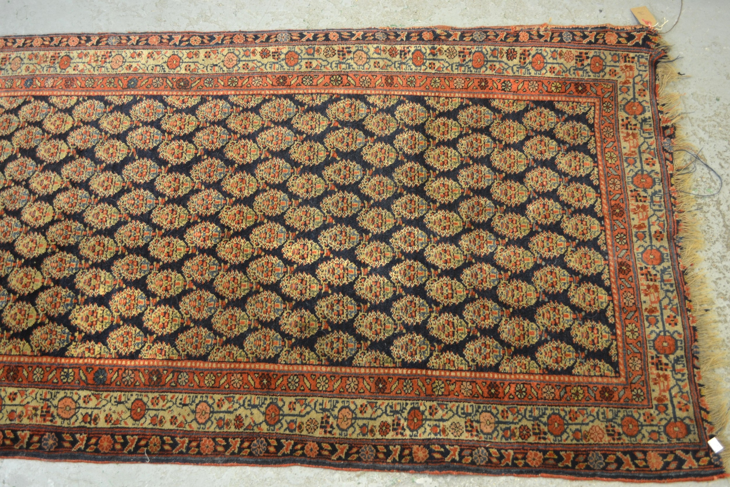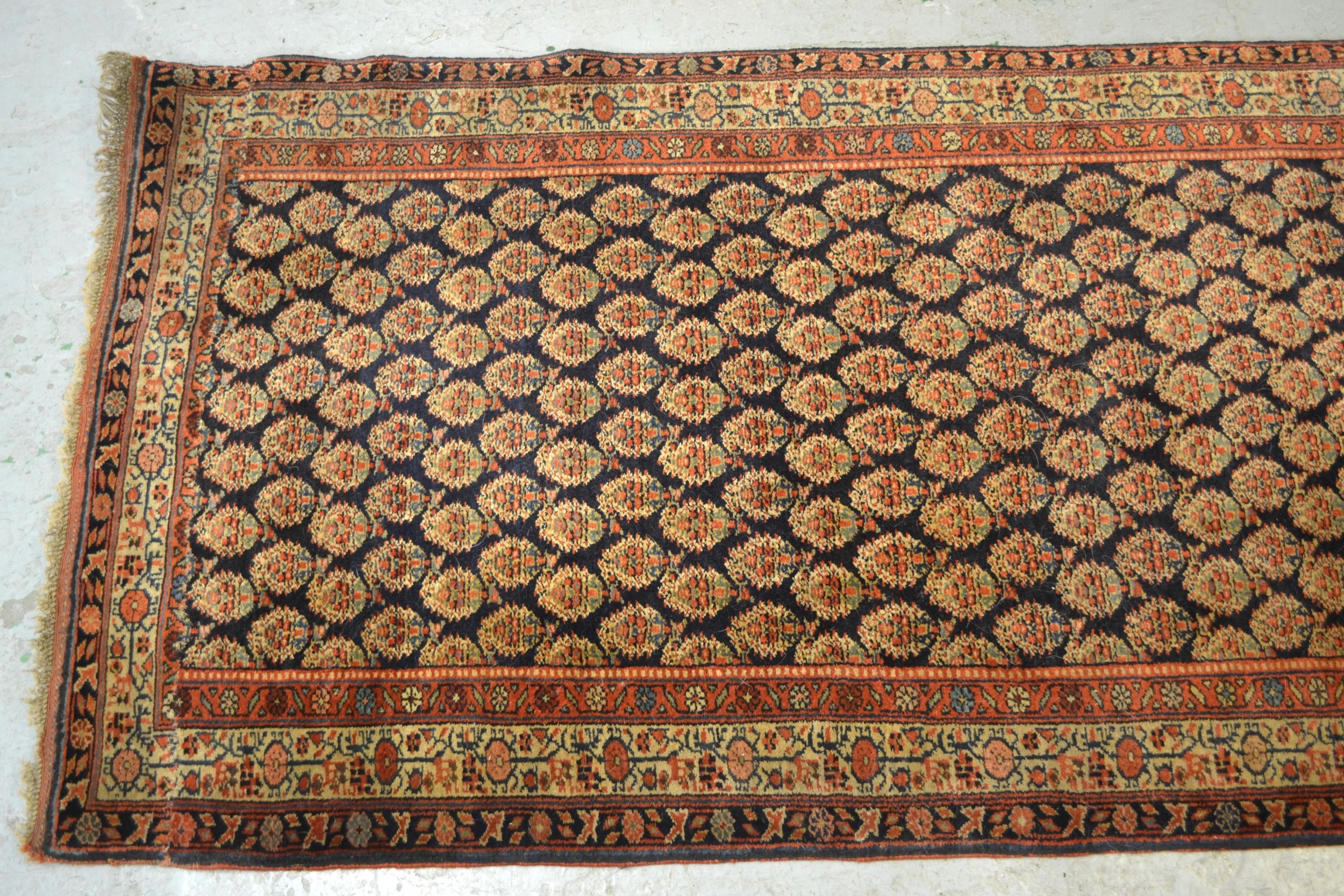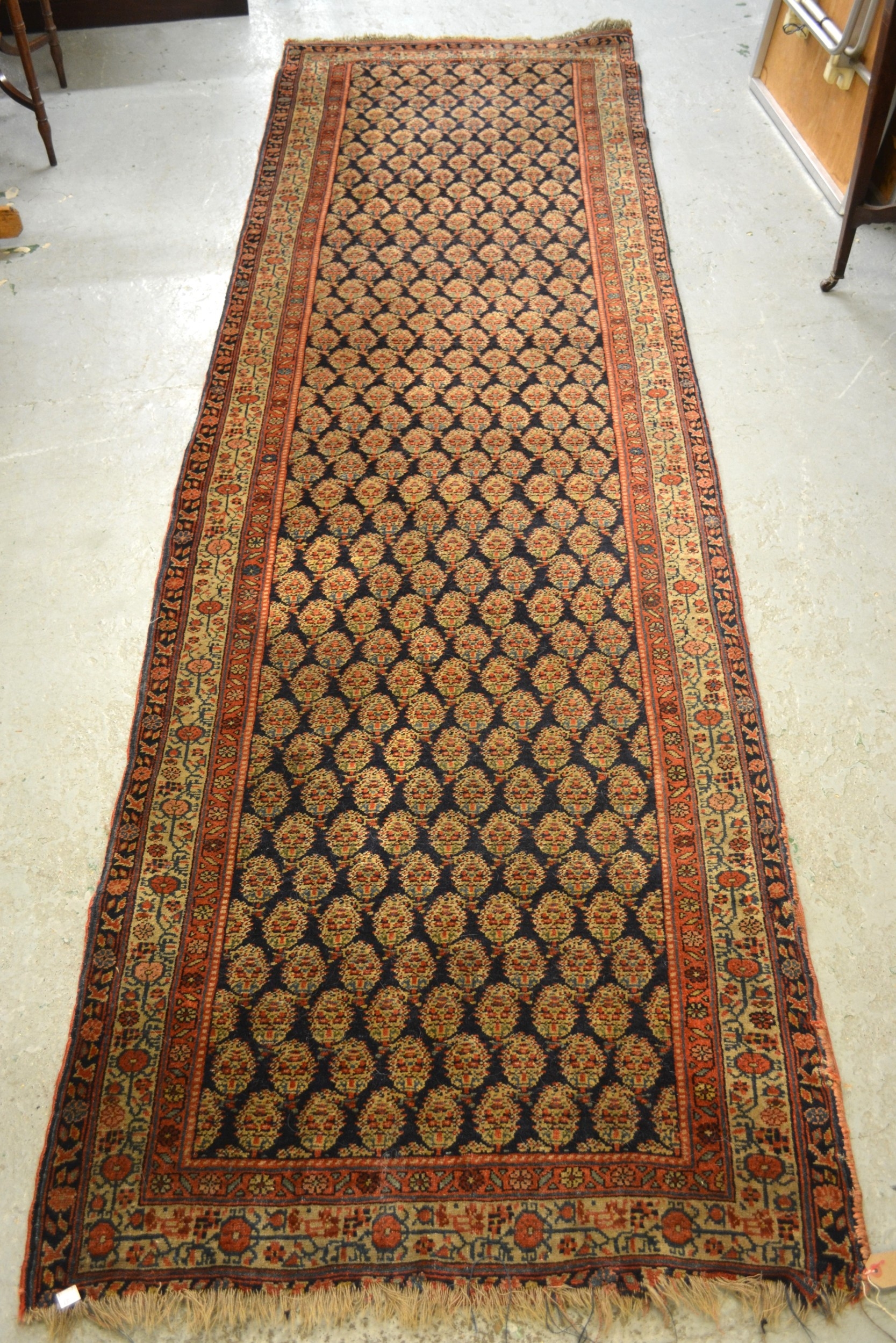 Good quality central Persian runner, with an all over boteh design on a midnight blue ground with borders 310cm X 83cm approximately (cut and joined at one end)