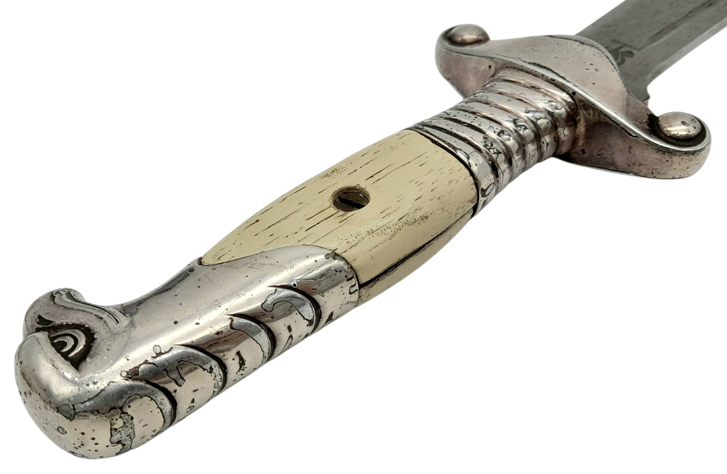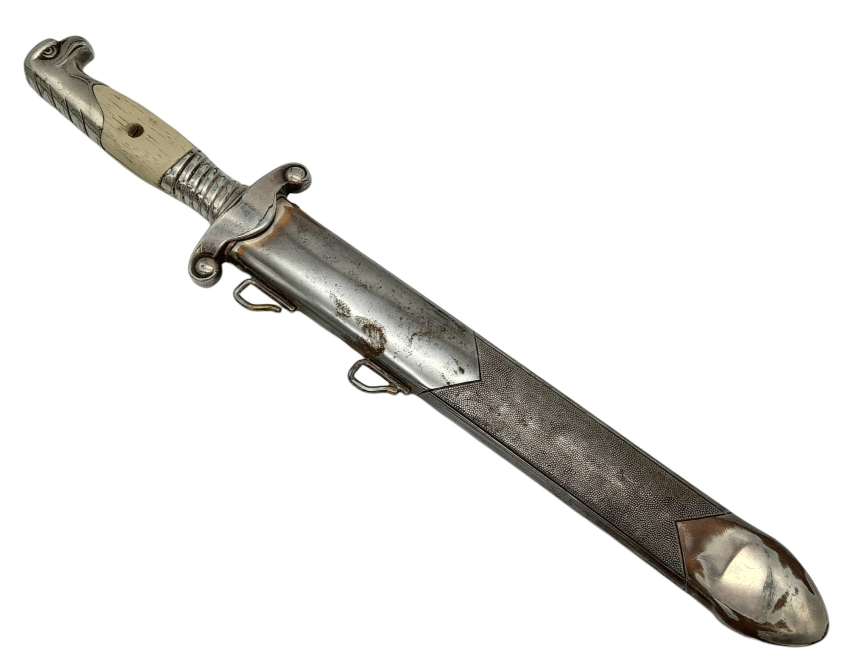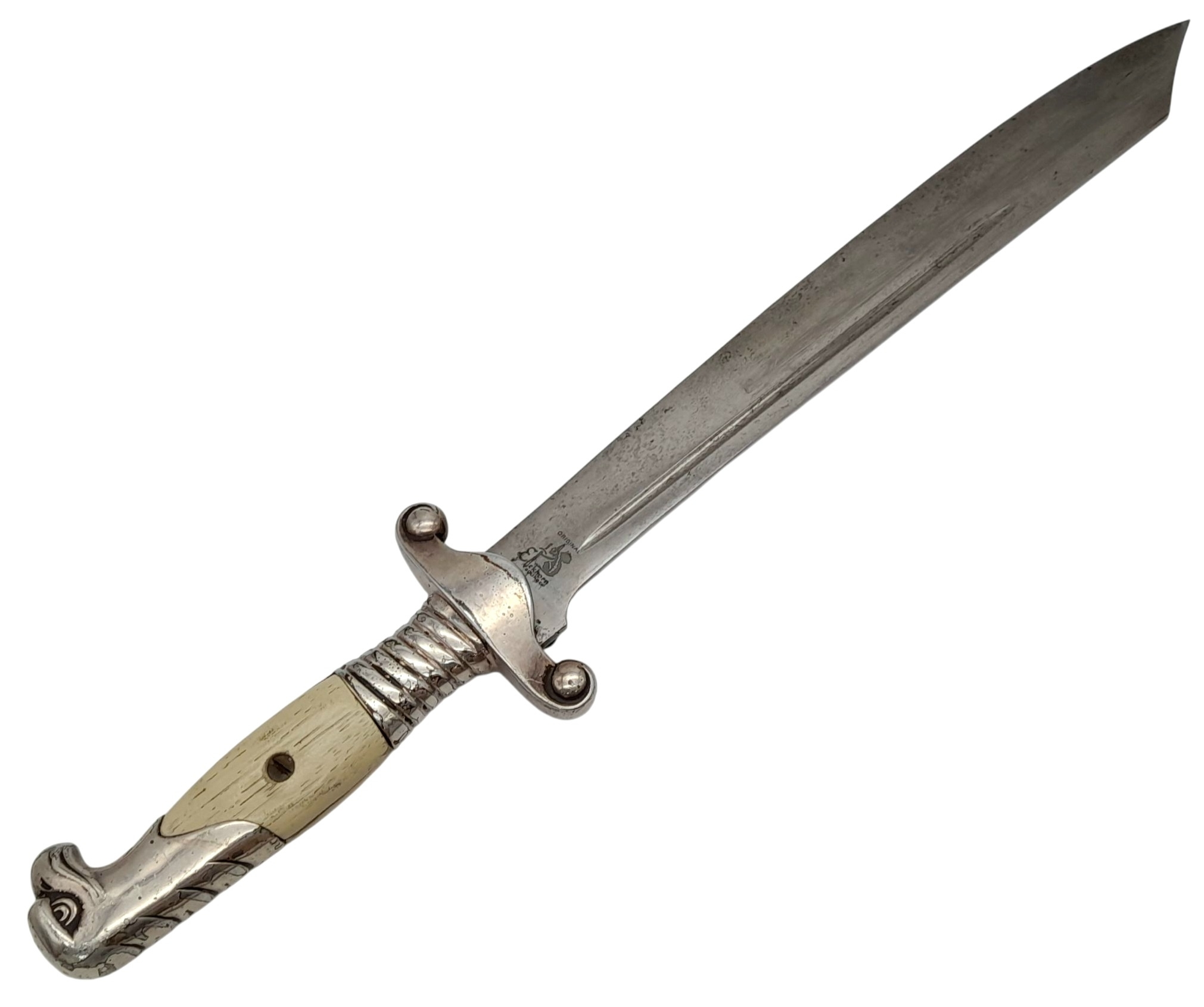 Original Third Reich 1937 Model Arbeits Dienst Leader's Dagger. Maker Eickhorn. All 100% original apart from the replacement Wooden grips. The scabbard is quite worn with a couple of dents. UK Mainland Shipping Only.