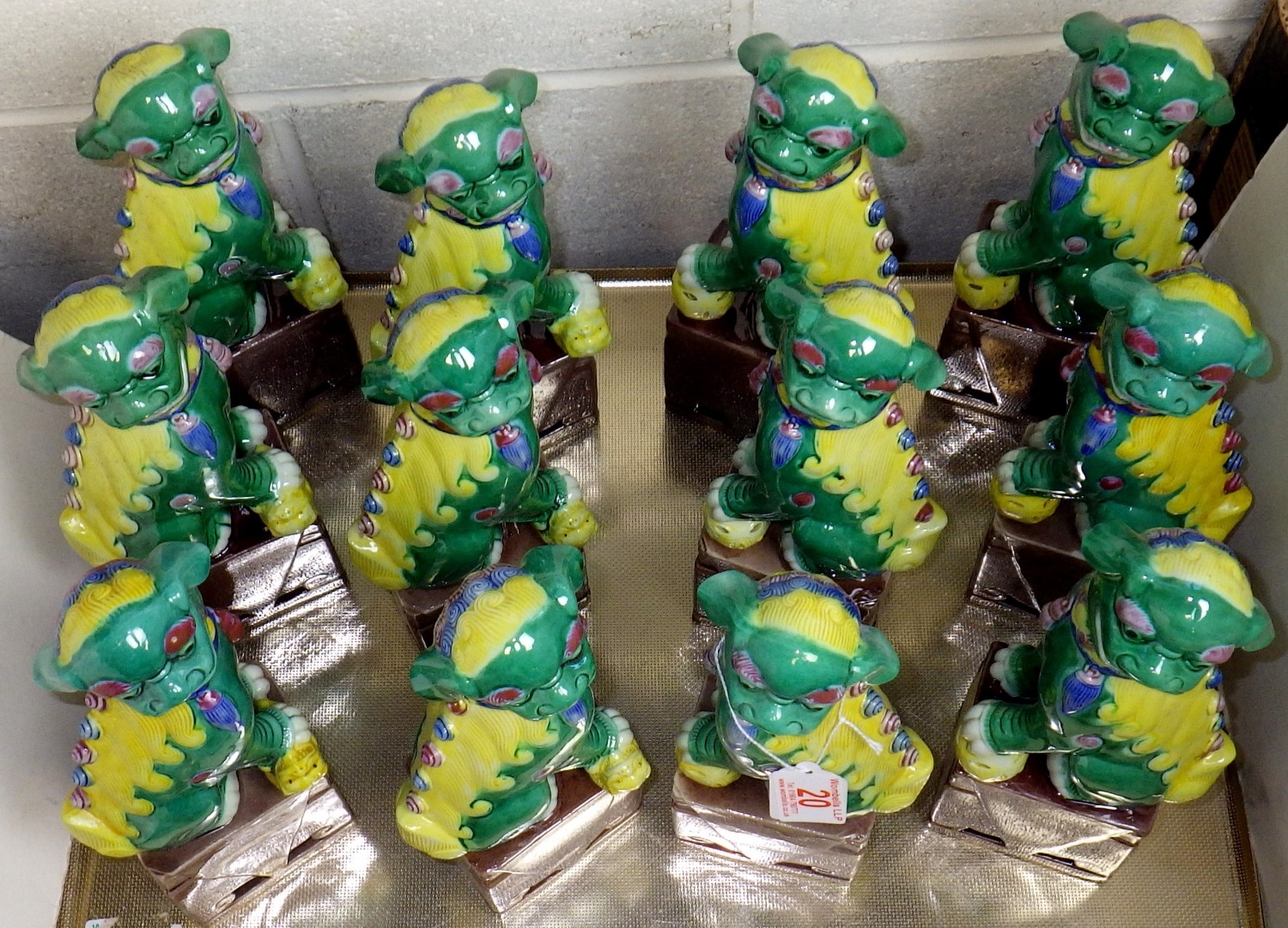Six pairs of green Foo Dogs, 26cm tall