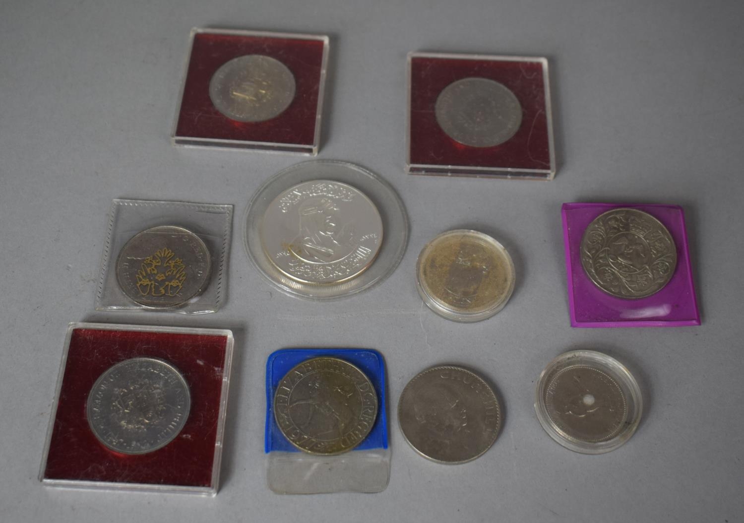 A Collection of Various Crowns to include Churchill, Three Cased HM QEII Silver Wedding Crowns, Souvenir Canadian Dollars, Middle Eastern Example etc