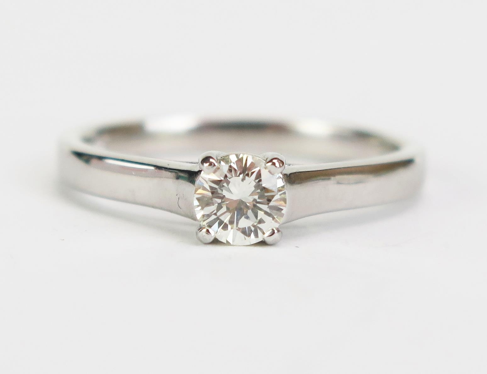 A Platinum and Diamond Solitaire Ring, stamped 950, size L.5, 3.96g, 4.1mm diameter stone