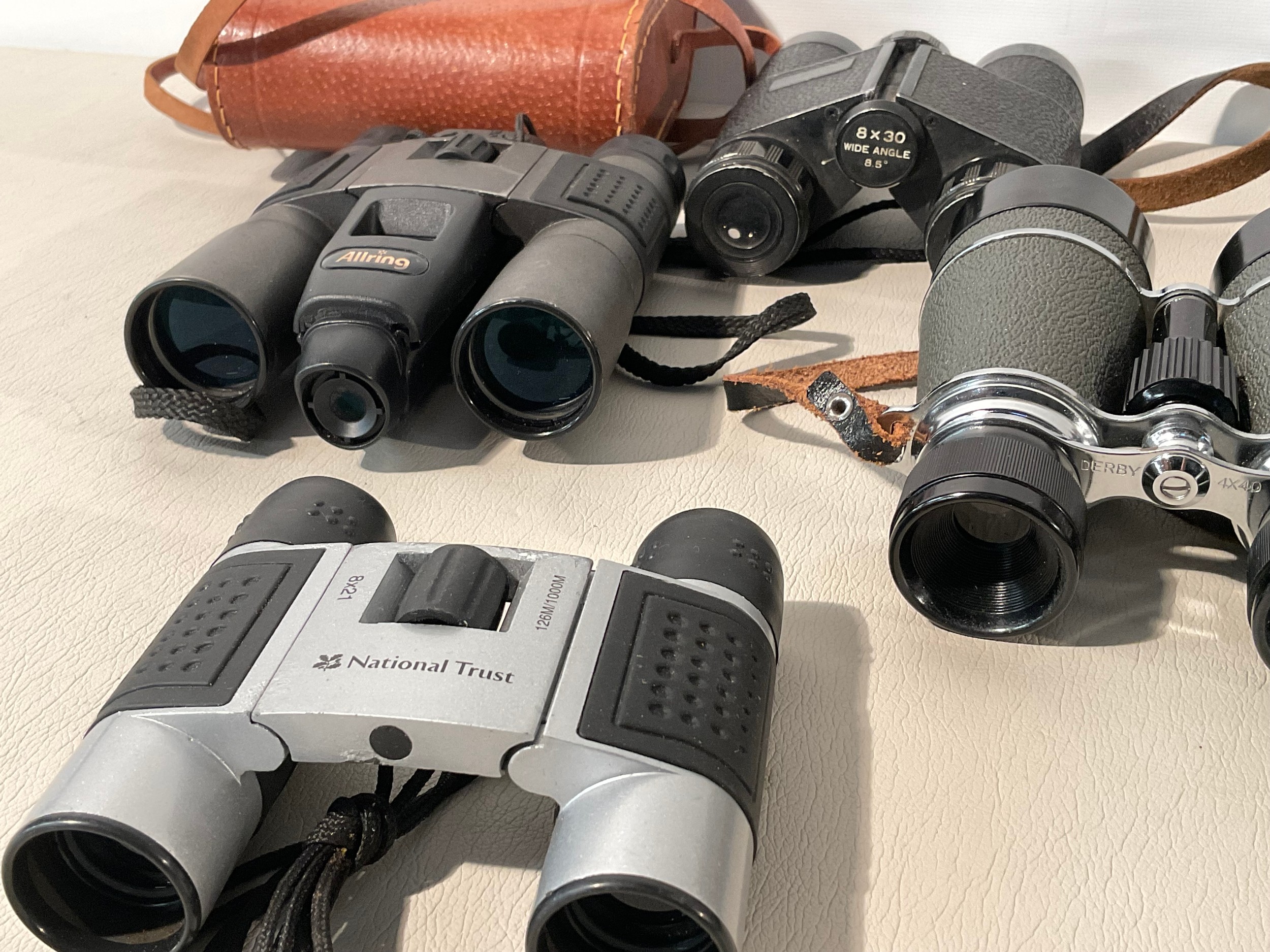 BOX TO INCLUDE VINTAGE BINOCULARS TO INCLUDE RUSSINA 8 X 30,...