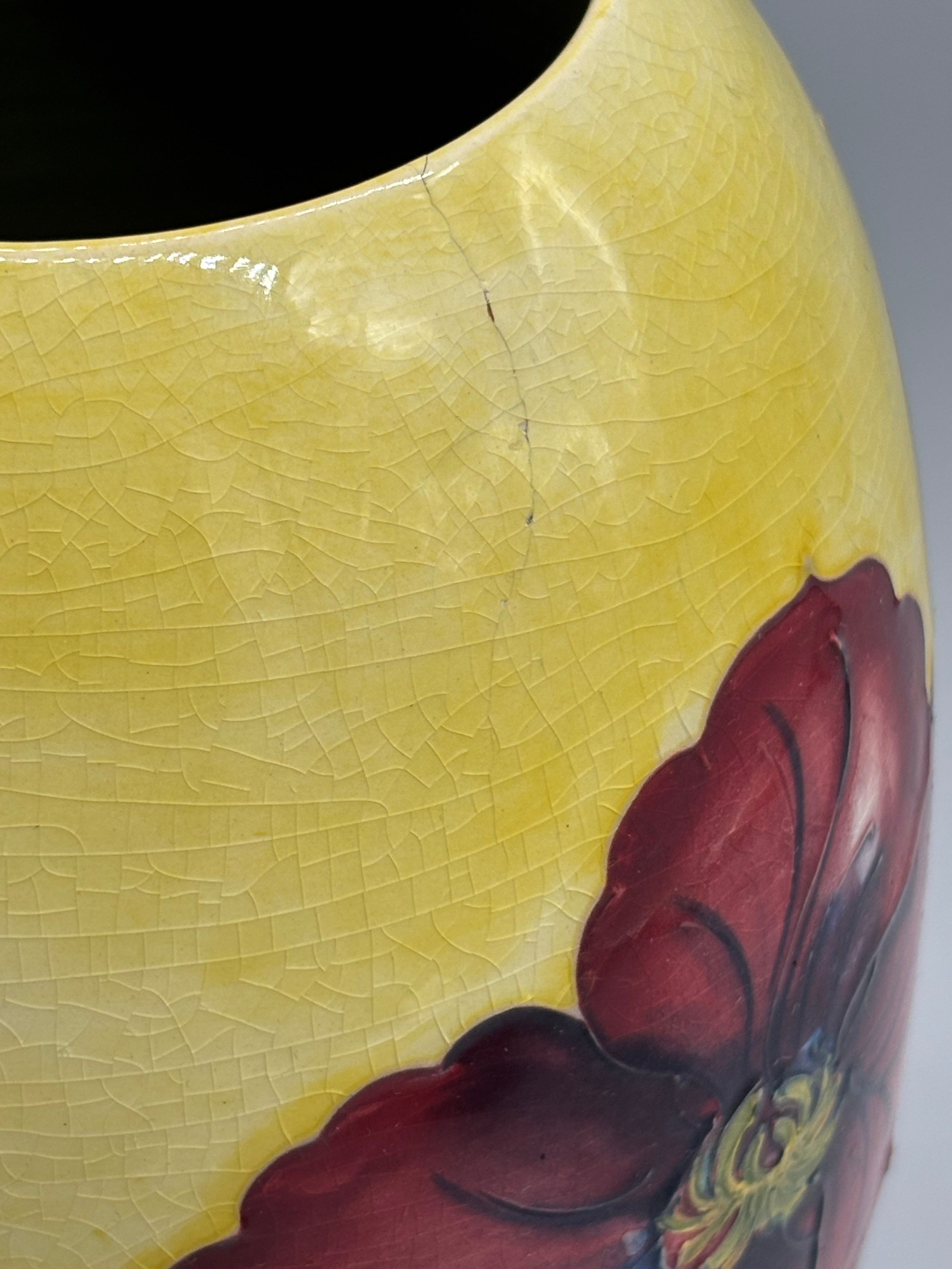 Large Moorcroft Hibiscus pattern Vase by William Moorcroft. 31cm in height. As Found.