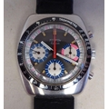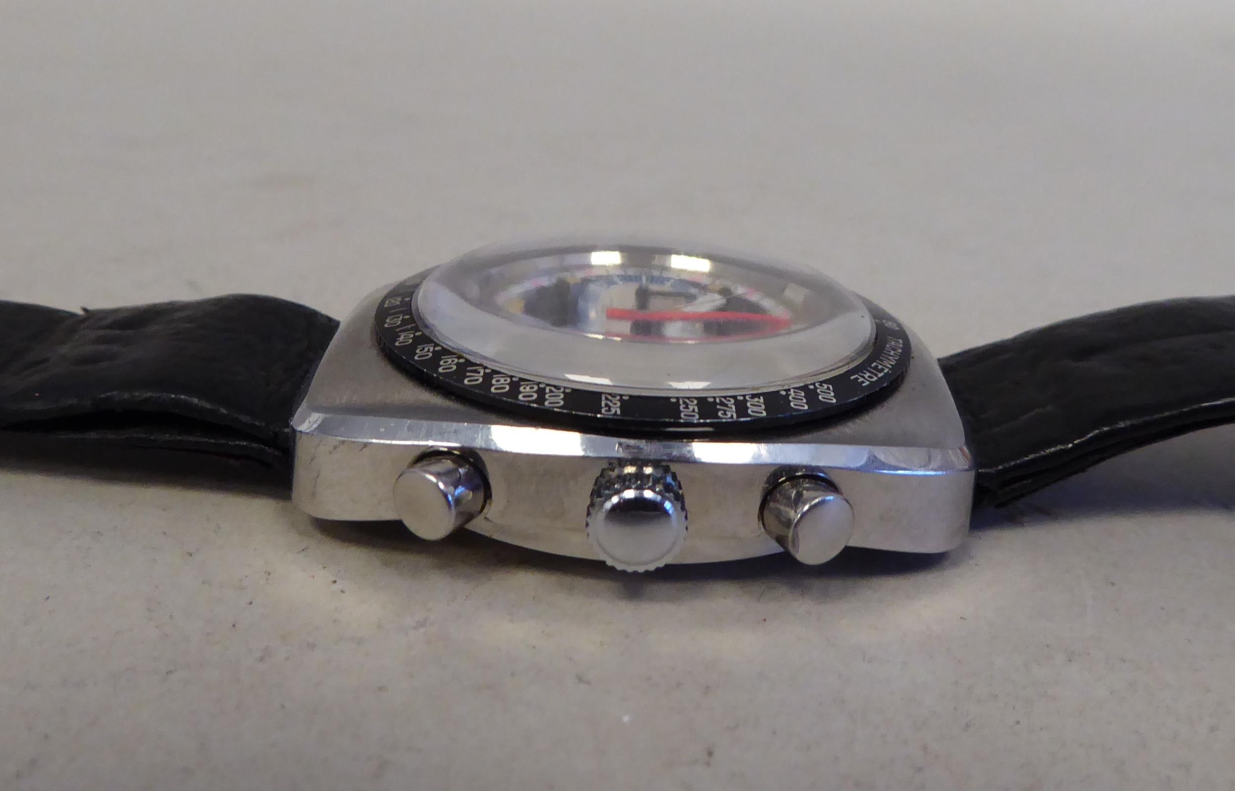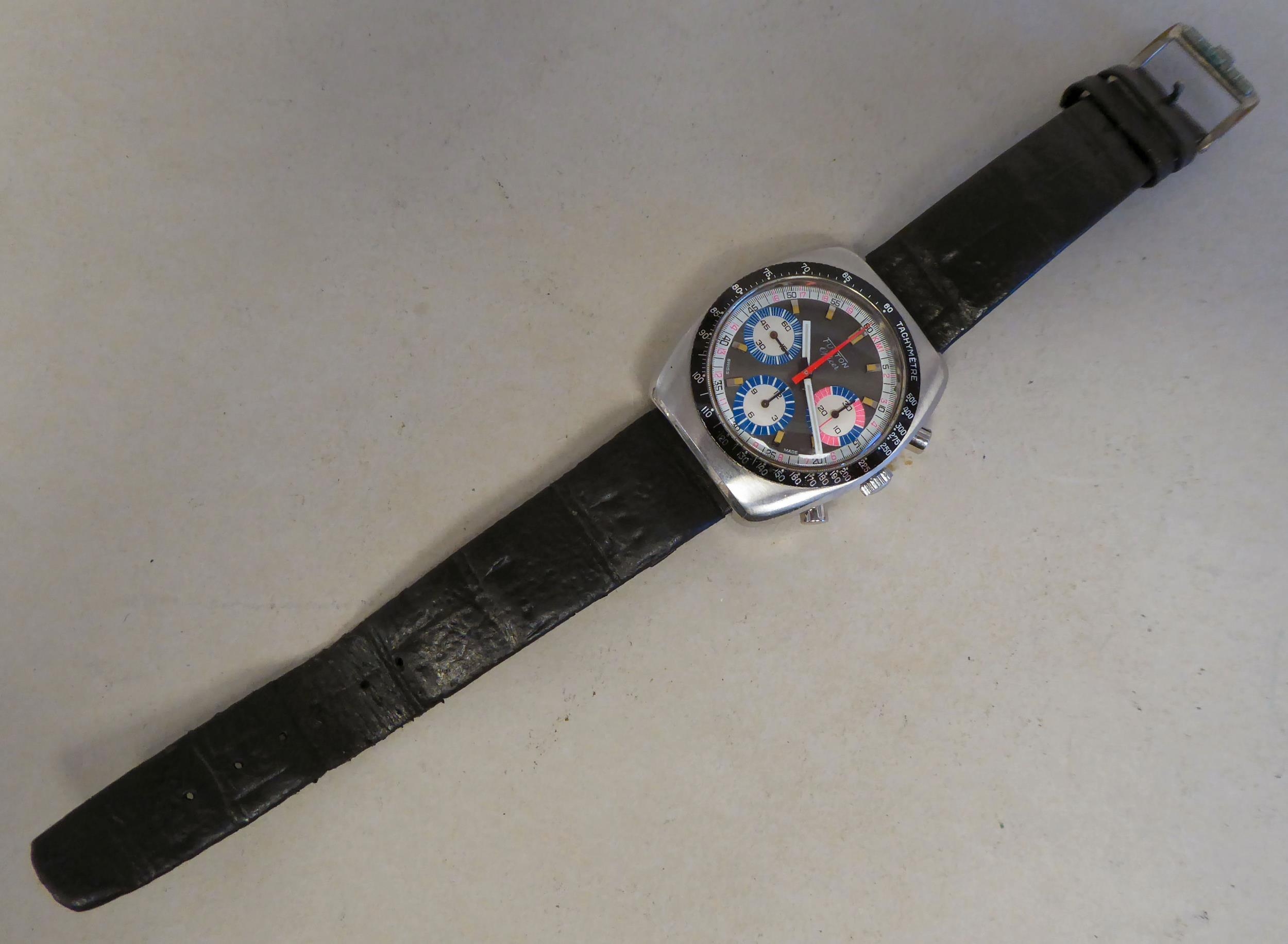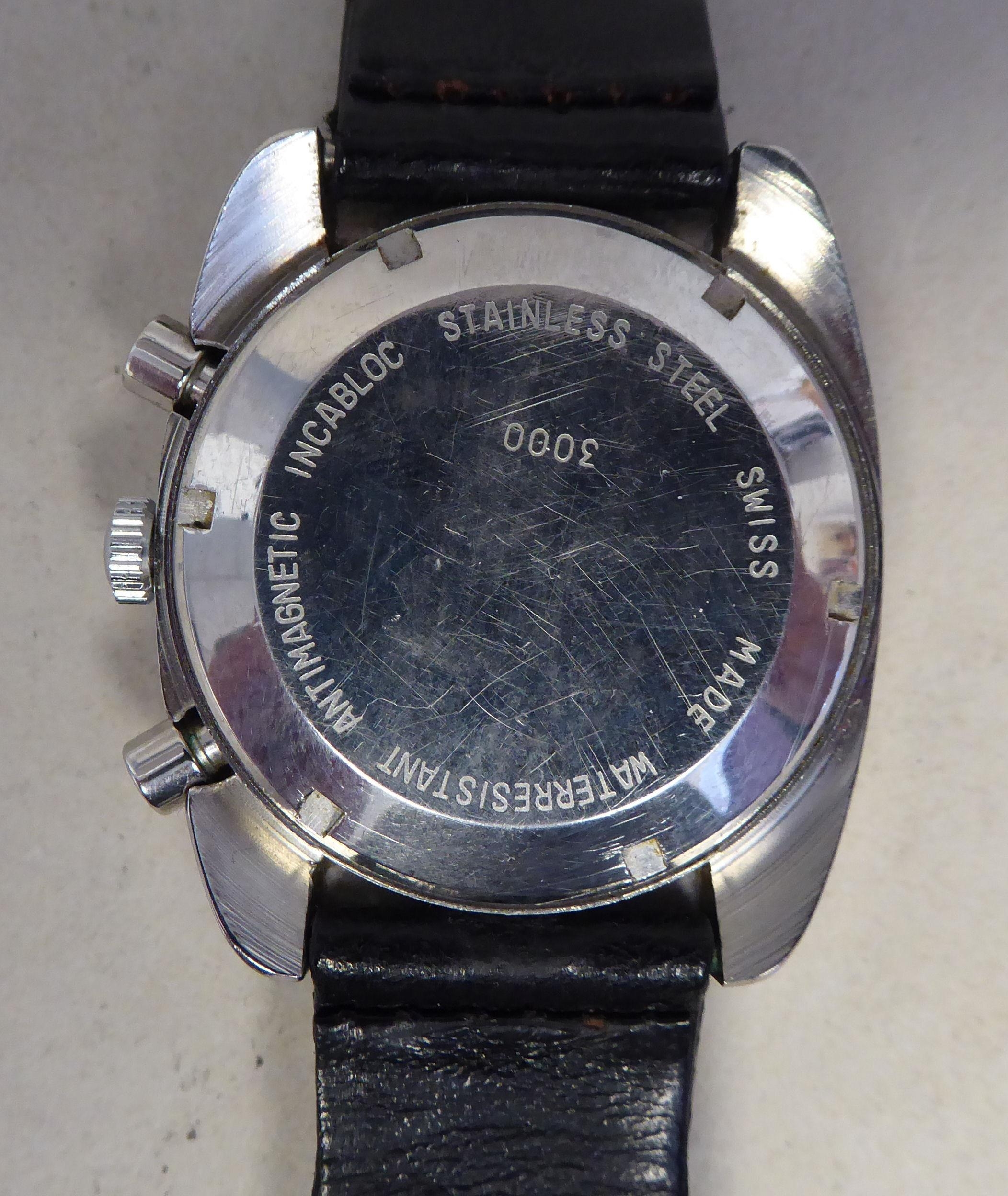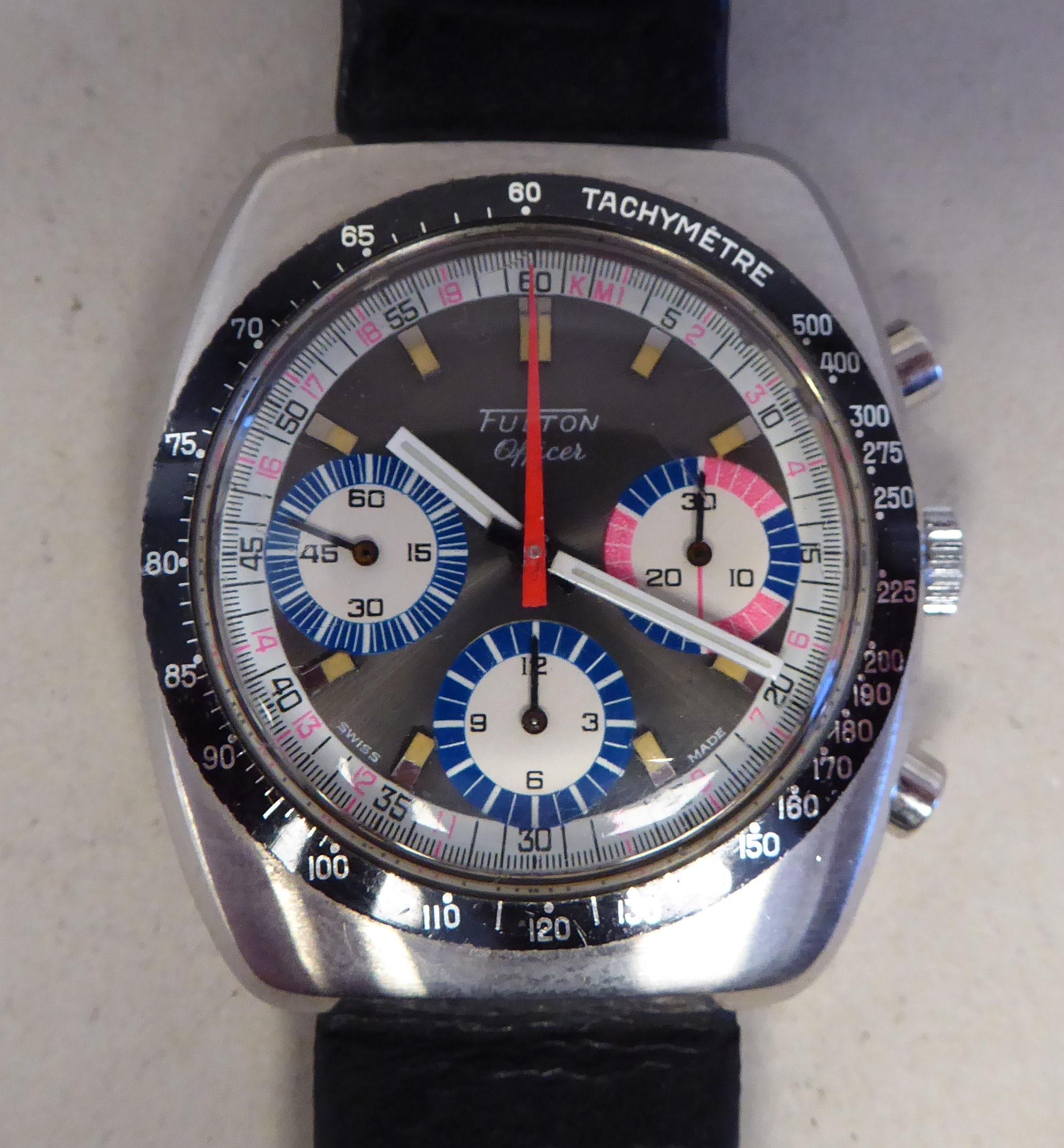 A Fulton Officer chronograph, stainless steel cased wristwatch, faced by a baton dial and three subsidiary dials
