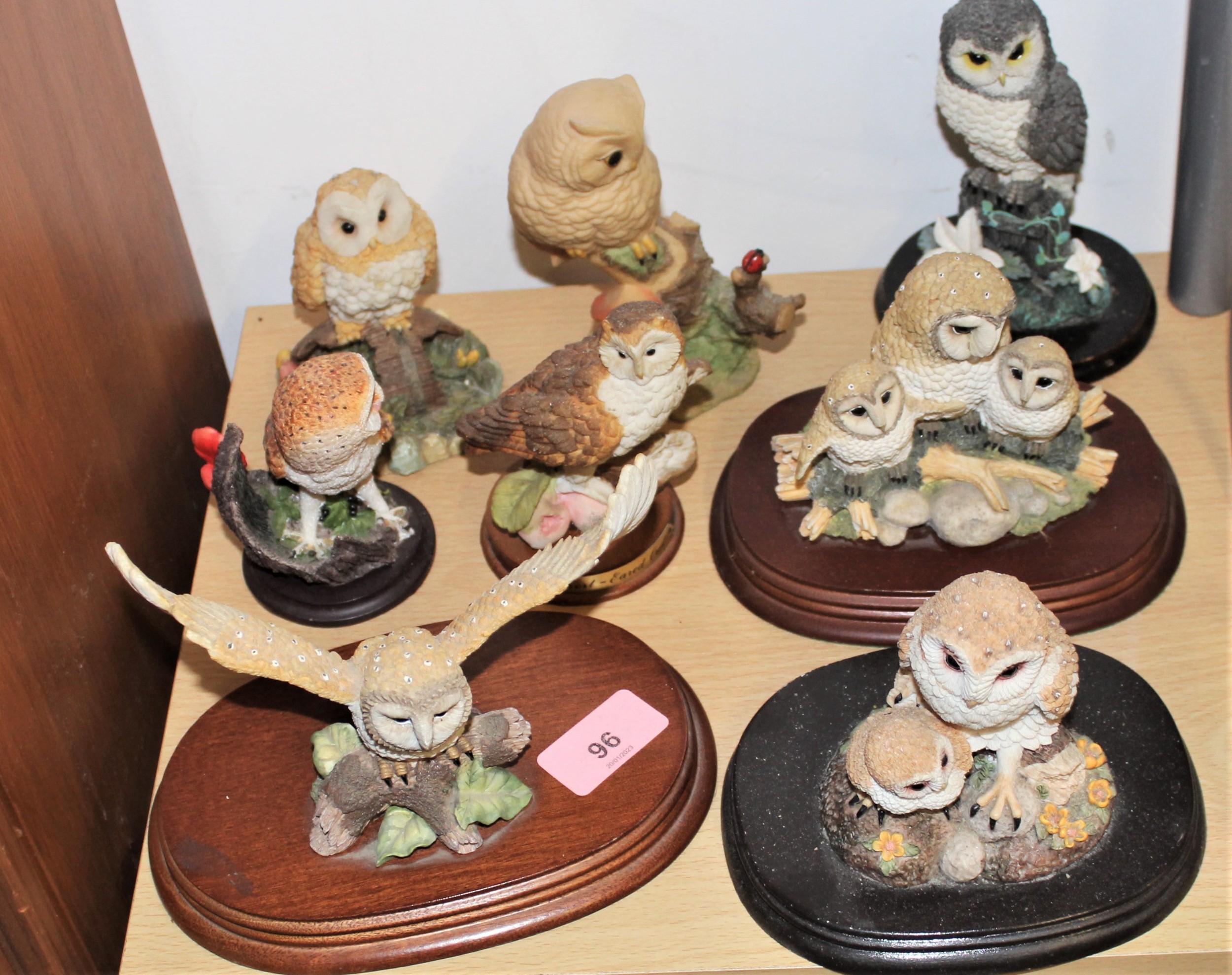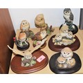 Collection of Resin Owl Ornaments on Wooden Plinths