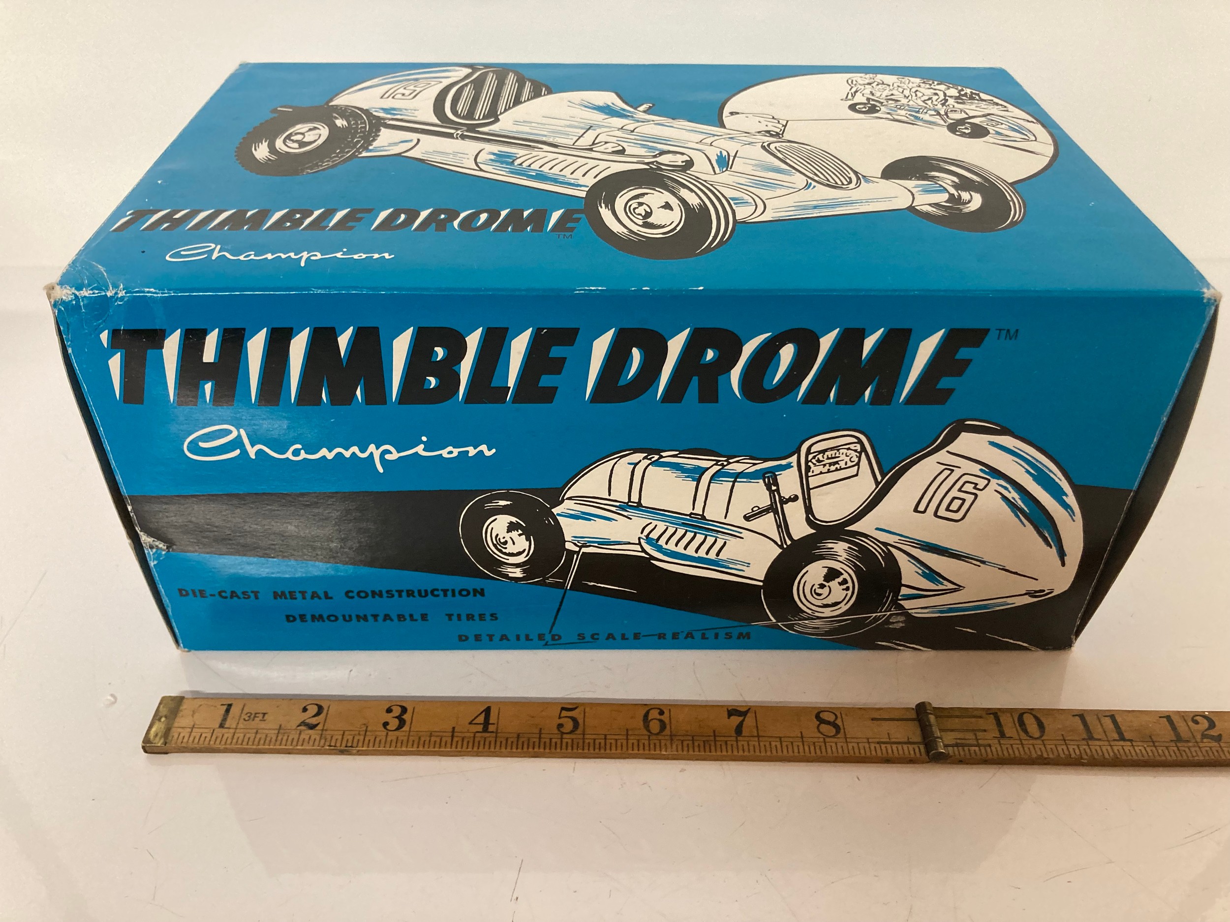 Automobilia, model tether car, a Cox thimble drome racer model 8 inches long, boxed.