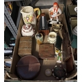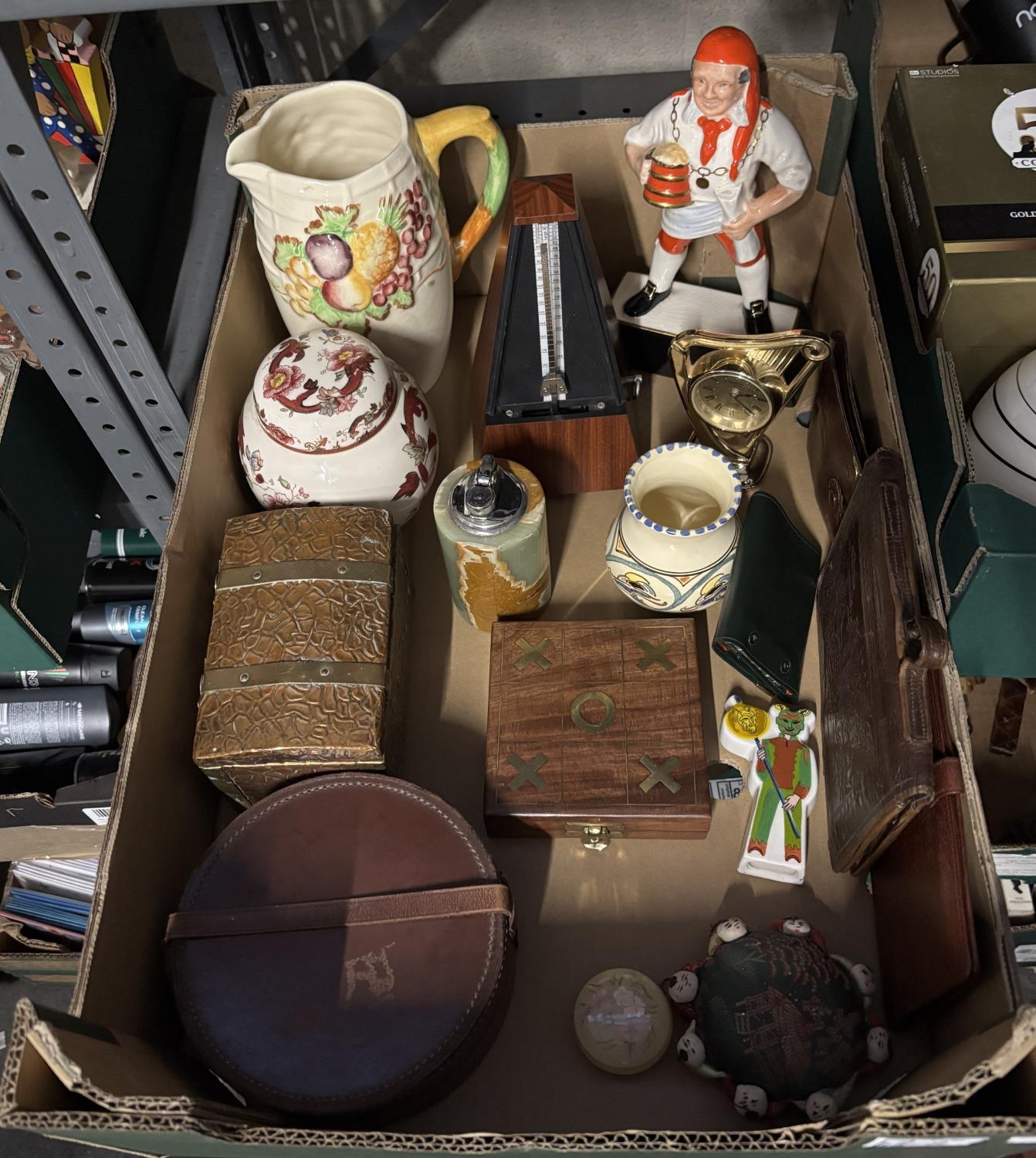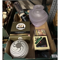 Box containing a large onyx lighter, collar box and a tea chest