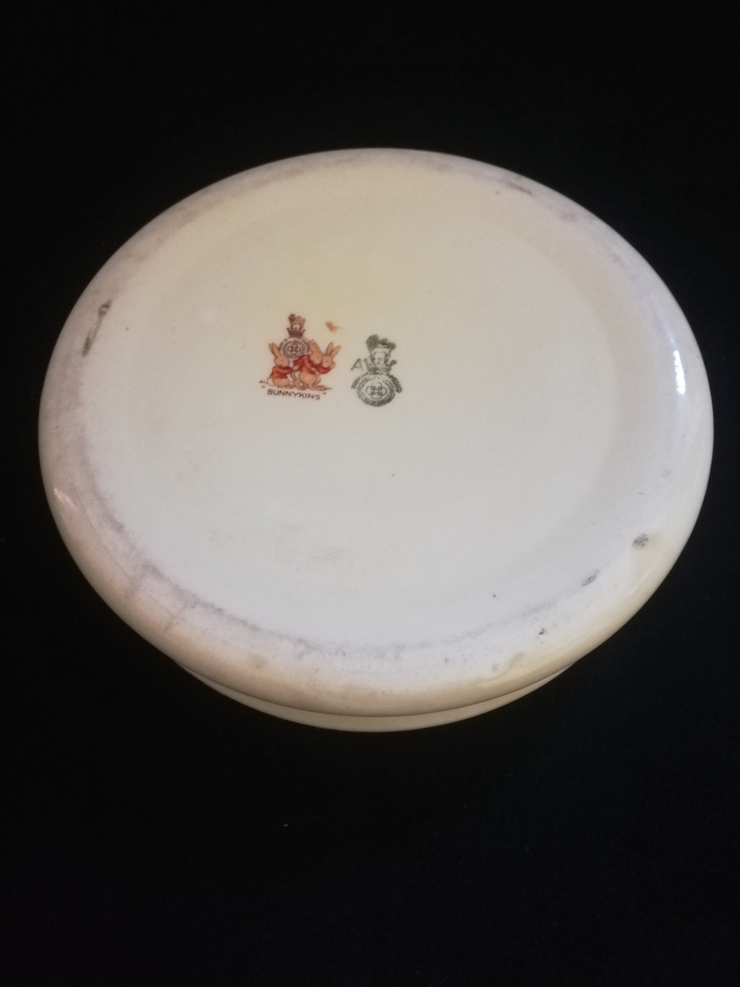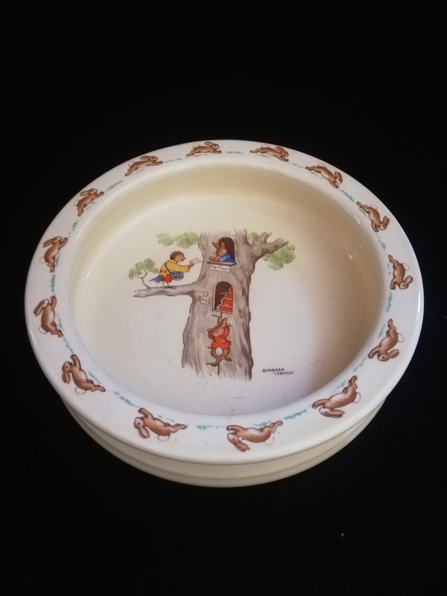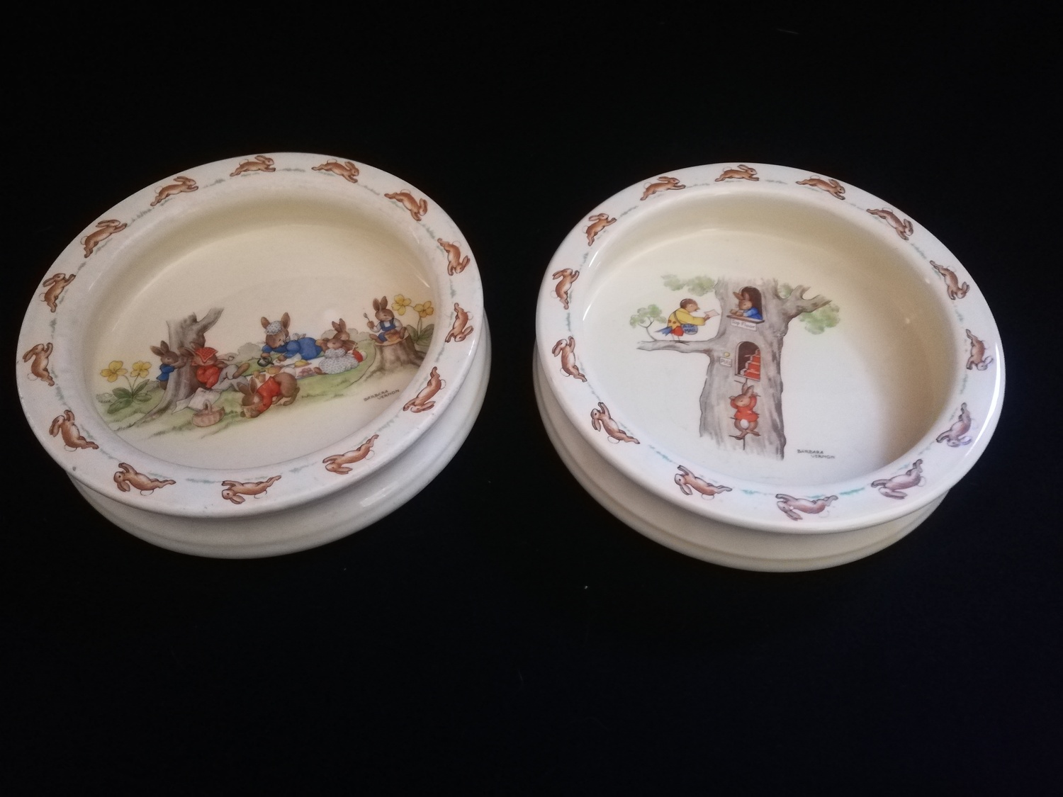 Royal Doulton Bunnykins 2 x large (7½") diameter baby plates with RARE patterns by Barbara Vernon