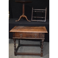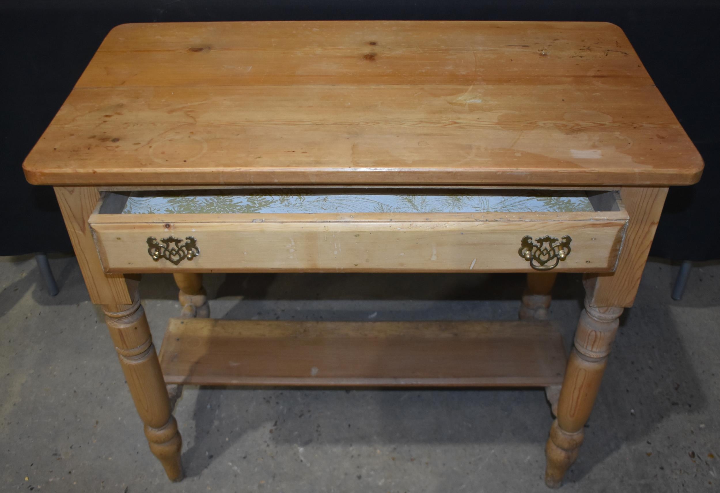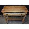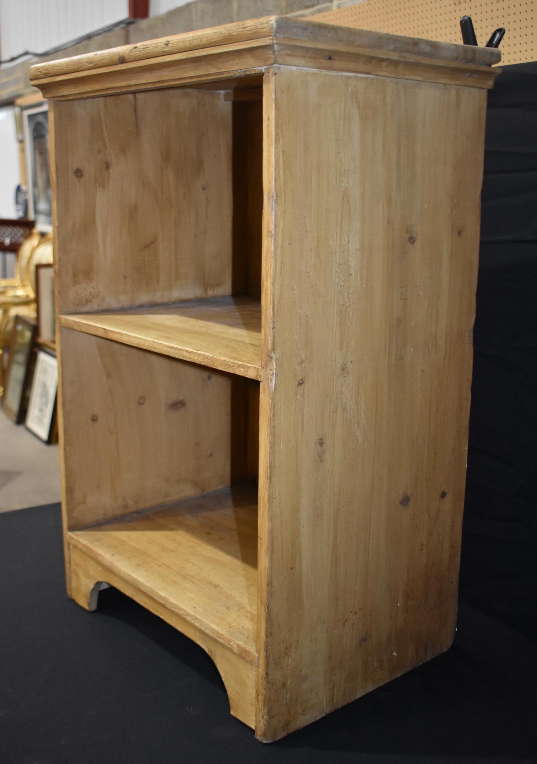 A vintage Pine one drawer table together with a Pine bookcase/shelf unit and a chair; table 74 x 85 x 45cm (3)