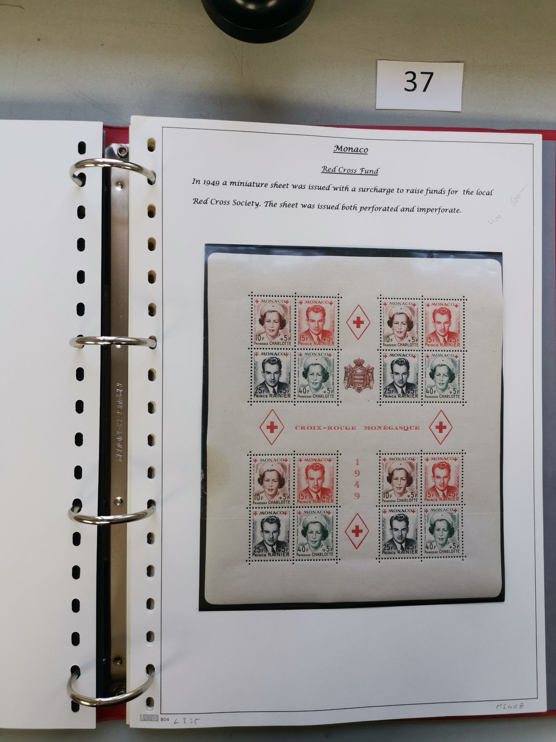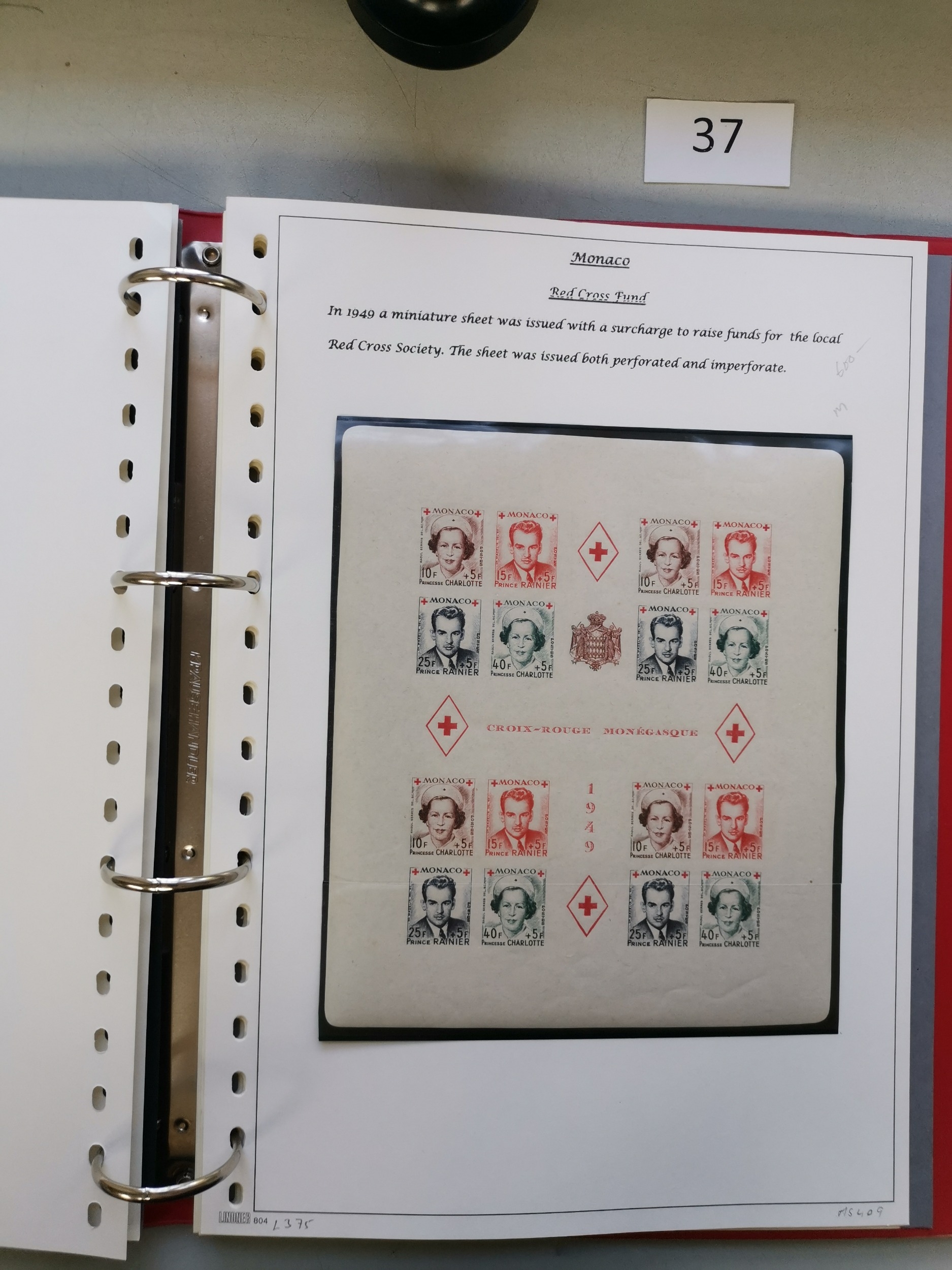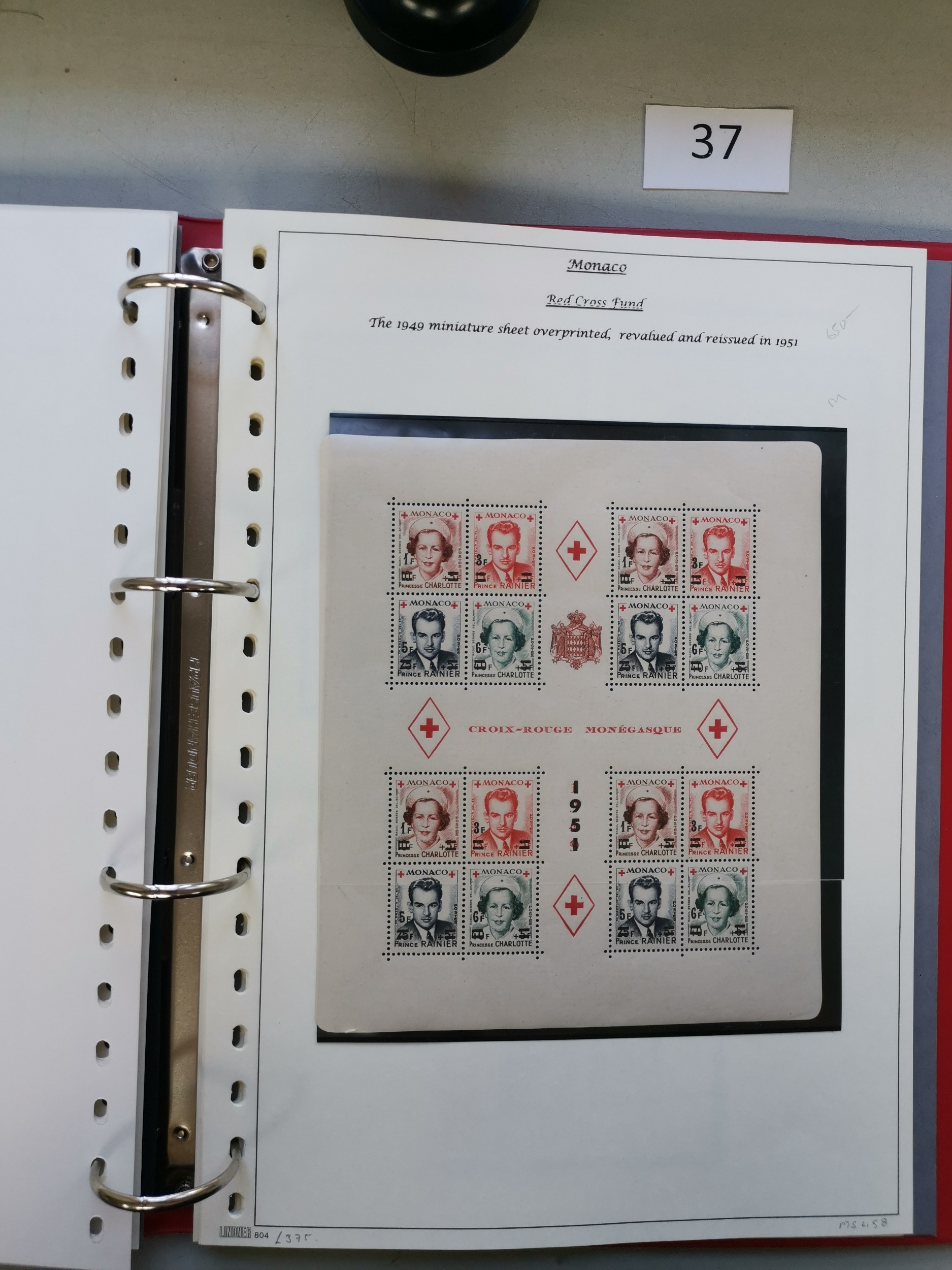 MIXED WORLD. REDCROSS. Various in binder incl. Monaco 1949 perf m/s UM and imperf m/s M 1951 surcharged m/s M others incl. Spain France and Germany. (QTY)