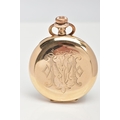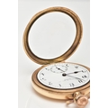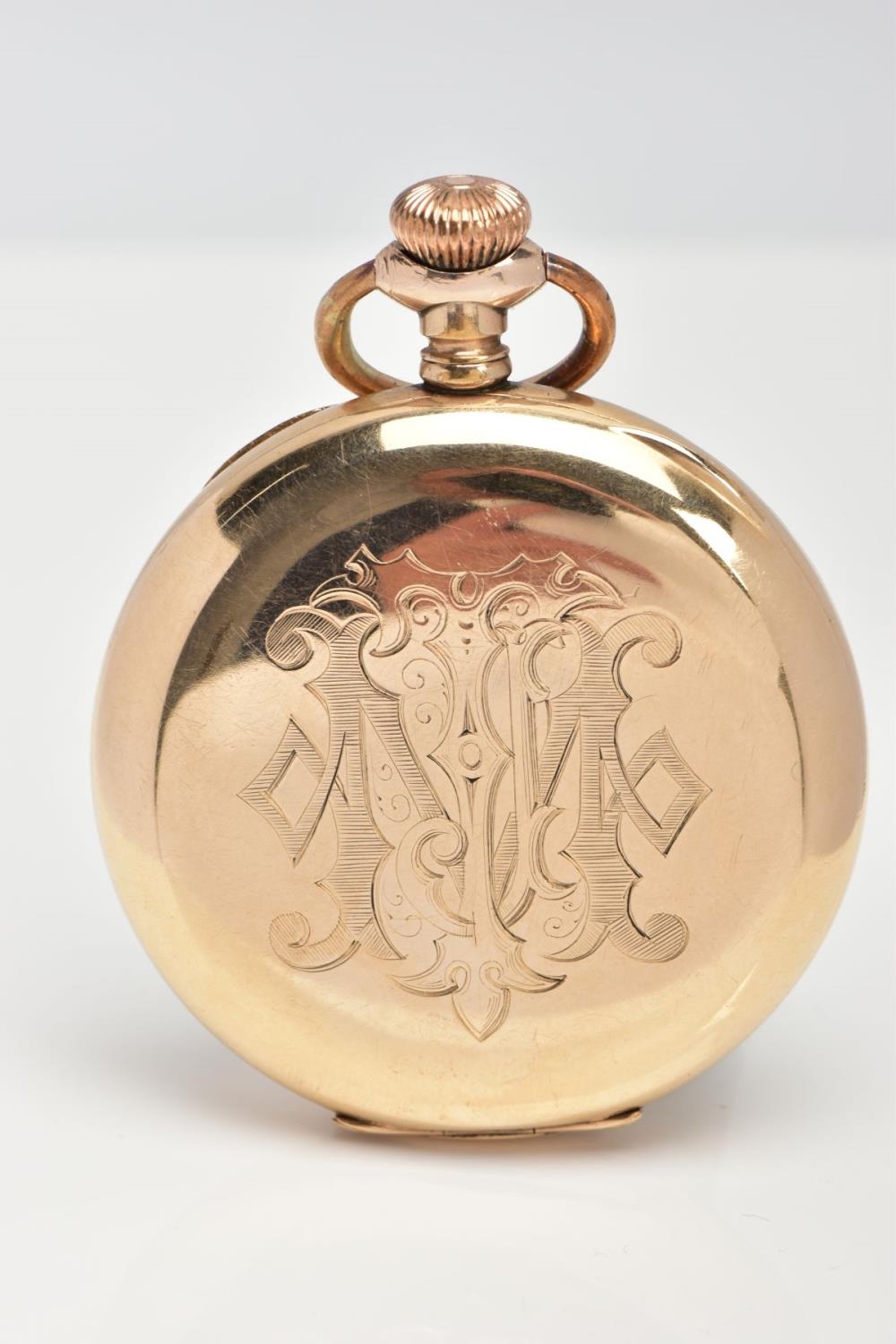 A ROLLED GOLD OPEN FACE POCKET WATCH, round white dial signed 'Fattorini & Sons Ltd, Westgate, Bradford', Arabic numerals, seconds subsidiary dial at the six o'clock position, blue hands, within a plain polished case and engraved initials to the reverse, case back signed 'A.L.D Dennison' 417428, dust cover stamped made of two plates of 14ct gold', movement signed 'A.W.W.Co Waltham, Mass' 15065543', (condition report: currently non-running, general light wear)
