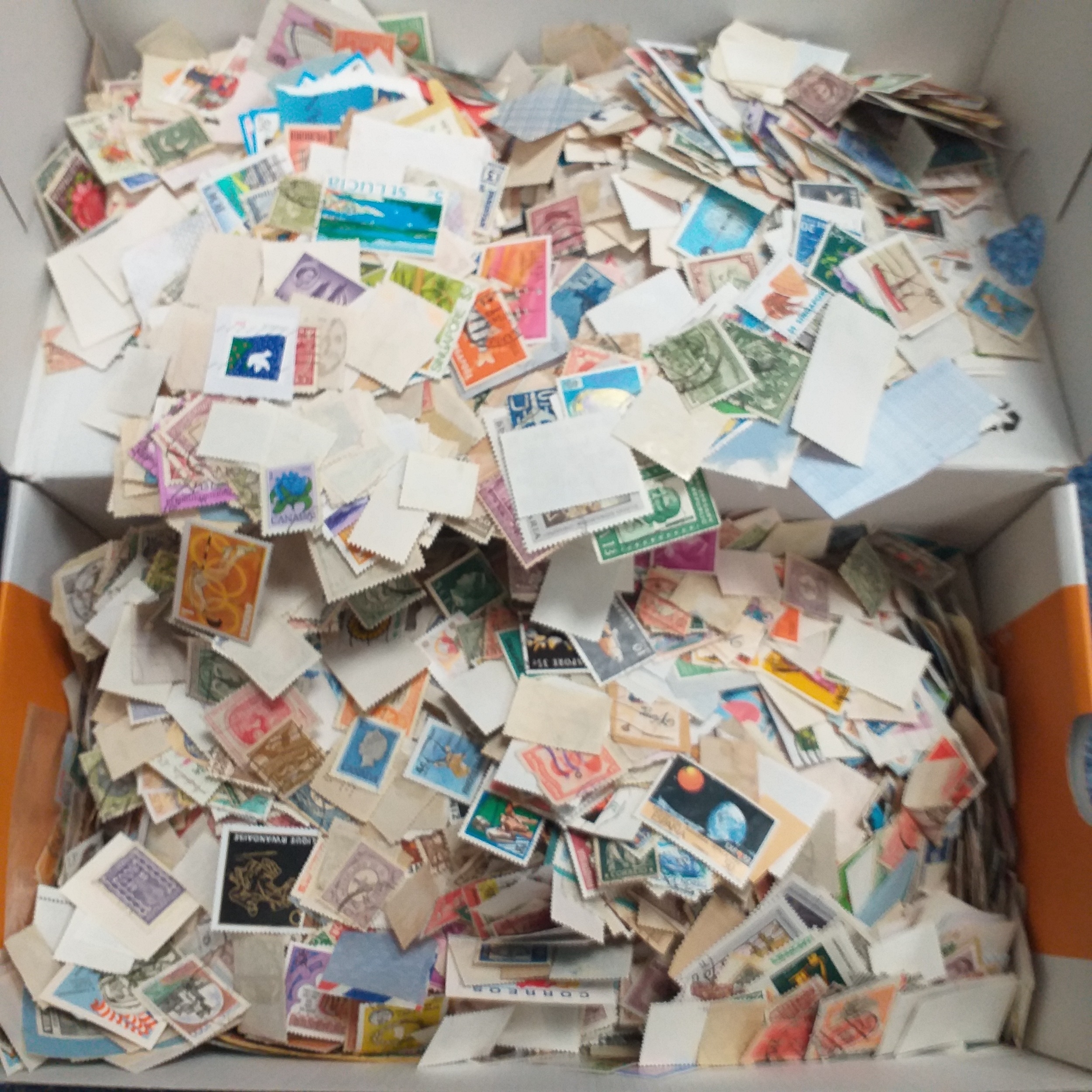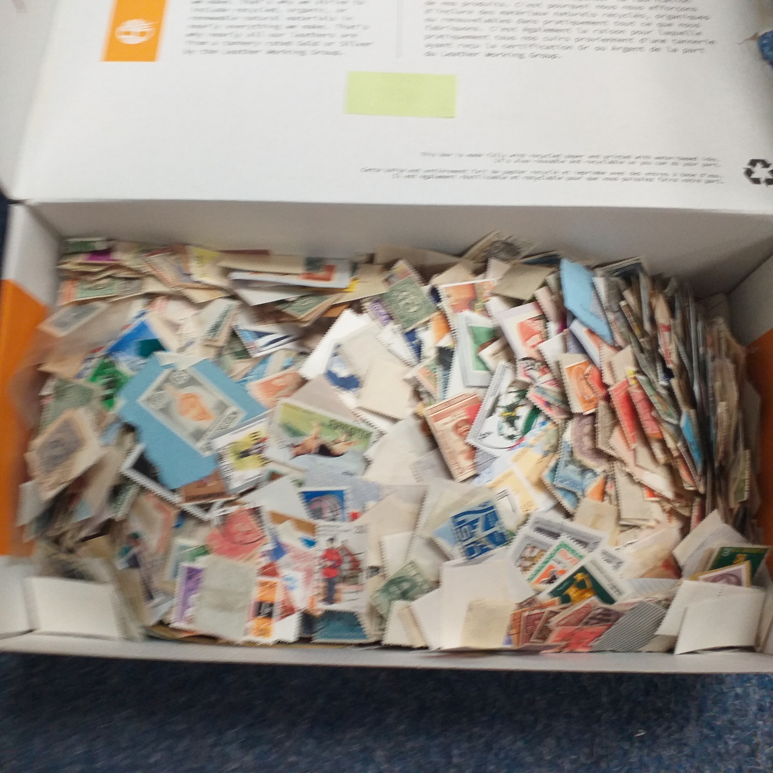 Box - Shoe box containing 1kg world kiloware, mostly off paper mostly pre 1960.