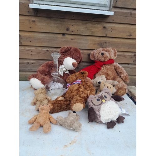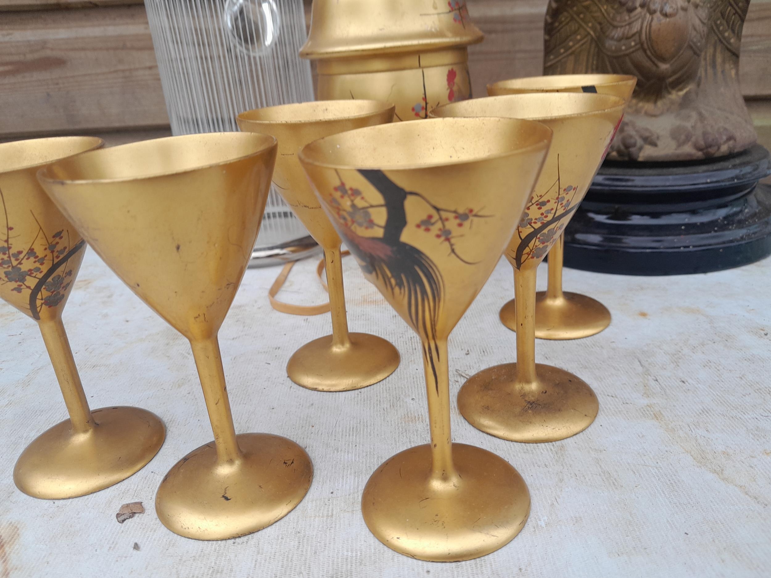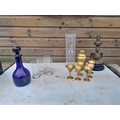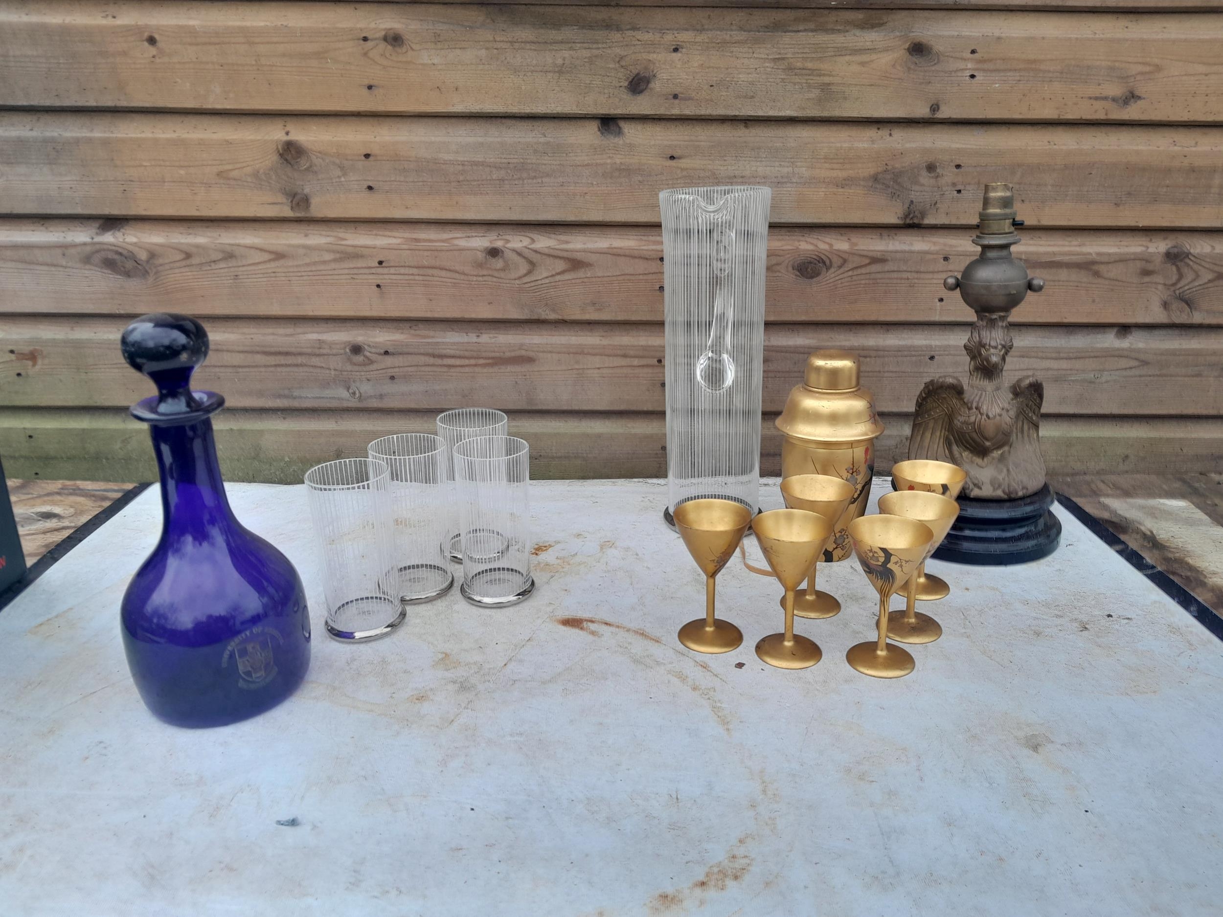 Decorative china and glassware, modern cobalt blue decanter, vintage Japanese gilded lacquerware etc.