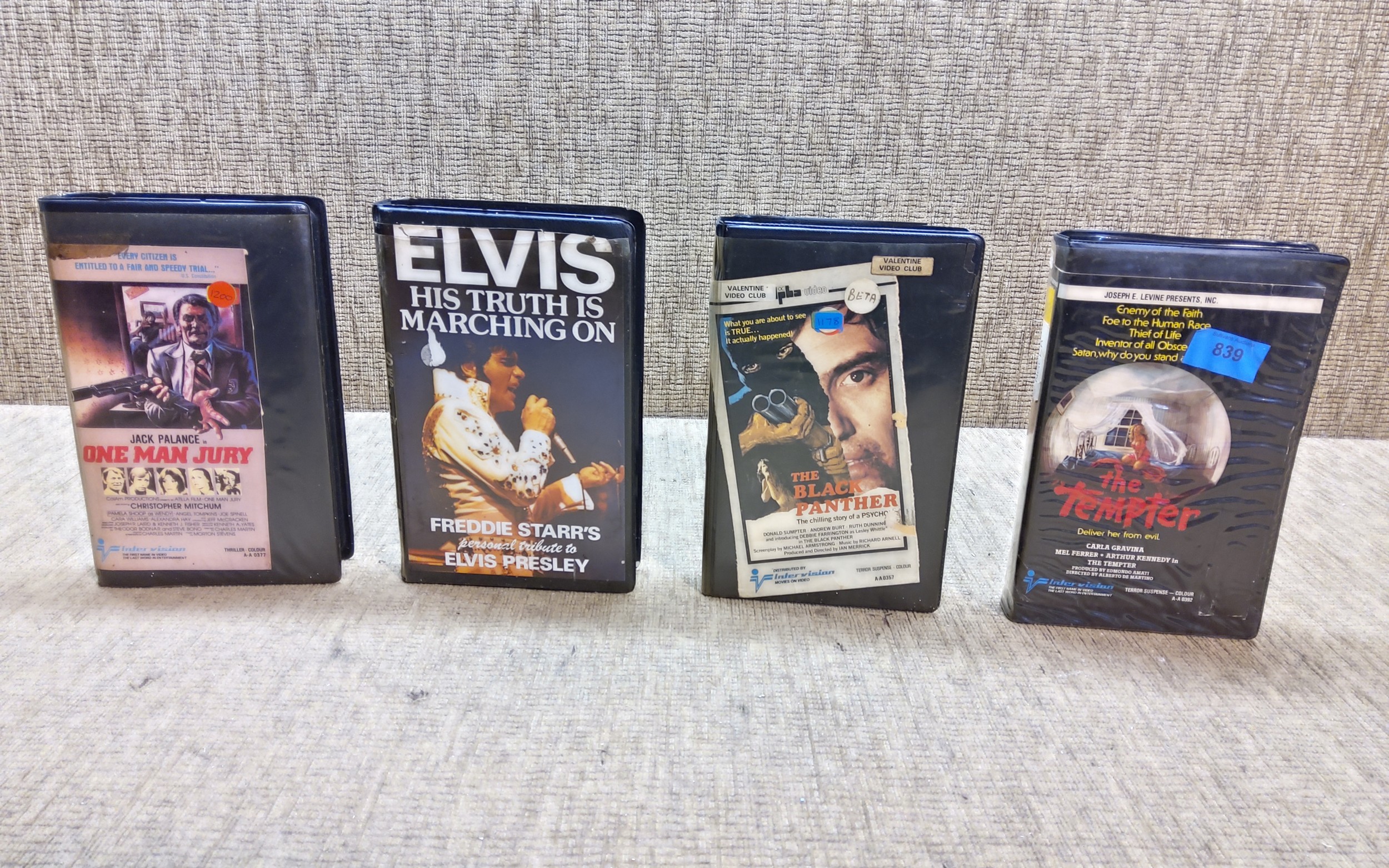 Four beta max tapes including Elvis, The black Panther and The temper and one man Jury.