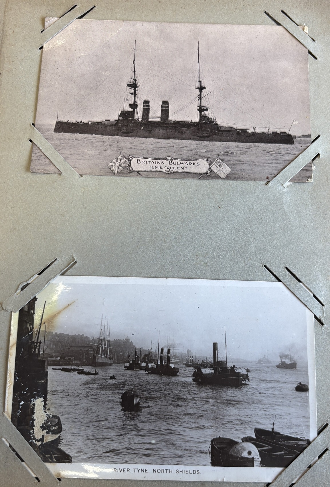 Misc. coln in two albums, with vintage and modern ptd, artist drawn and R.P's incl. coastal views, military interest, portraits and shipping. Plus range of cigarette cards in books. Approx. Qty. 100+. (½B)