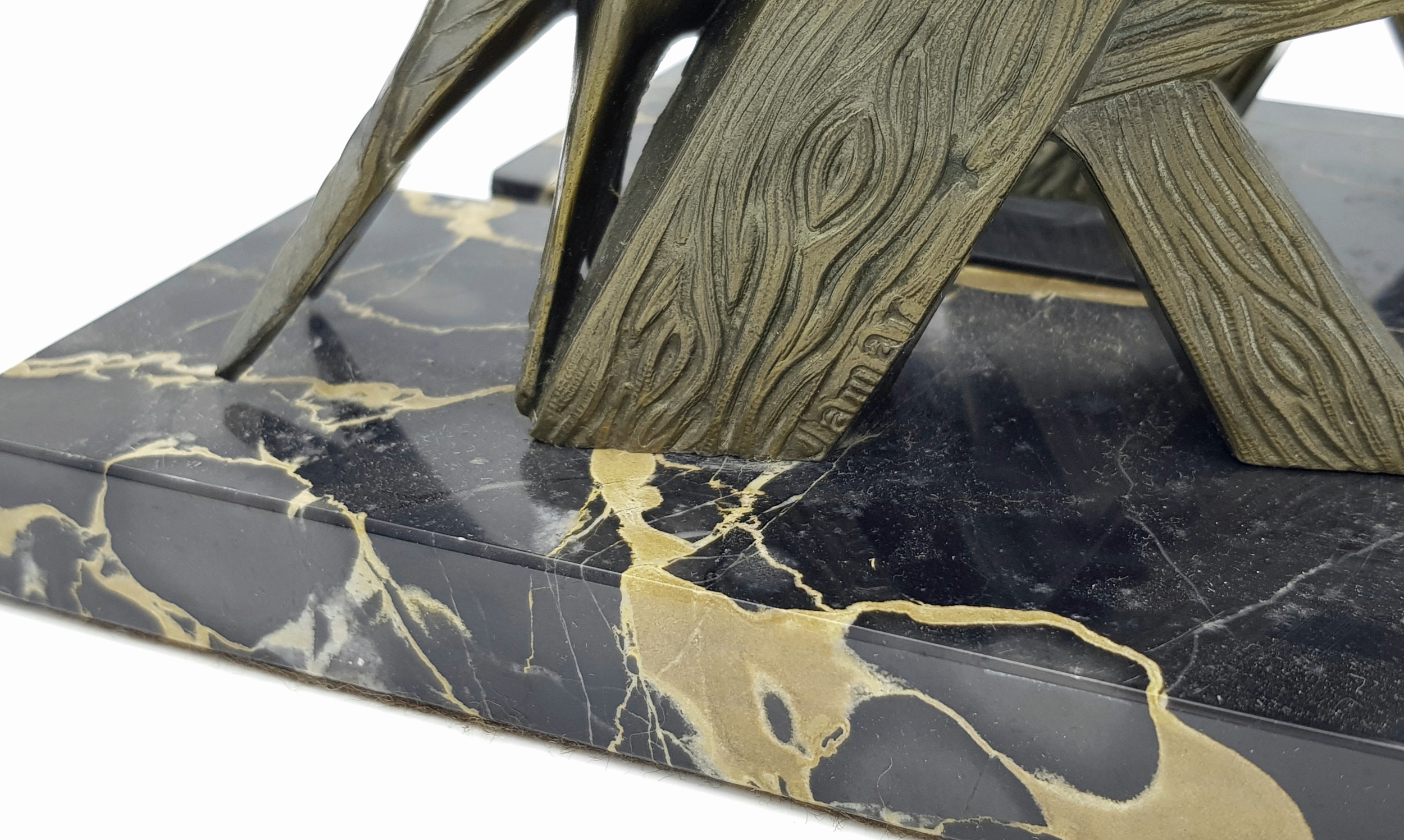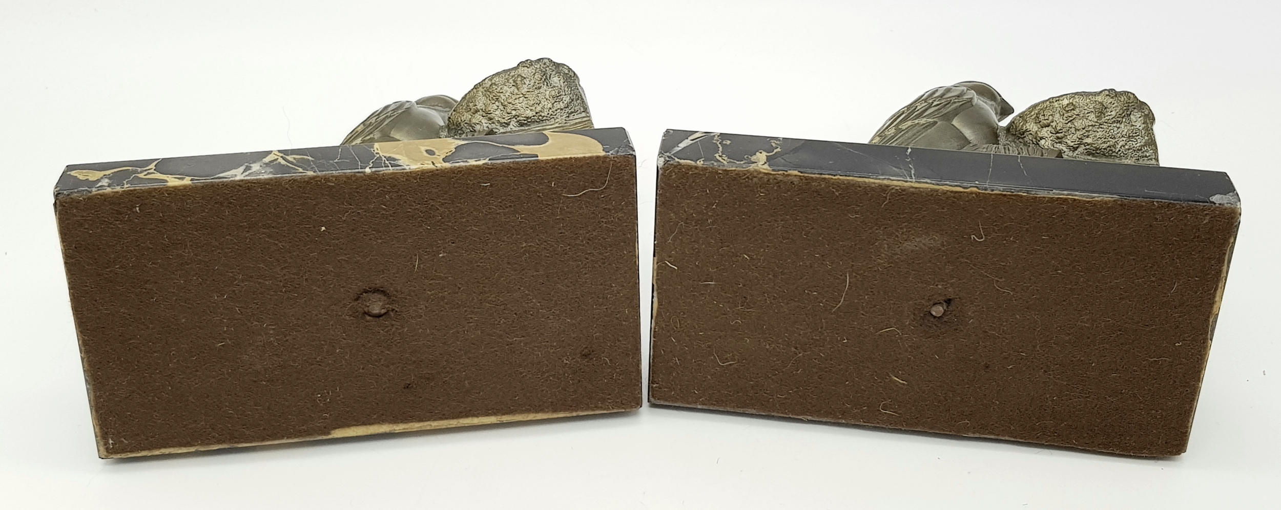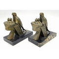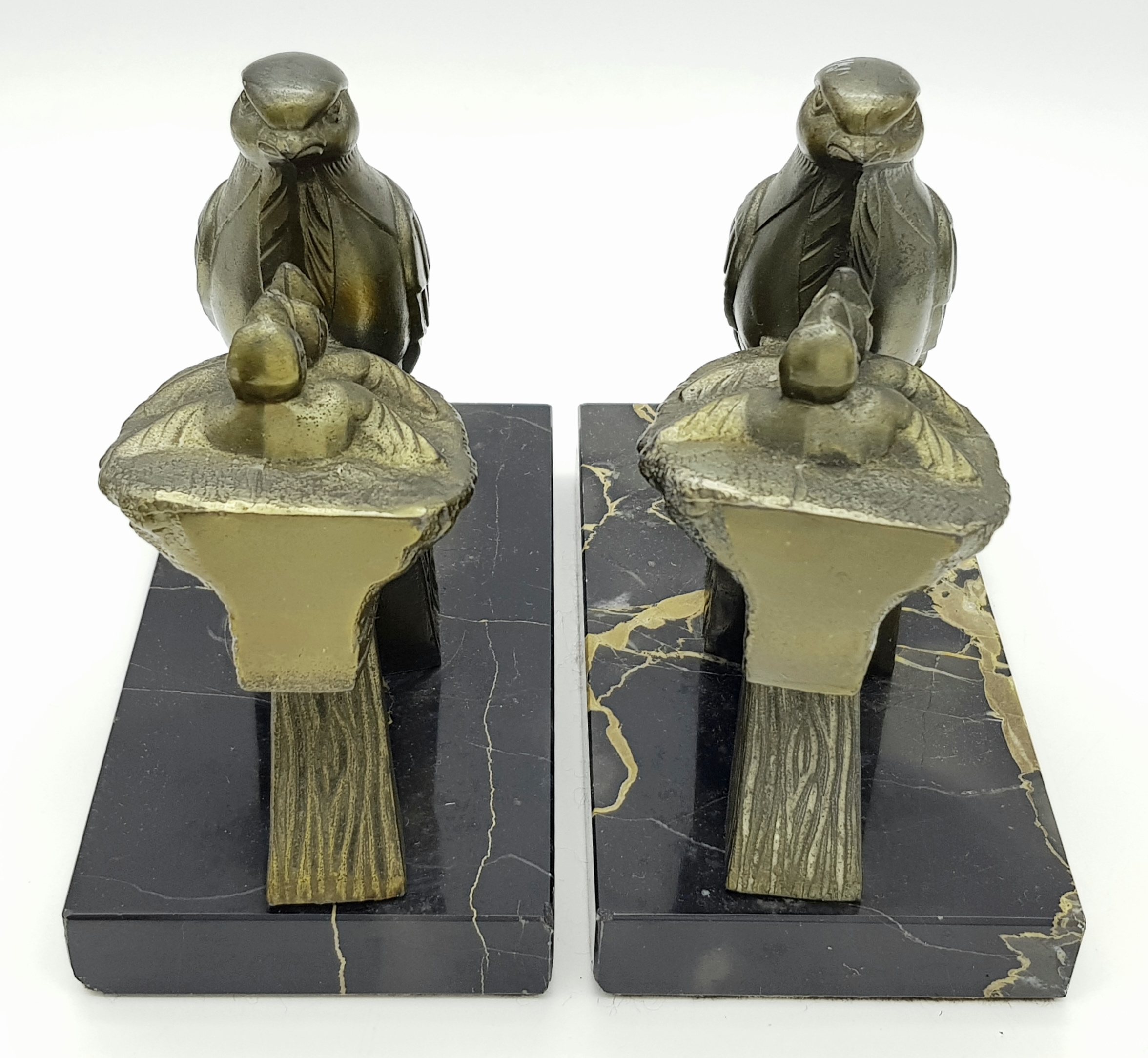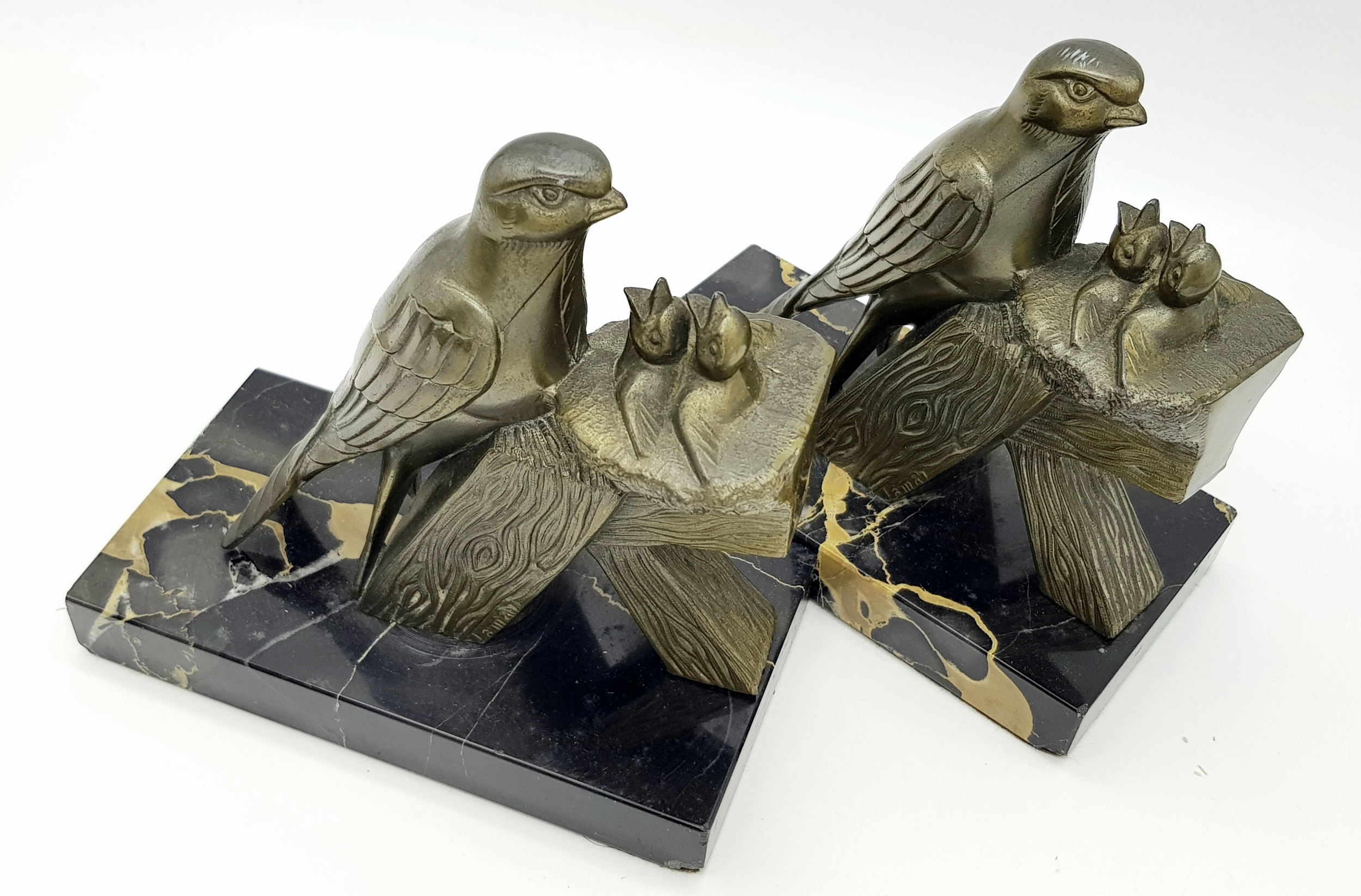 A TRULY SUPERB RARE PAIR OF ART DECO BRONZE BOOKENDS. WONDERFUL QUALITY AND DETAIL FEATURING A MOTHER BIRD FEEDING HER YOUNG IN A NEST. SIGNED JAMAR 1920S/30S. ON AN ITALIAN MARBLE BASE. IN VERY GOOD ANTIQUE CONDITION.