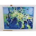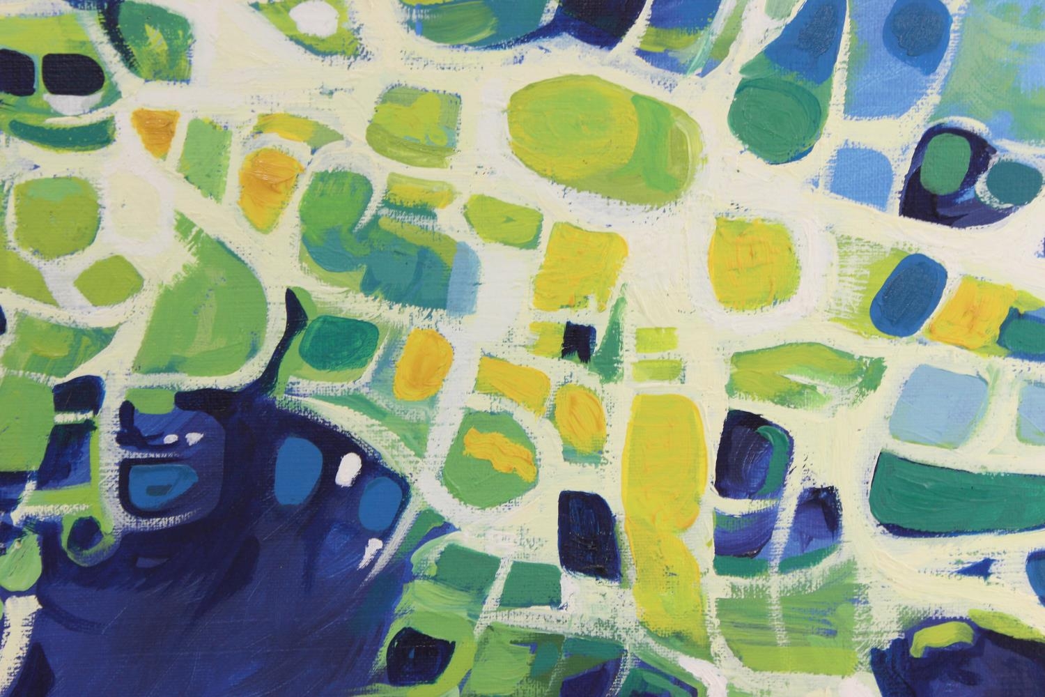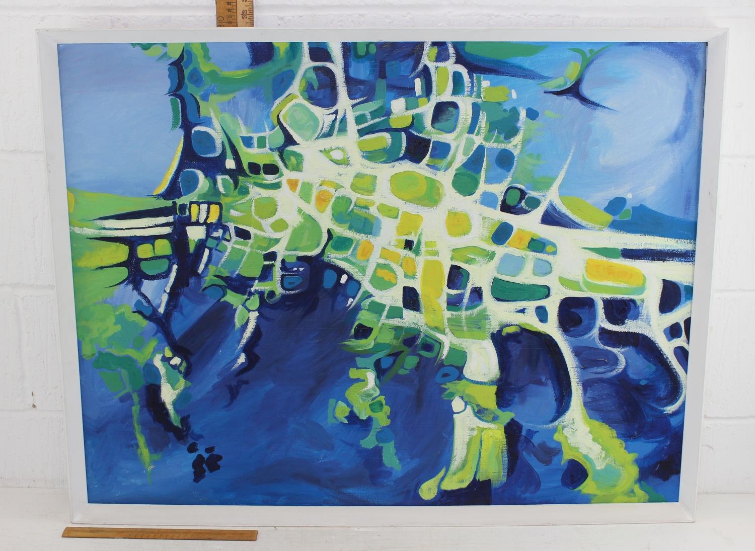 J.M. Saunders (XX), A large oil on board in a blue and green palette. unsigned but almost certainly by J M Saunders