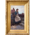 Percy Robert CRAFT (1856-1934) A Cornish Fishwife in Newlyn Oil on canvas, signed, 59 x 34cm, 84 x 58cm framed.