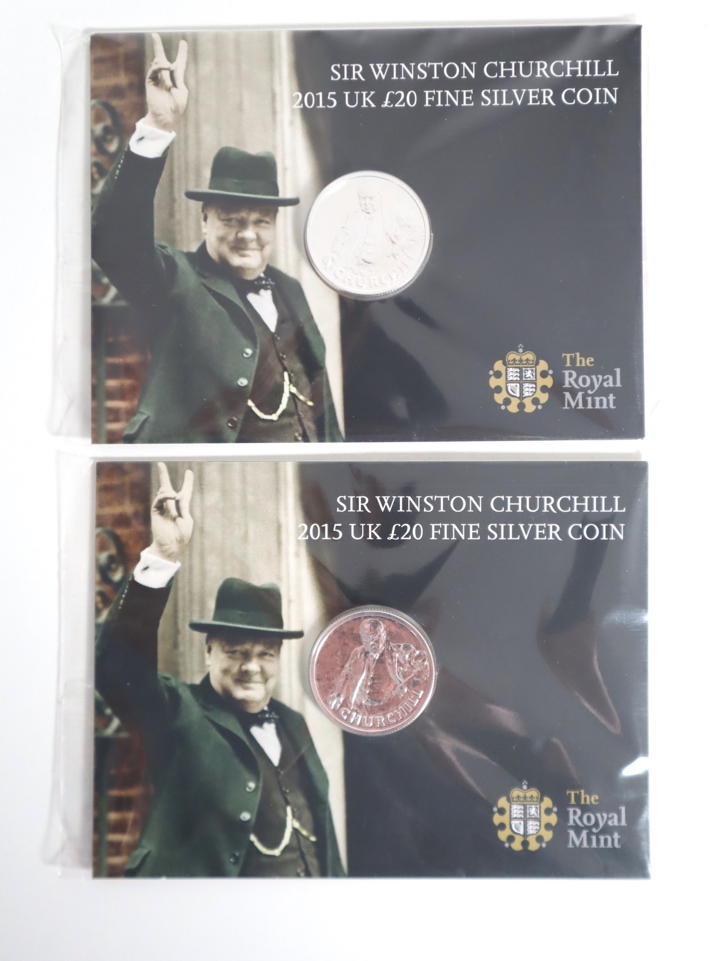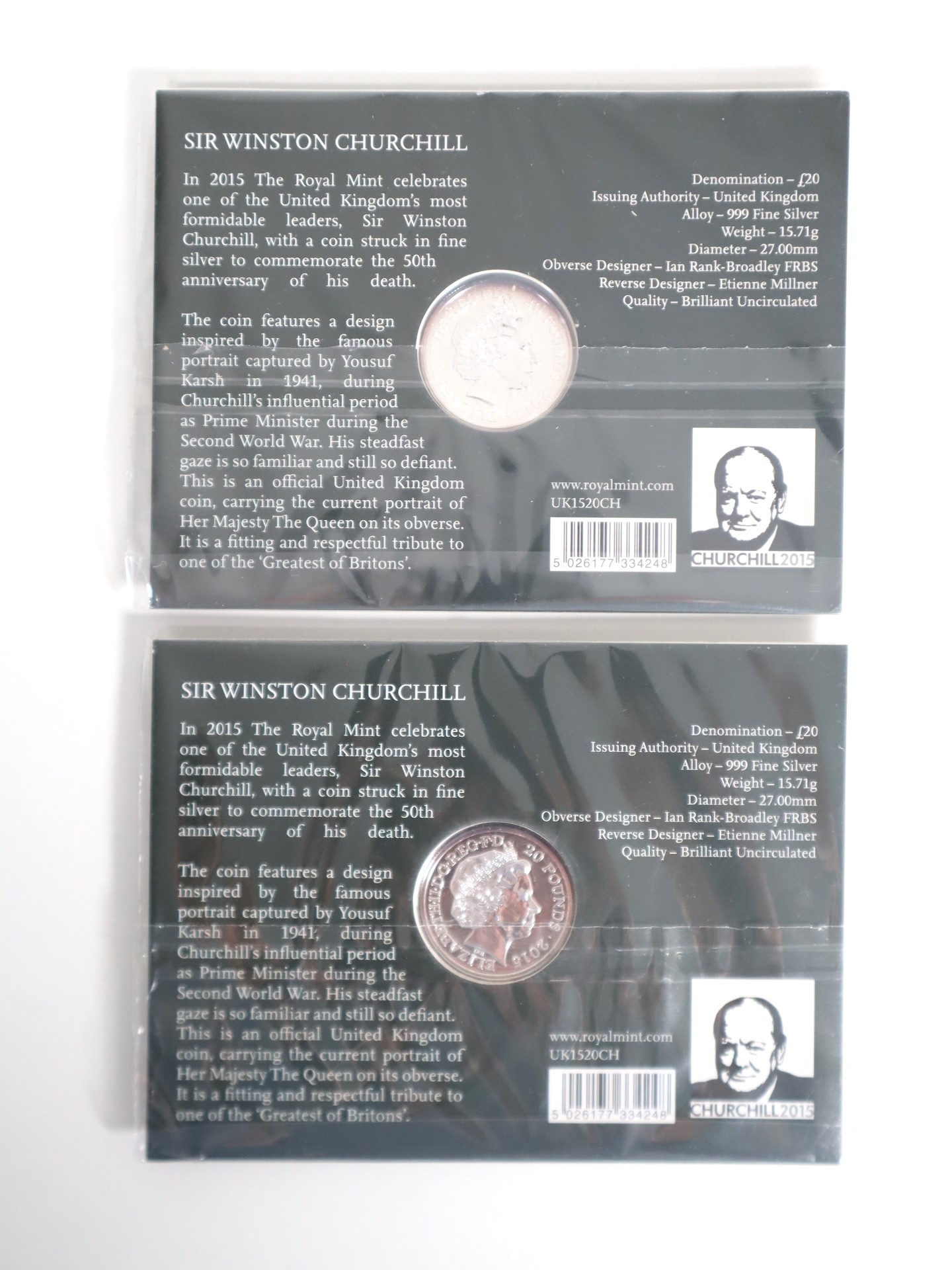 Two Sir Winston Churchill 2015 UK £20 Fine Silver Brilliant Uncirculated Coins 999Ag 15.71g each