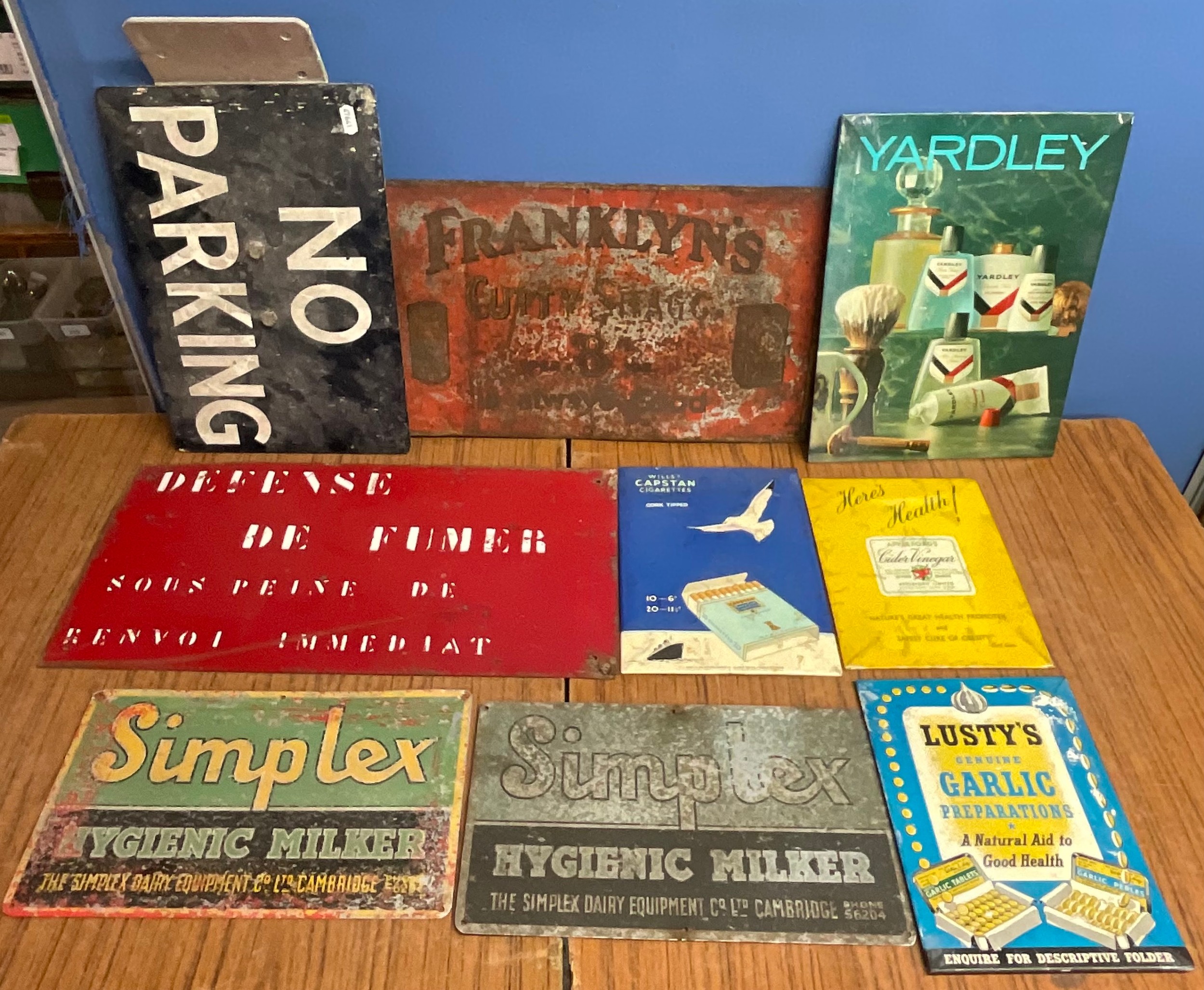 Two vintage painted alloy Simplex signs and other advertising signage (9)