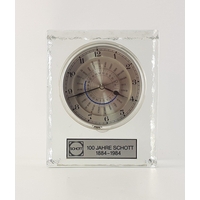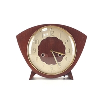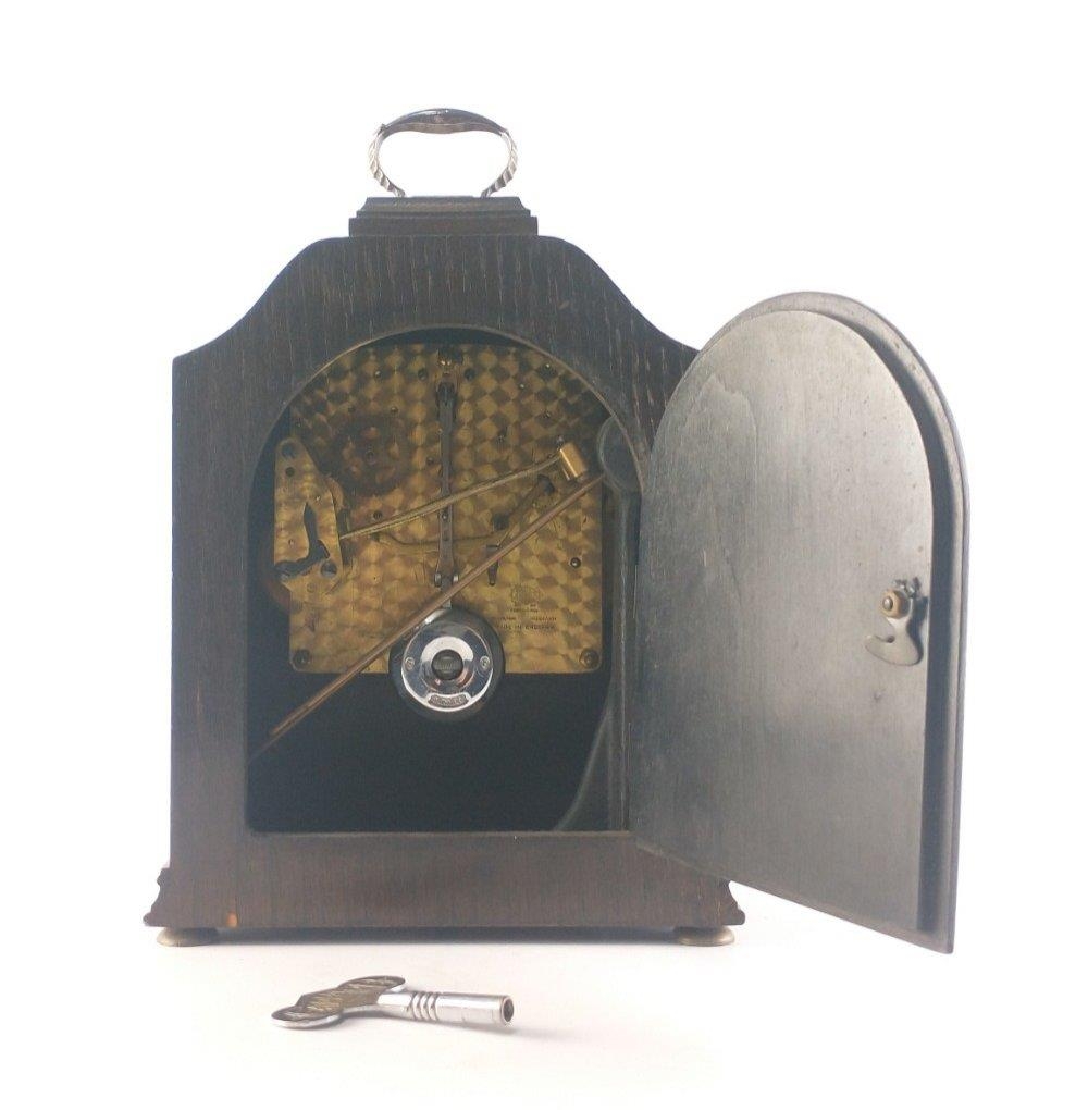 A GARRARD oak case mantle clock with chime control lever. With pendulum, and original GARRARD branded key. Untested. Standing 27cm tall.