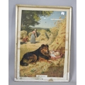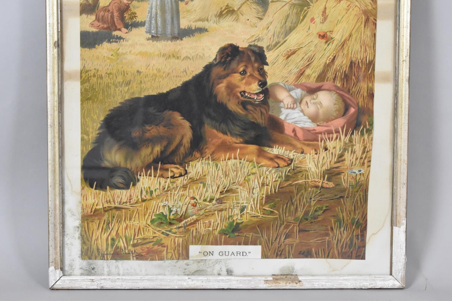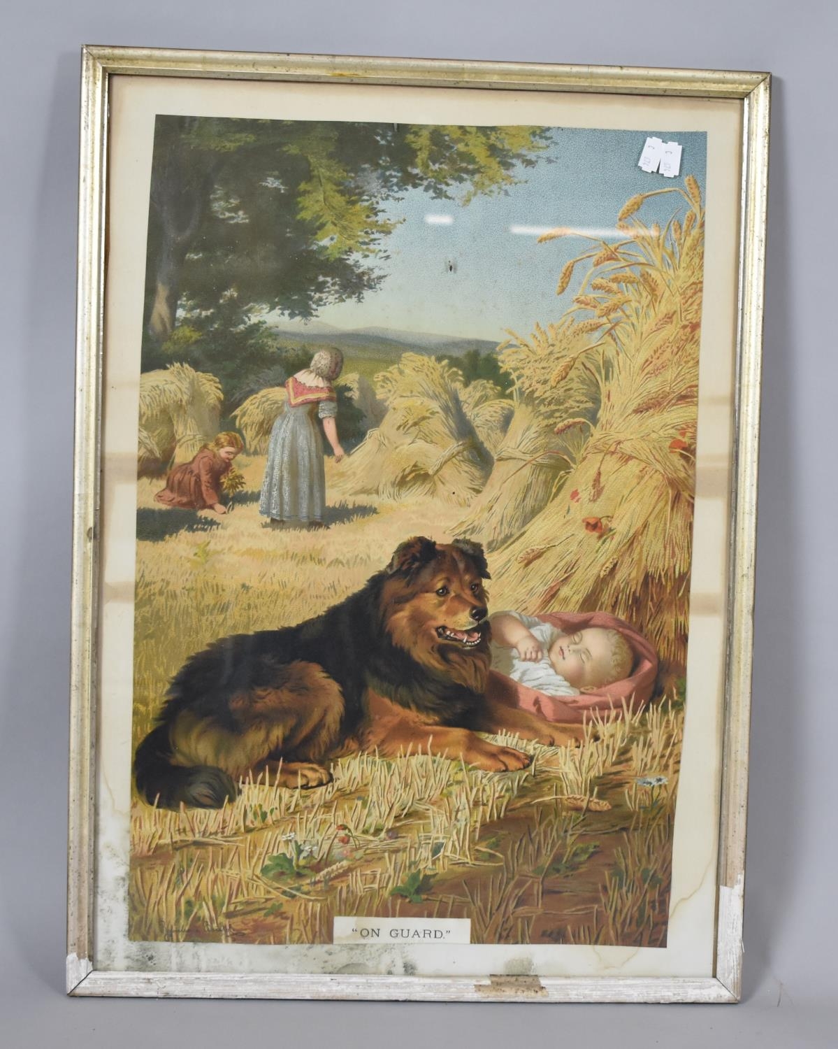 A Victorian Robinsons of Bristol Lithograph, Titled "On Guard", Depicting Harvest Scene with Dog Protecting Sleeping Infant, 48cms Wide