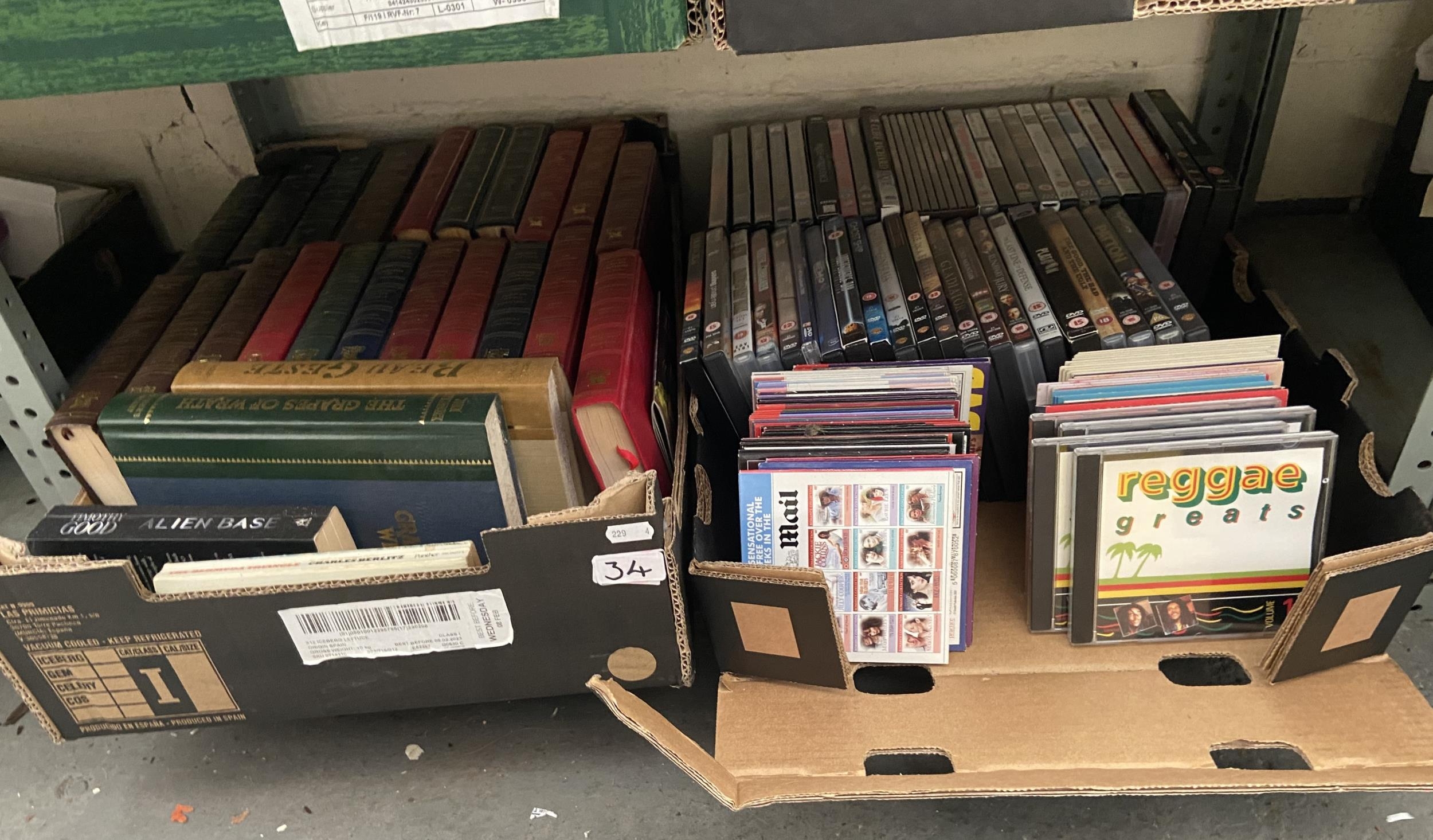 2 Boxes containing CDs and Readers Digest