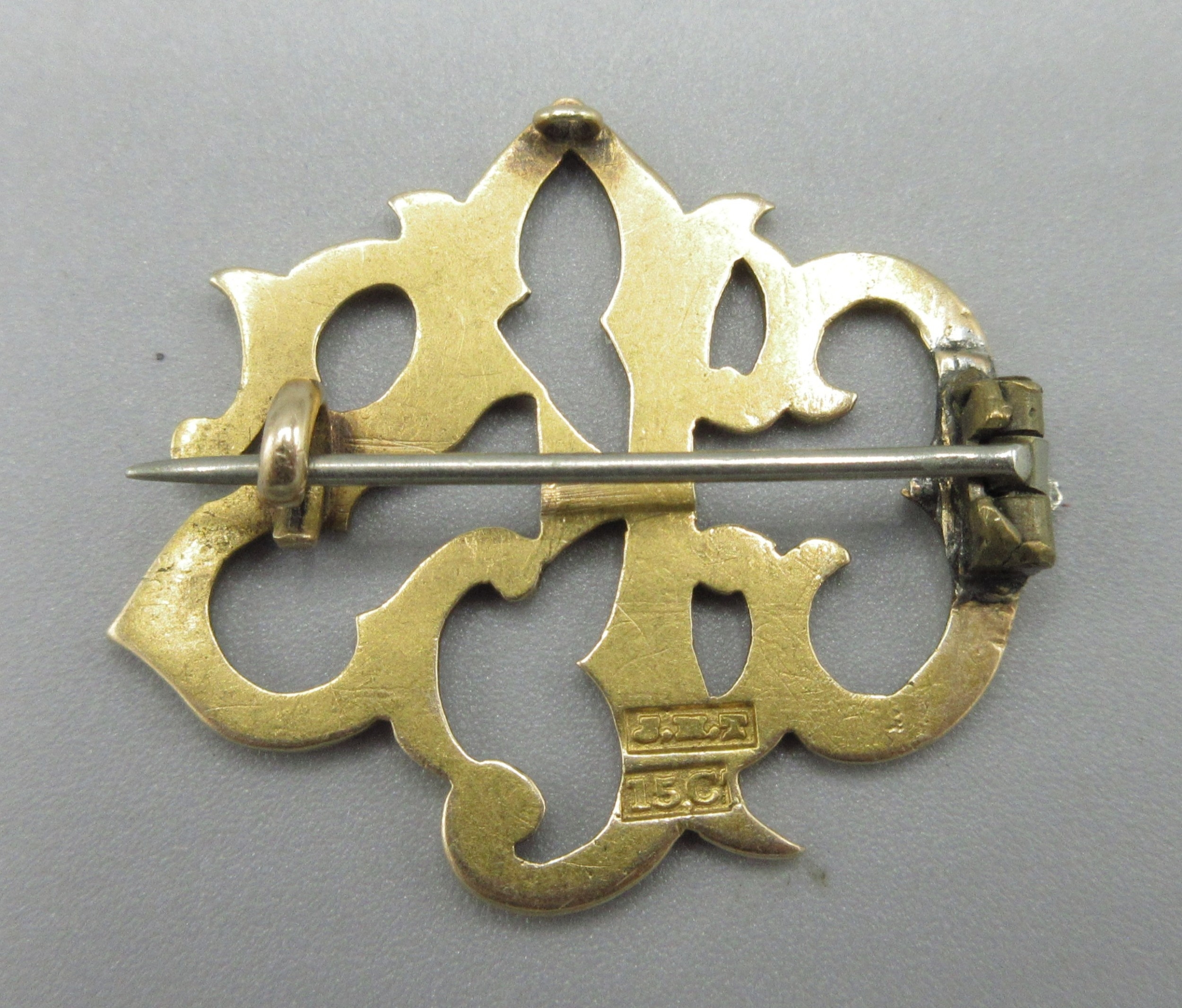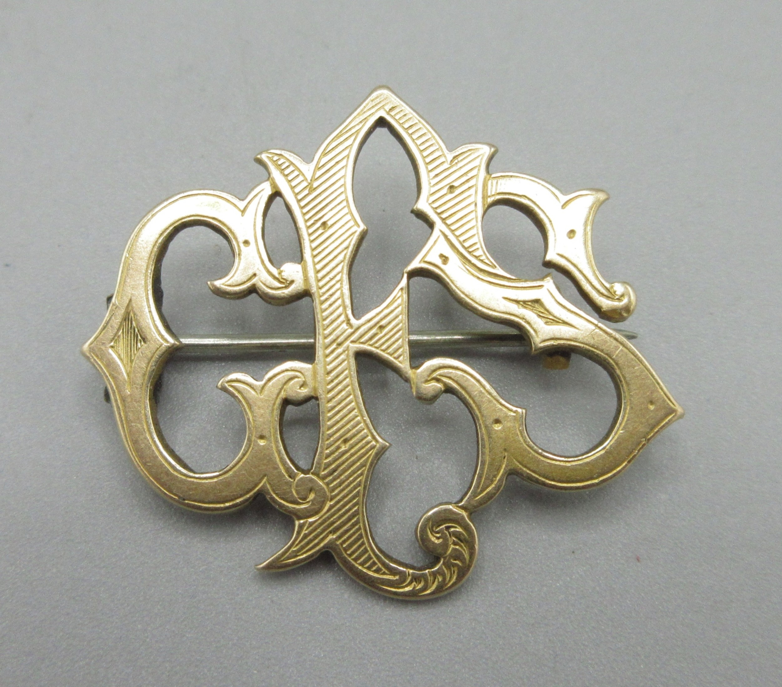 Victorian style 15ct yellow gold monogram brooch, stamped 15ct, W3.5cm, 5.5g