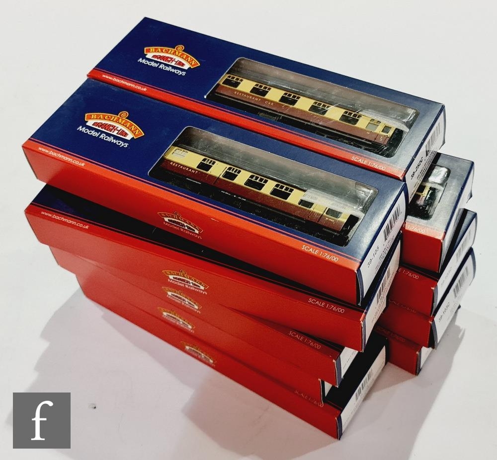 A collection of OO gauge Bachmann coaches, all BR in maroon or crimson and cream, to include 39-152C Mk1 First Corridor Coach, Mk1 Restaurant Car etc., Some duplicates, all boxed. (10)