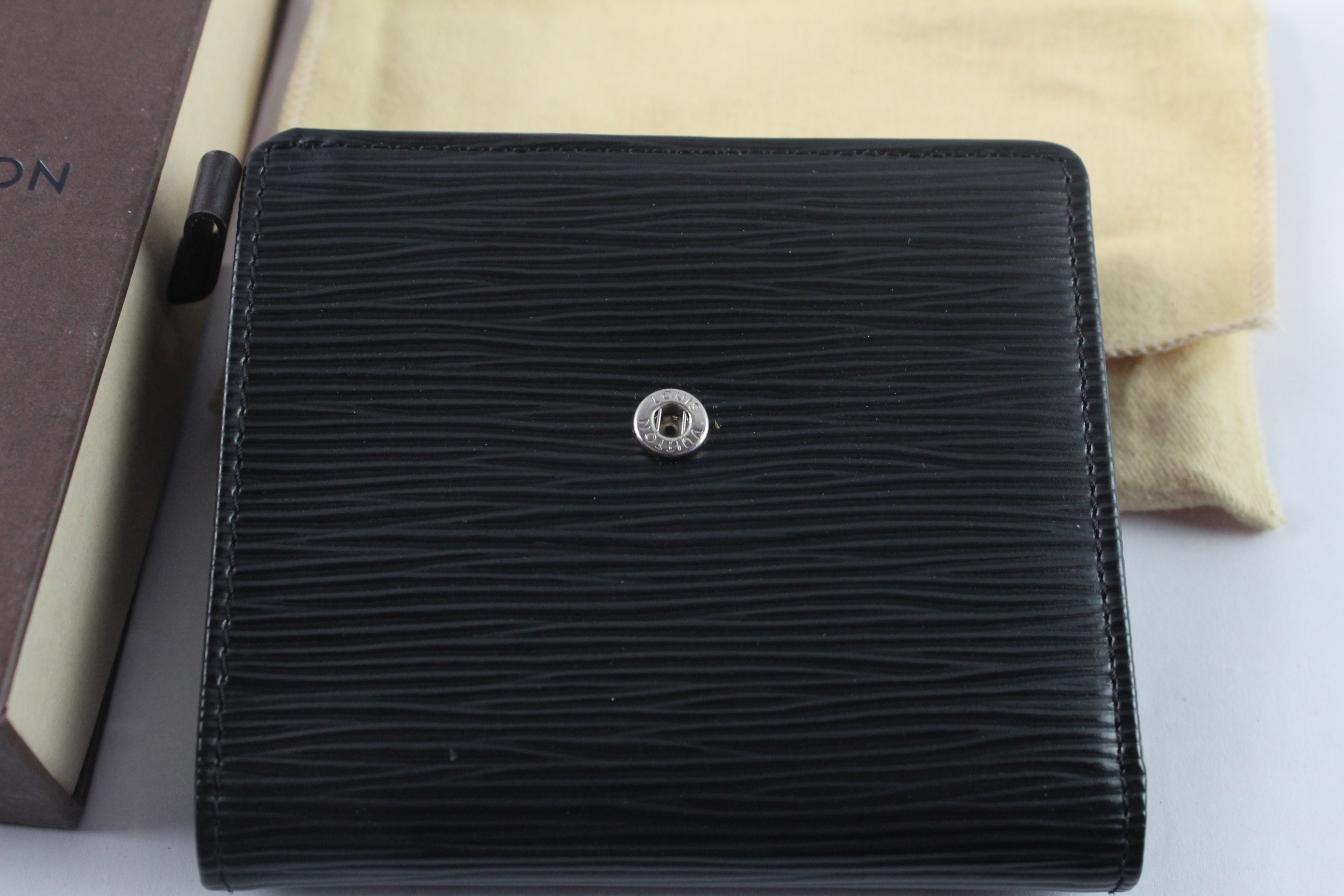 Louis Vuitton Epi Leather Bi-fold Black Wallet W/ Original Box & Dust Cover