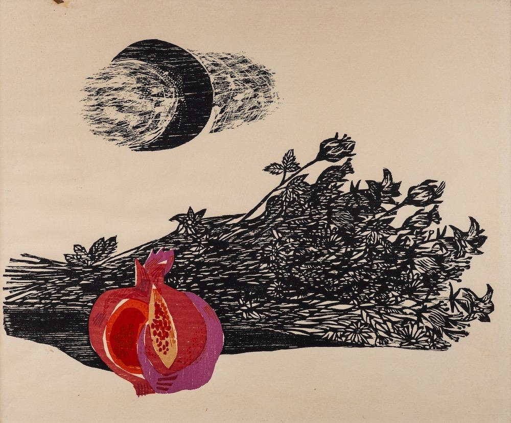 Antonio Frasconi (Uruguayan, 1919-2013) Still Life with Pomegranate Woodcut Print 44 x 35 cm Unsigned
