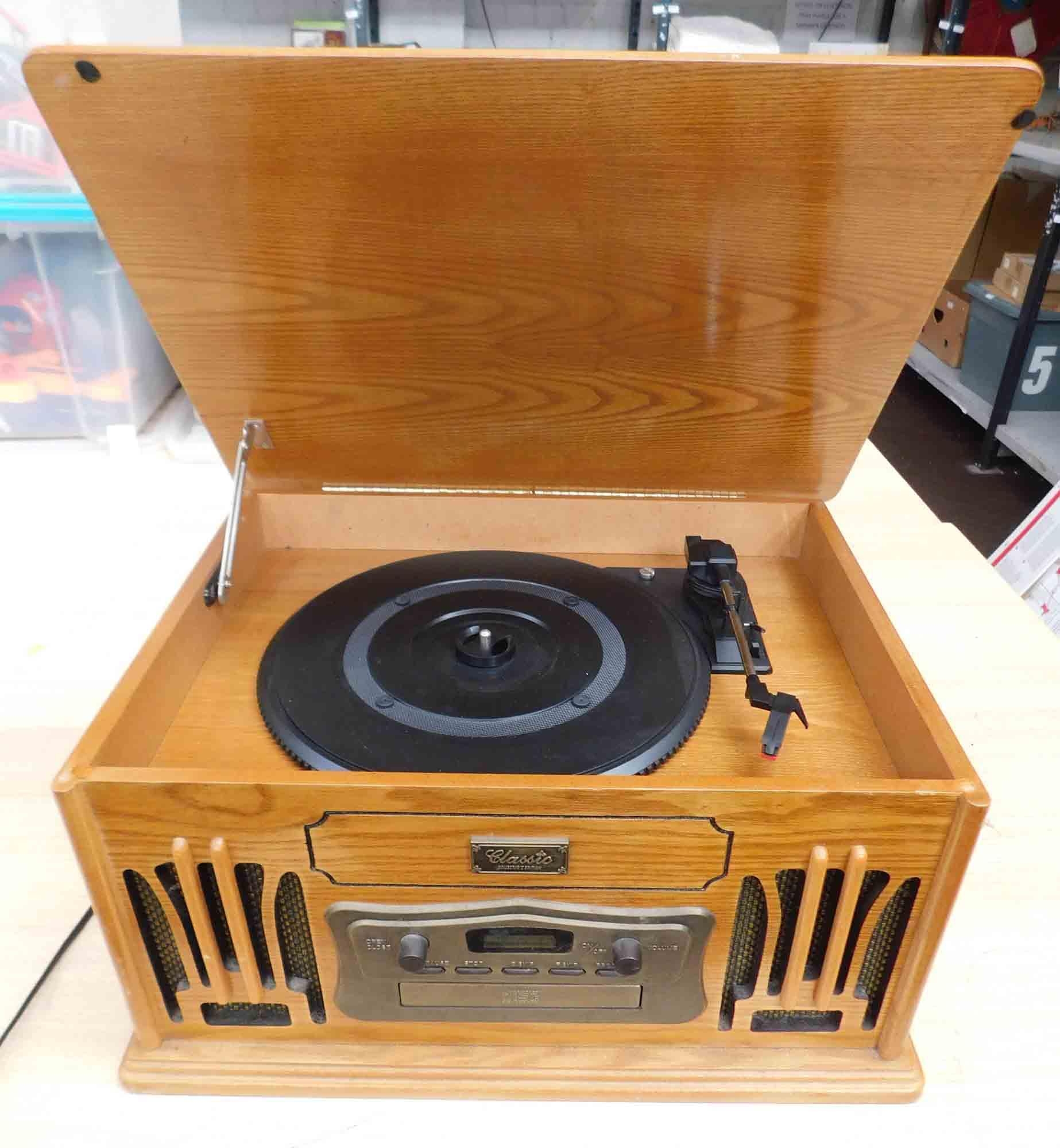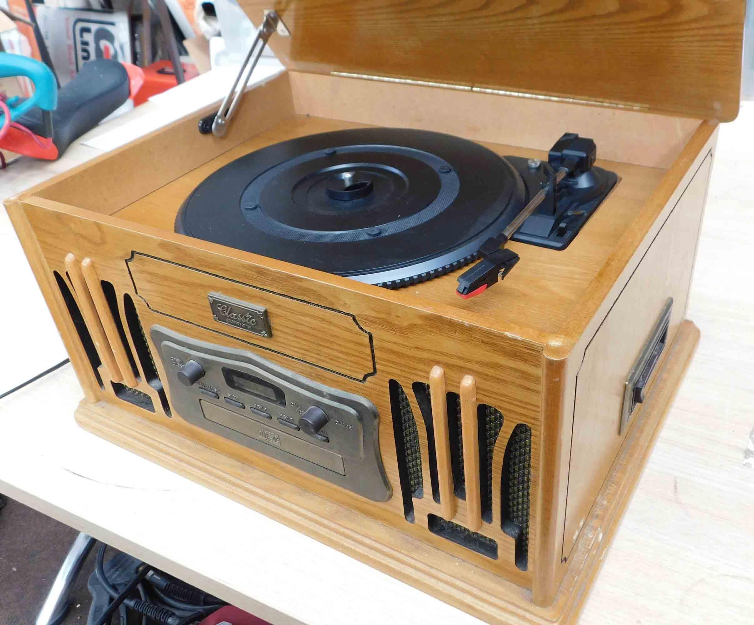Classic cased record player with radio and cassette in w/o