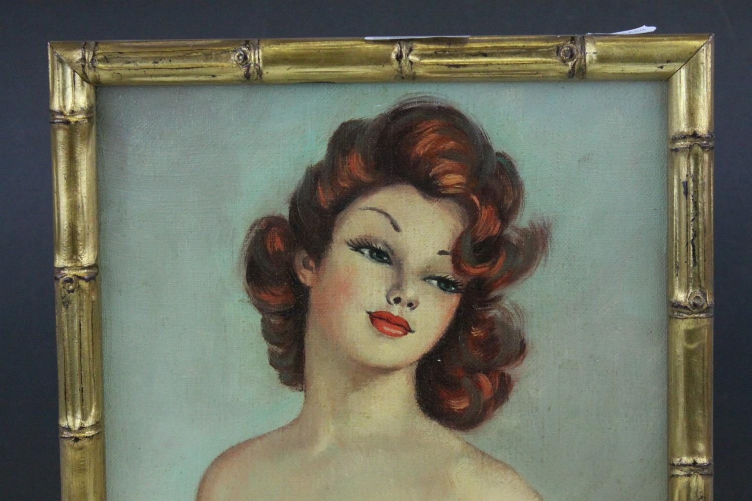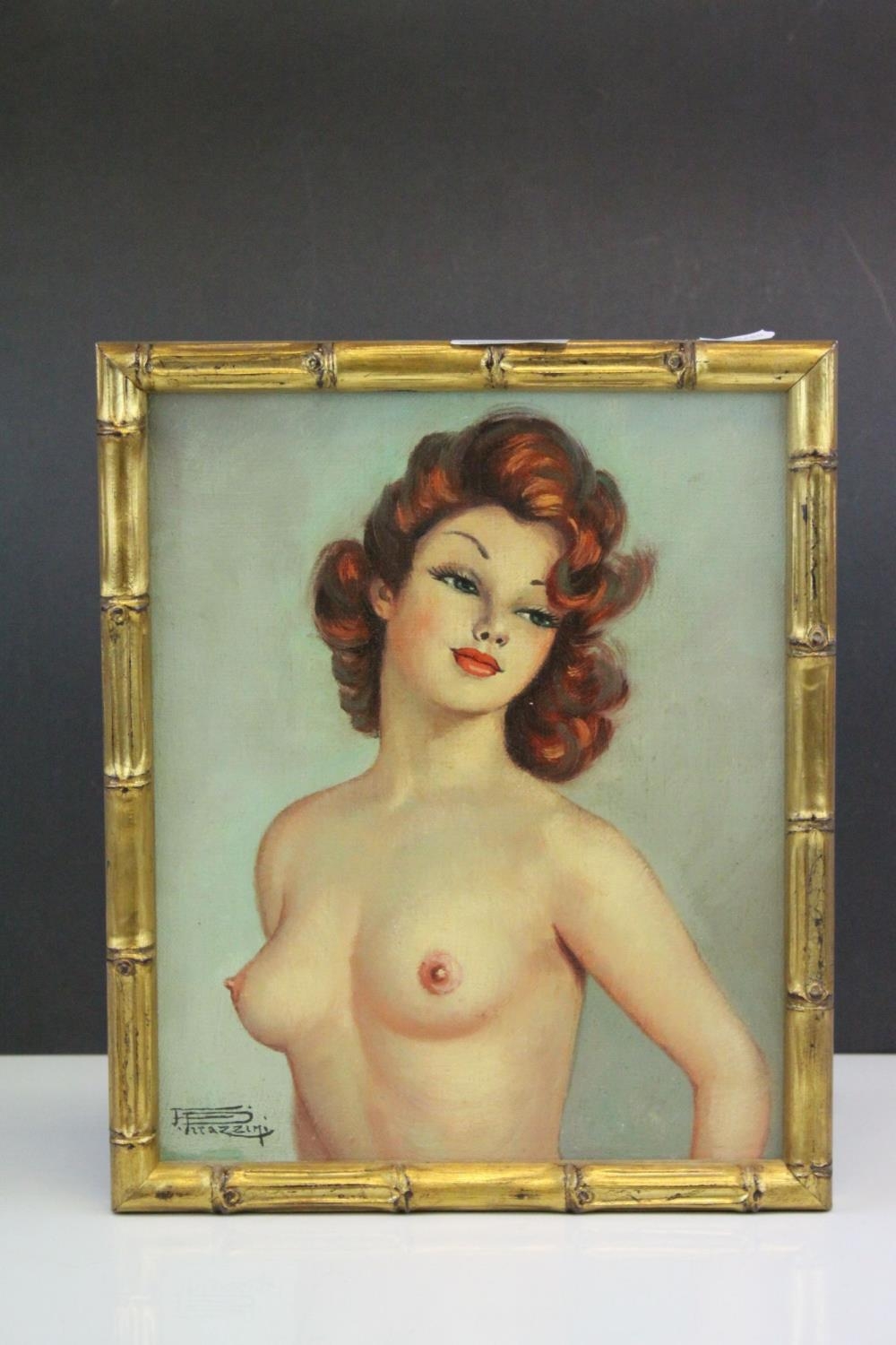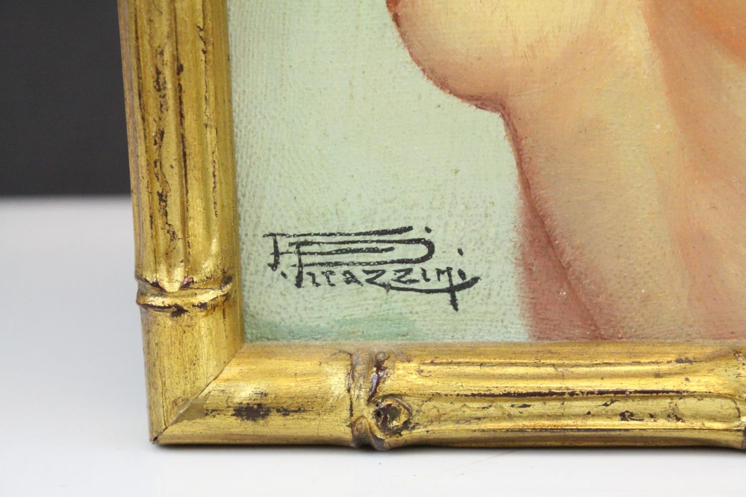 Continental Oil Painting of a Half Length Nude signed lower left F Pirazzini, 26cms x 20cms, gilt framed