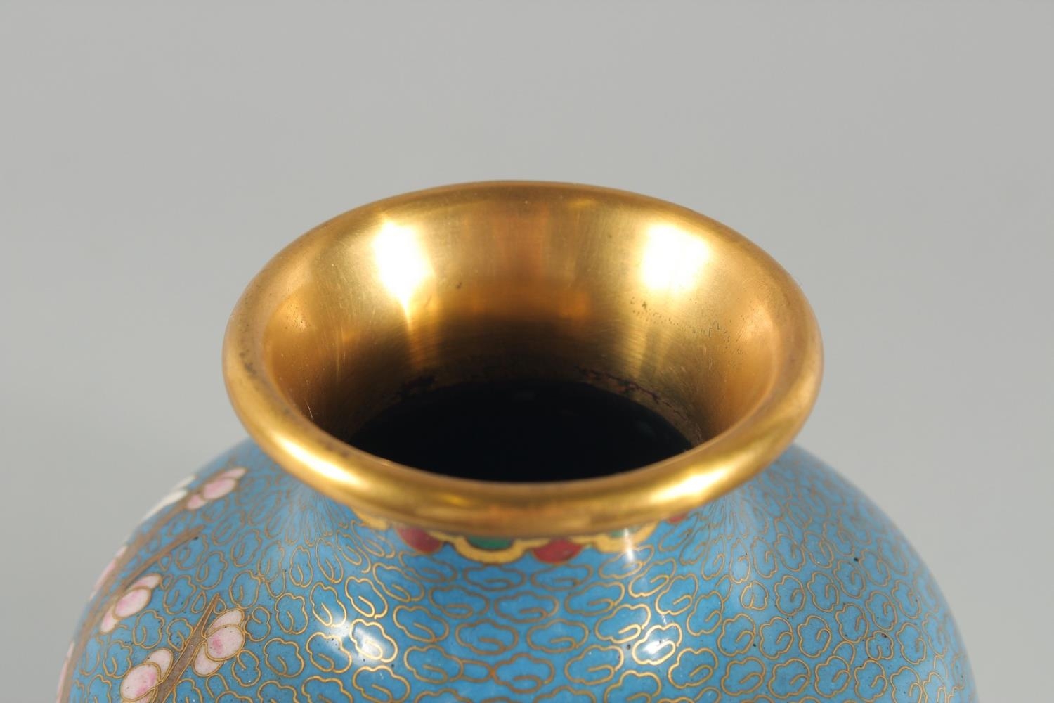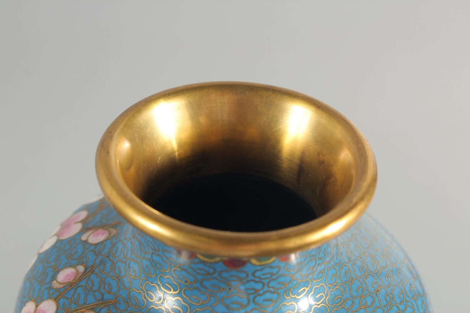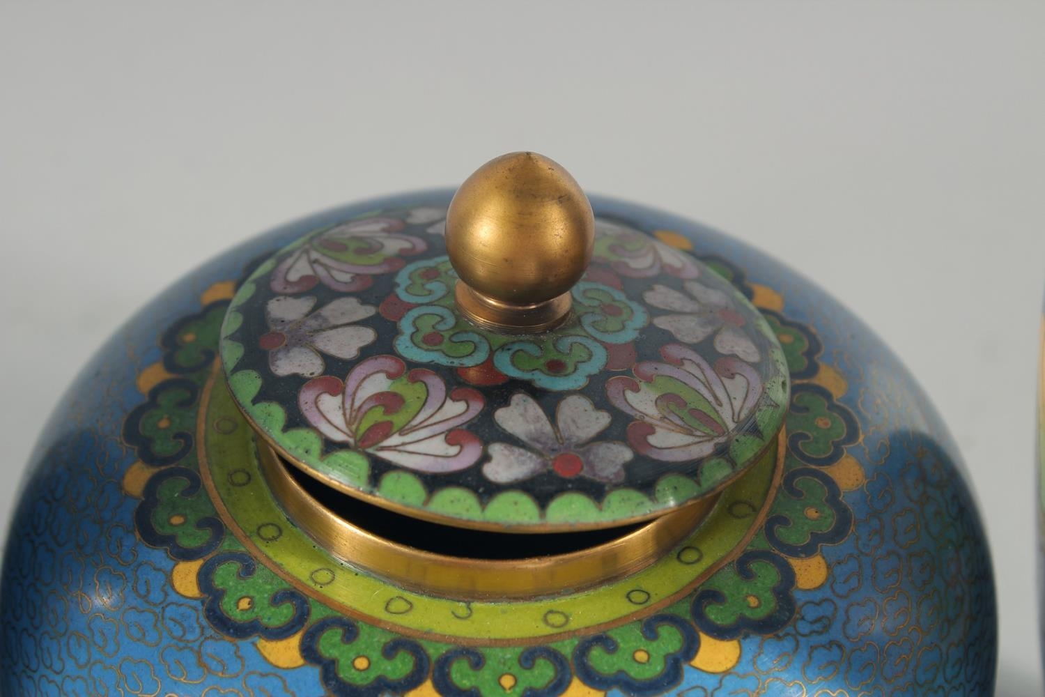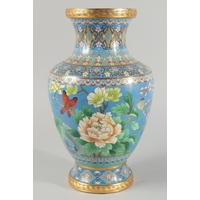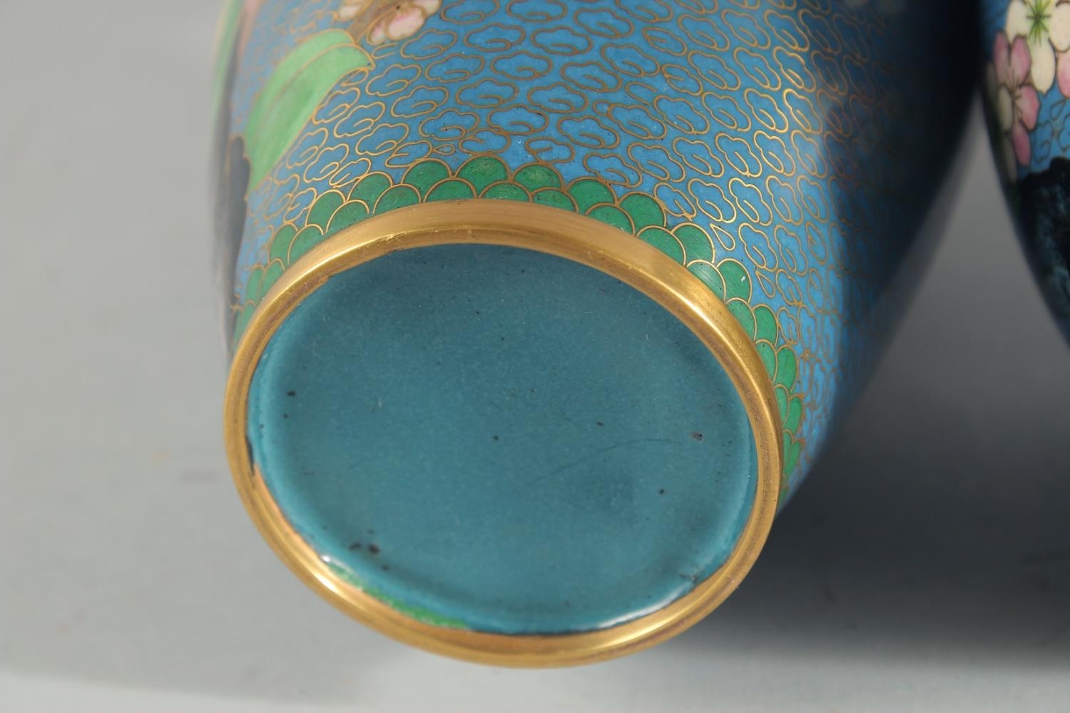 TWO CHINESE BLUE GROUND CLOISONNE VASES, and a similar jar with associated cover, vases 23.5cm high, (3).