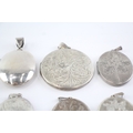 Collection of Sterling Silver Locket Pendants, inc. Etched, Floral, Oval x 6 (91g)