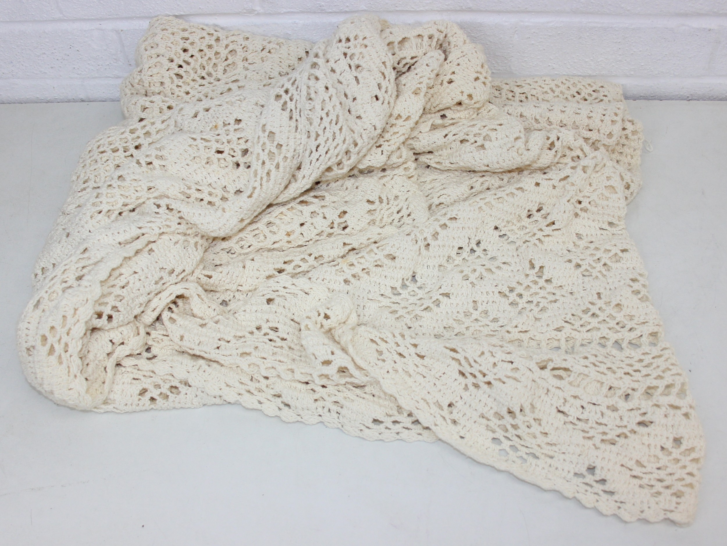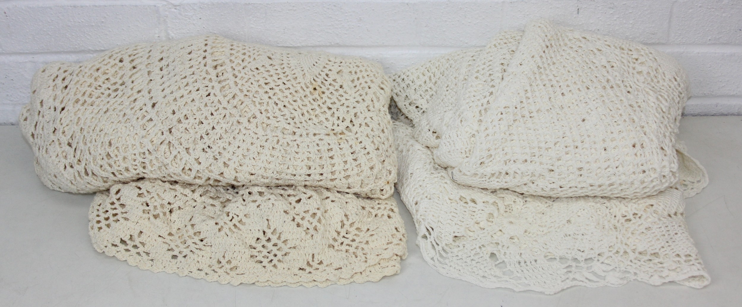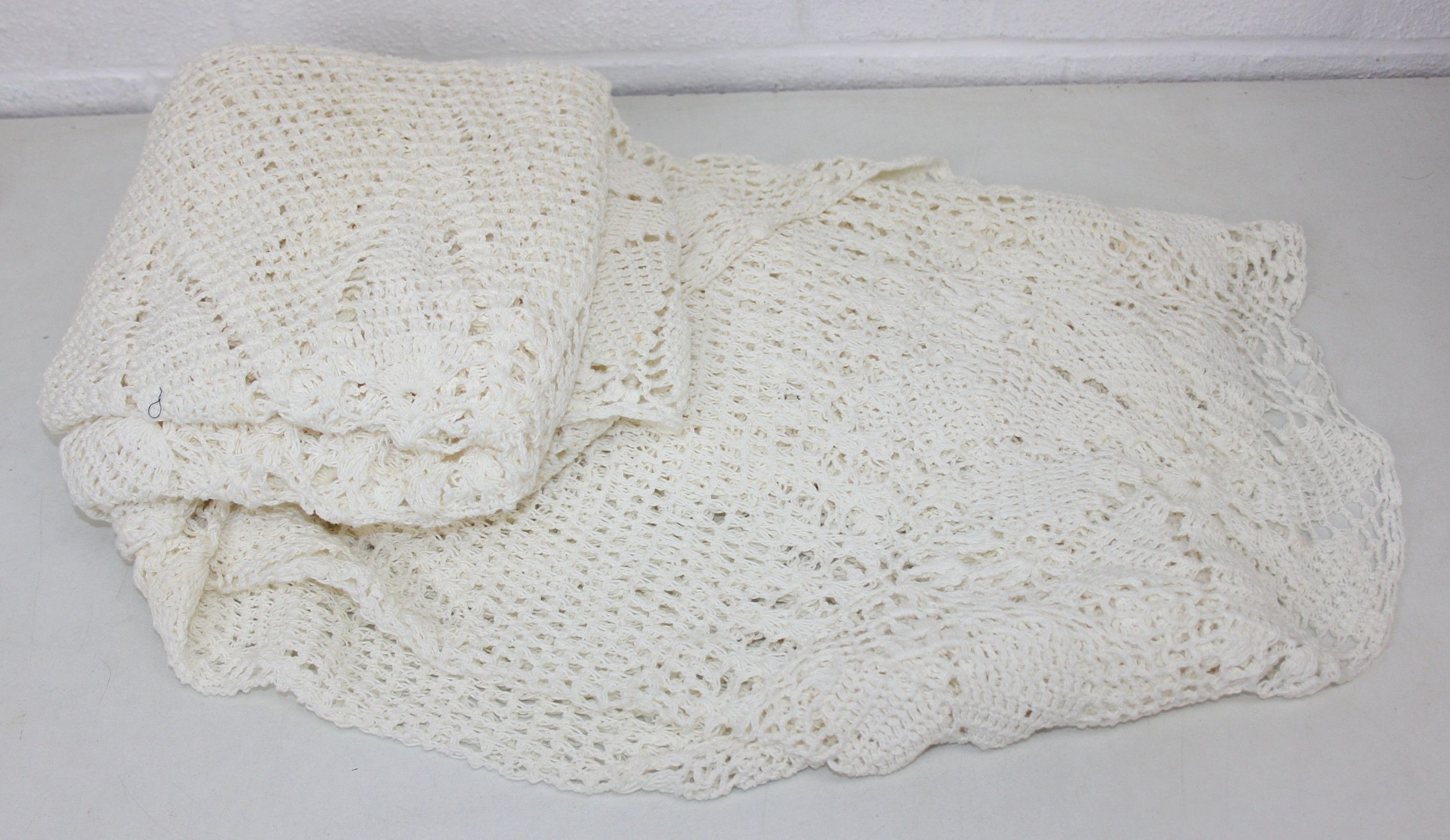 Two vintage crocheted oval tablecloths, likely hand made in Africa, 240cm x 140cm [2]