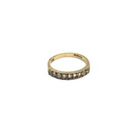 9ct gold ring with black sapphires and CZ. O and 1.7g.