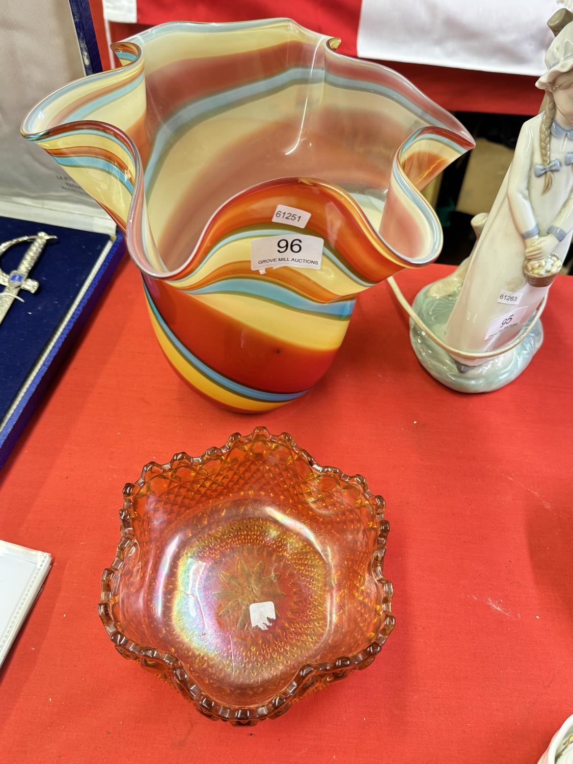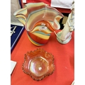 STUDIO COLOURED GLASS VASE & A CARNIVAL DISH