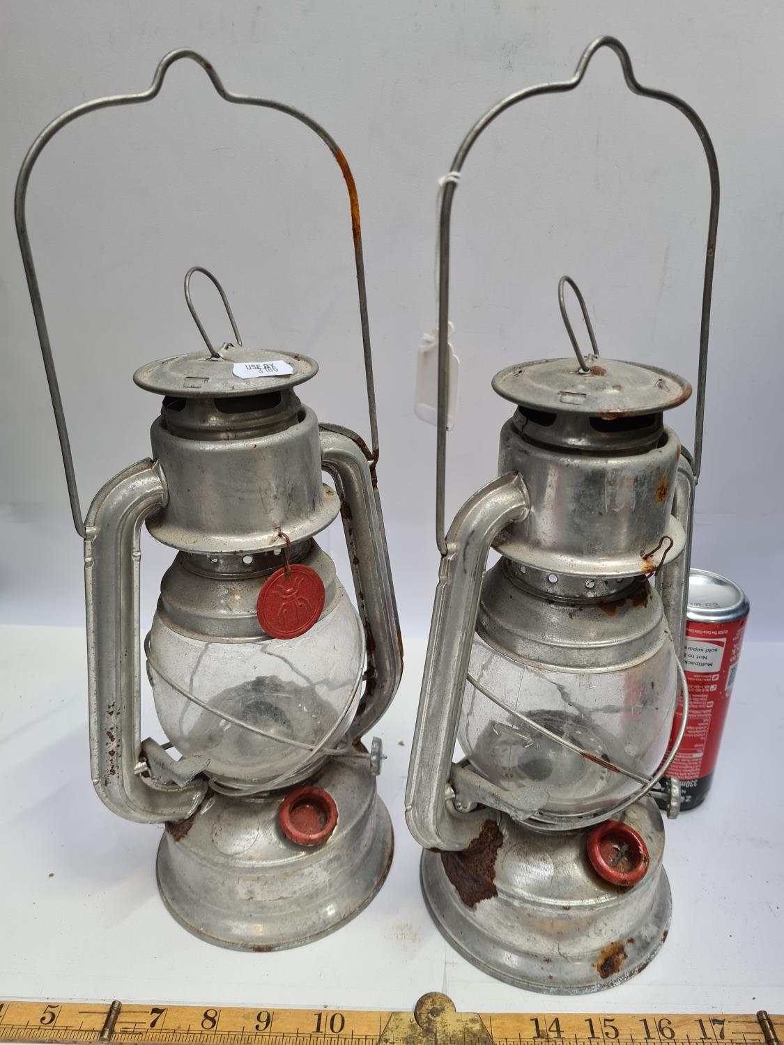 A pair of Vintage Guillouard Tubular Barn Lanterns