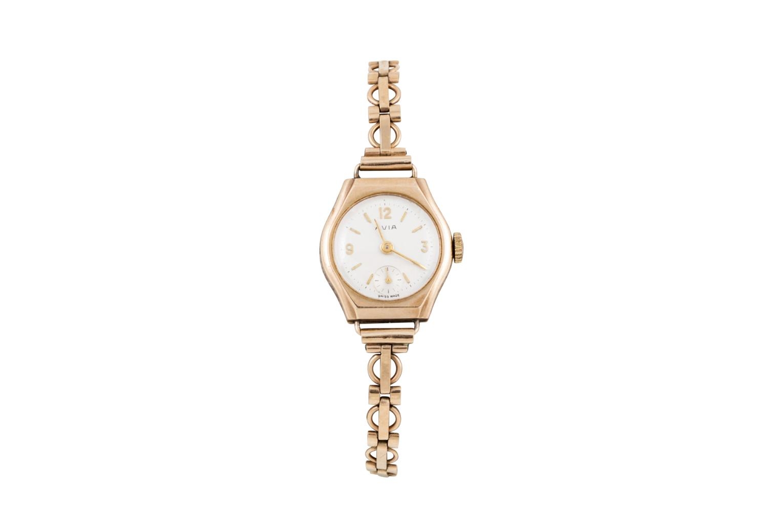 AN AVIVA 9CT GOLD LADIES WATCH with 9ct gold bracelet strap, separate minute dial, gross weight 16.2 g