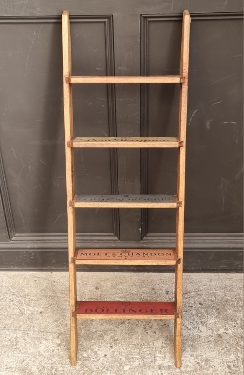 Advertising: a waxed pine five step vineyard style ladder, 132.5cm high.