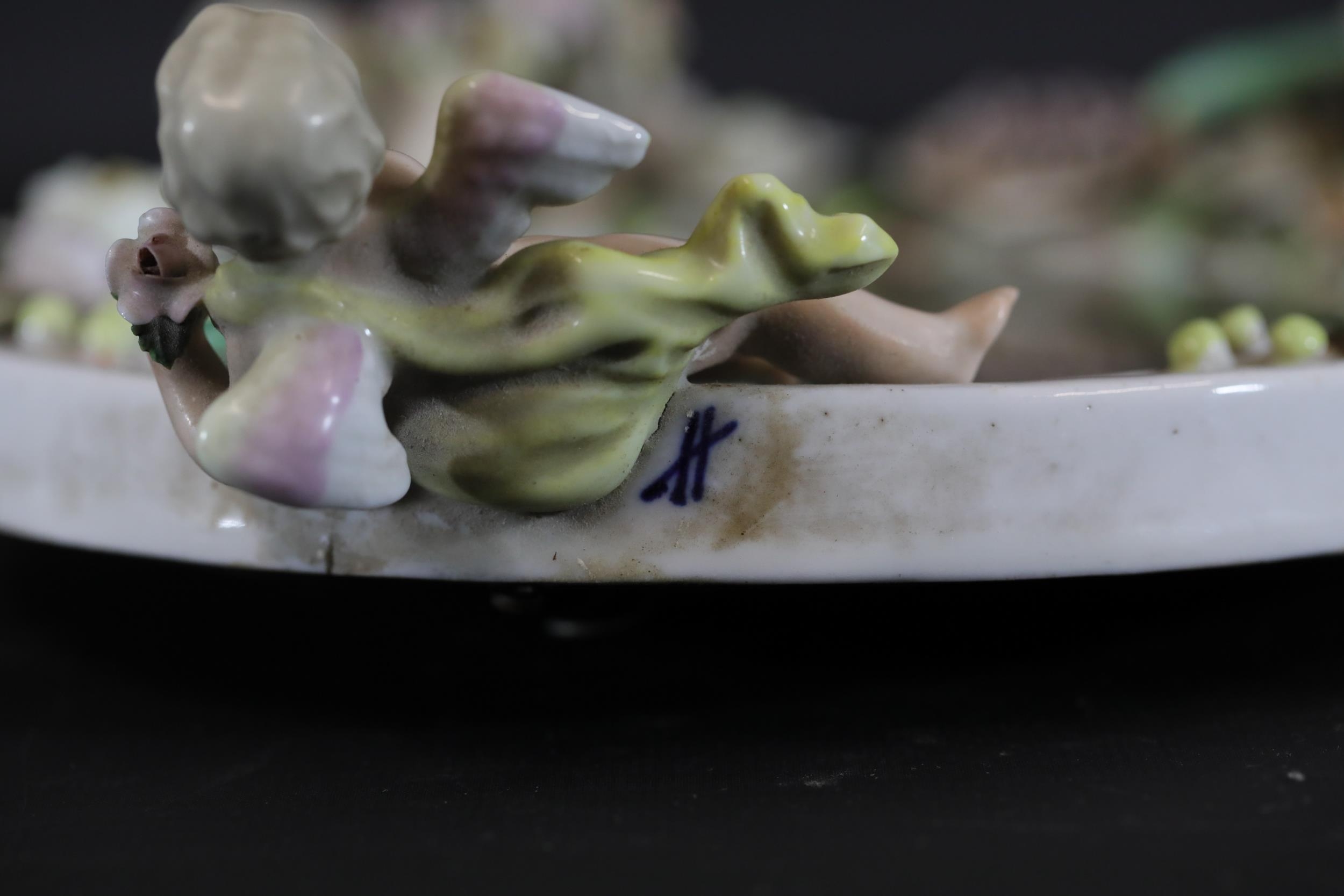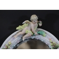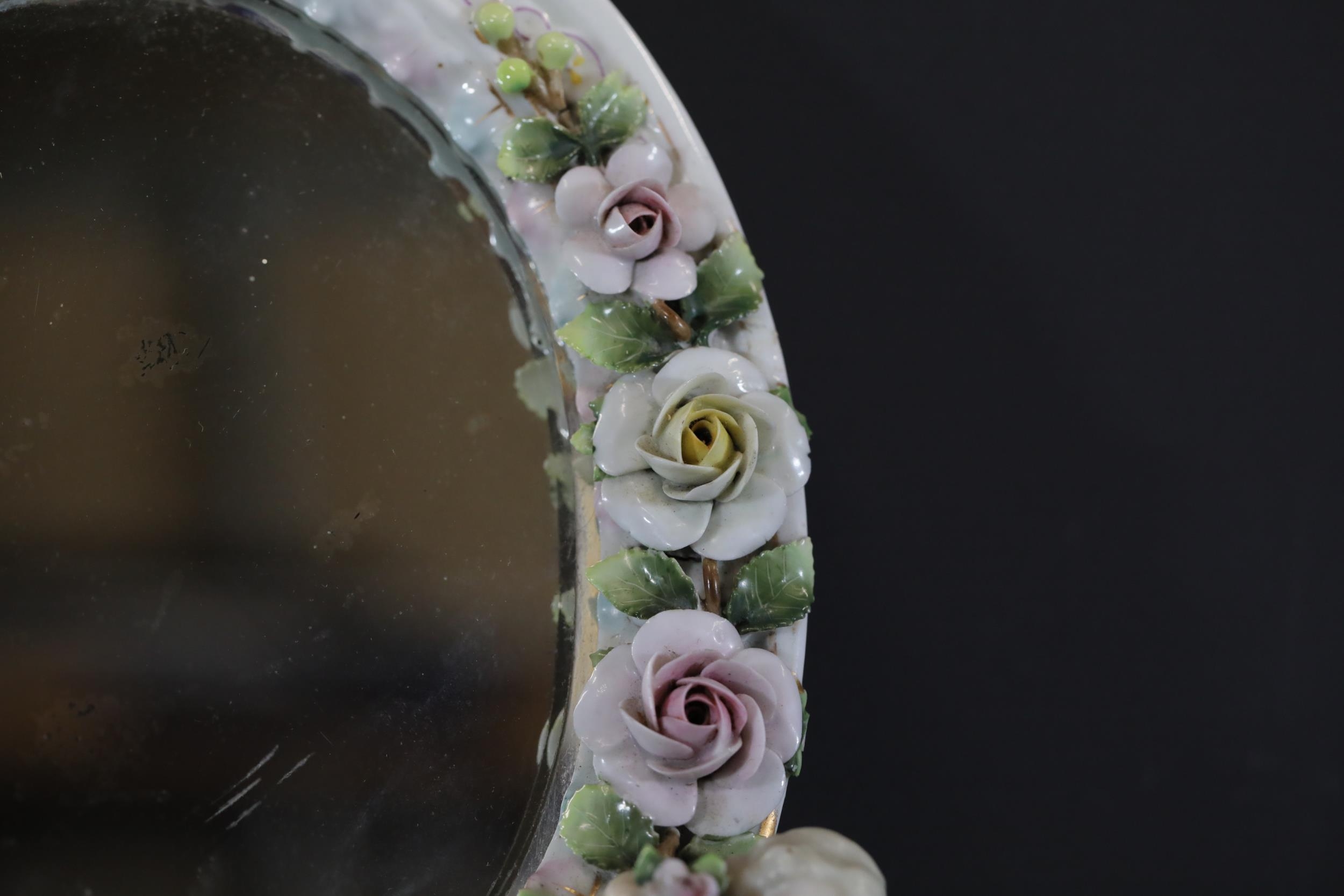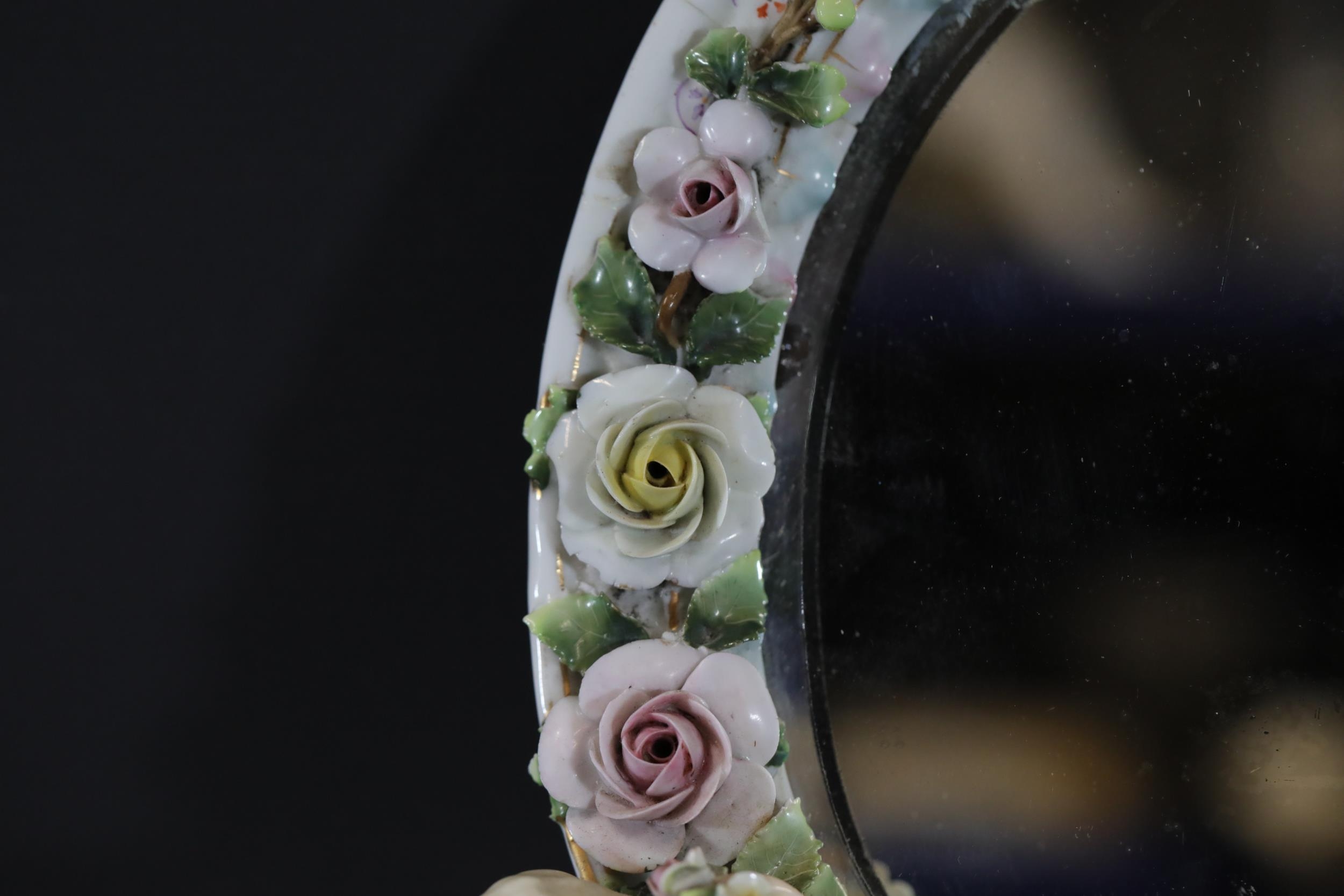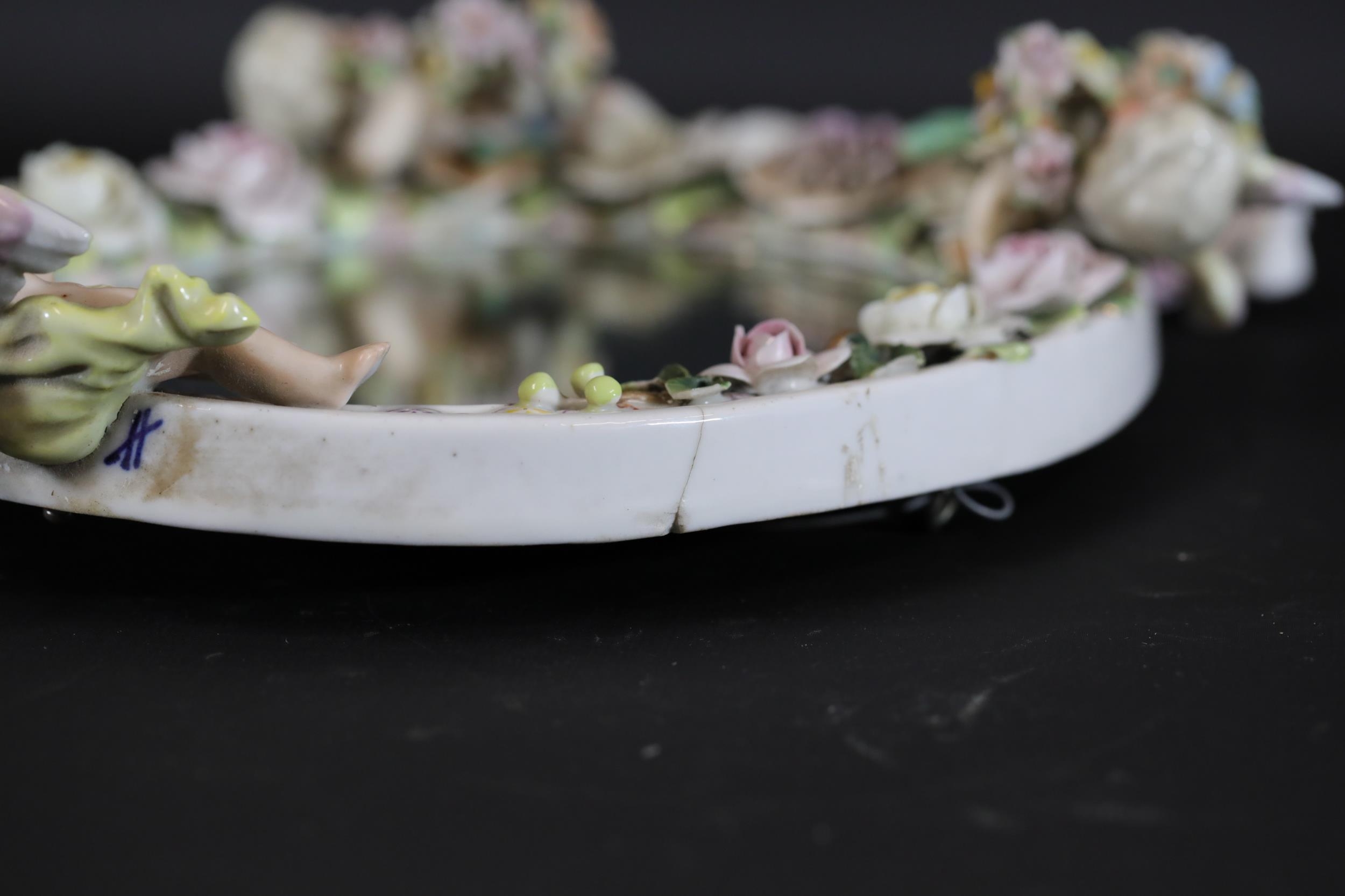 German Porcelain Cherub Floral Vanity Mirror - Dresden / Meissen Crossed Sword Mark